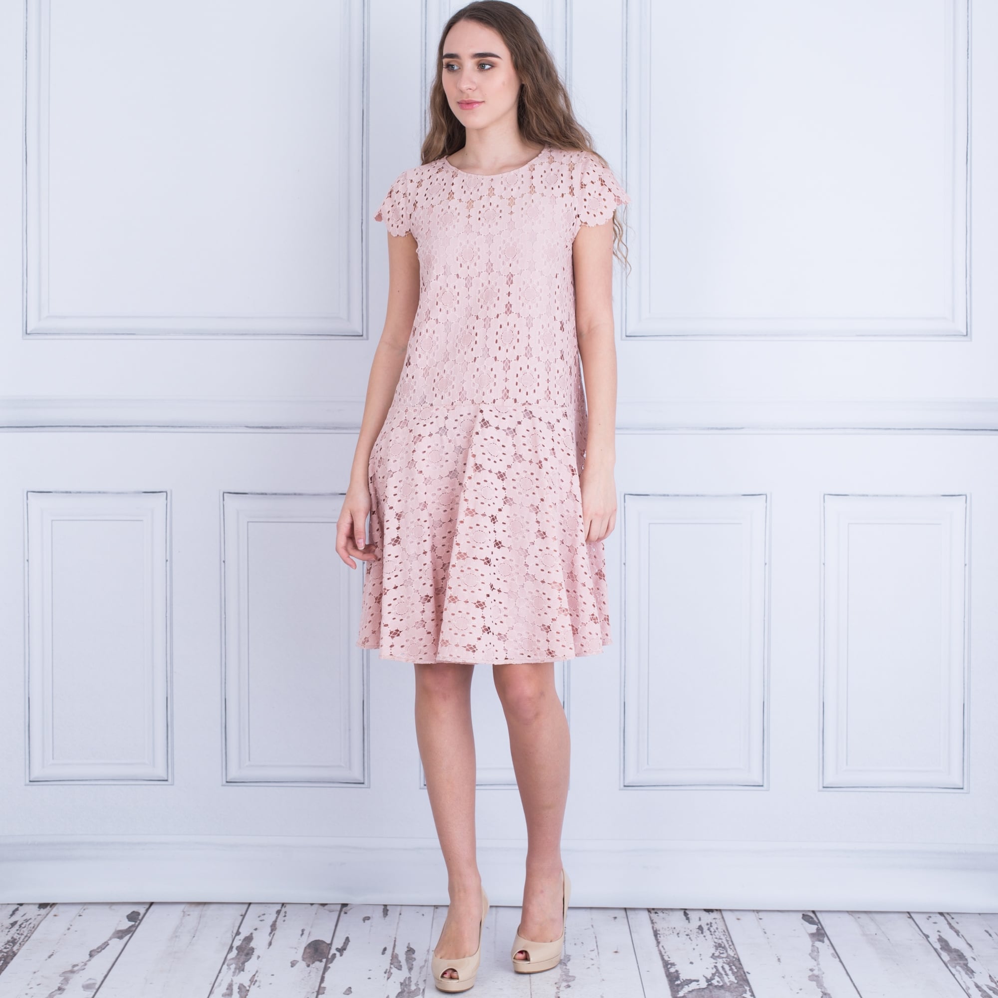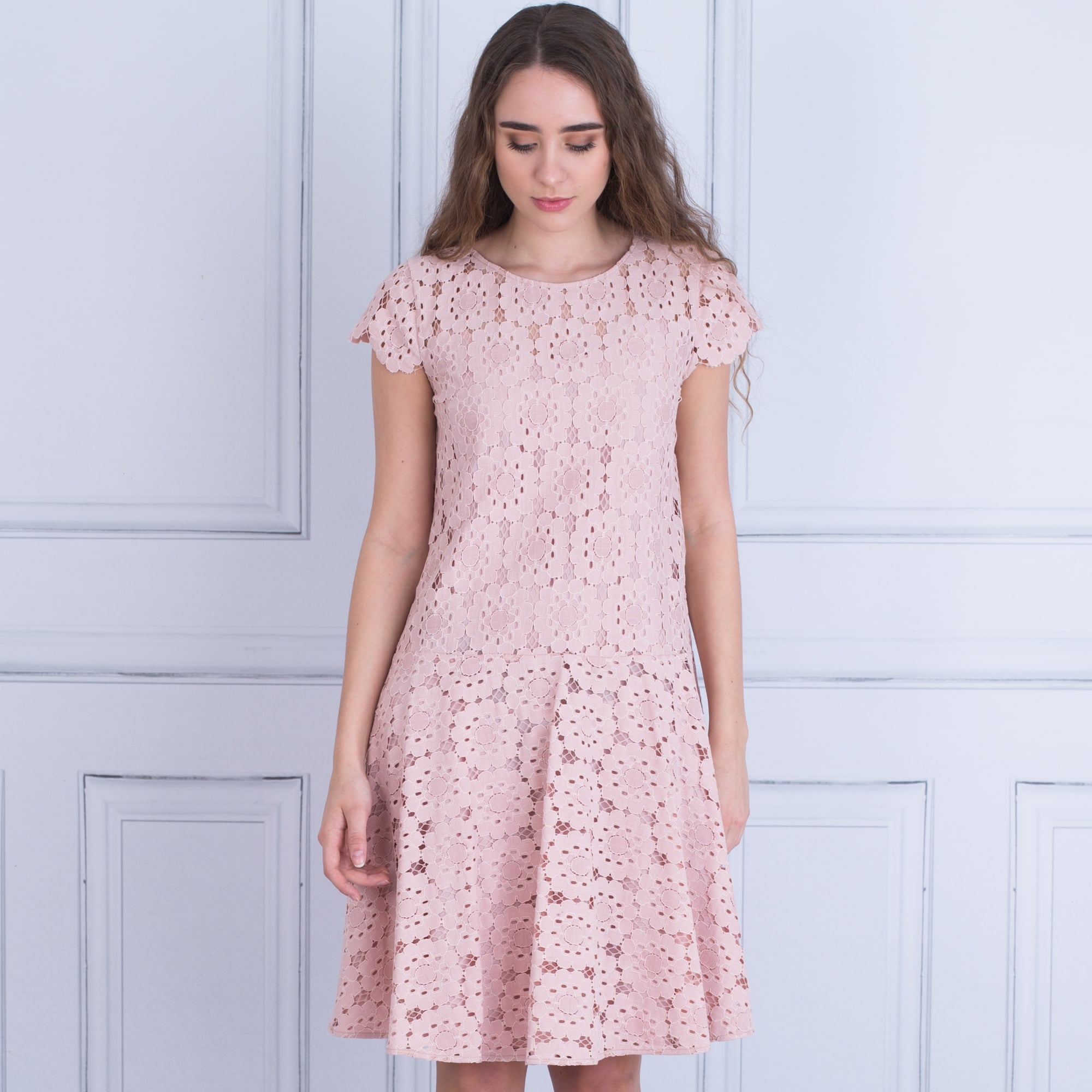 Beatrice B Cap Sleeve A Line Lace Dress Pink