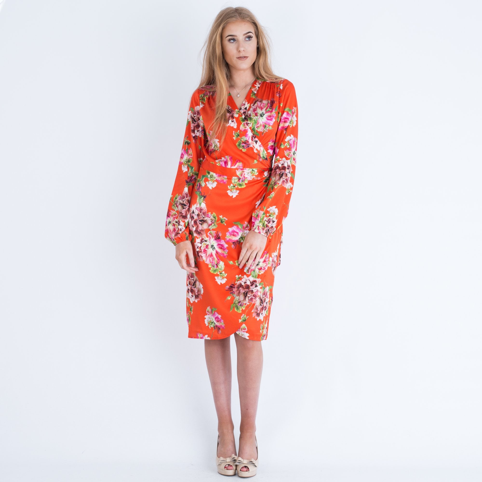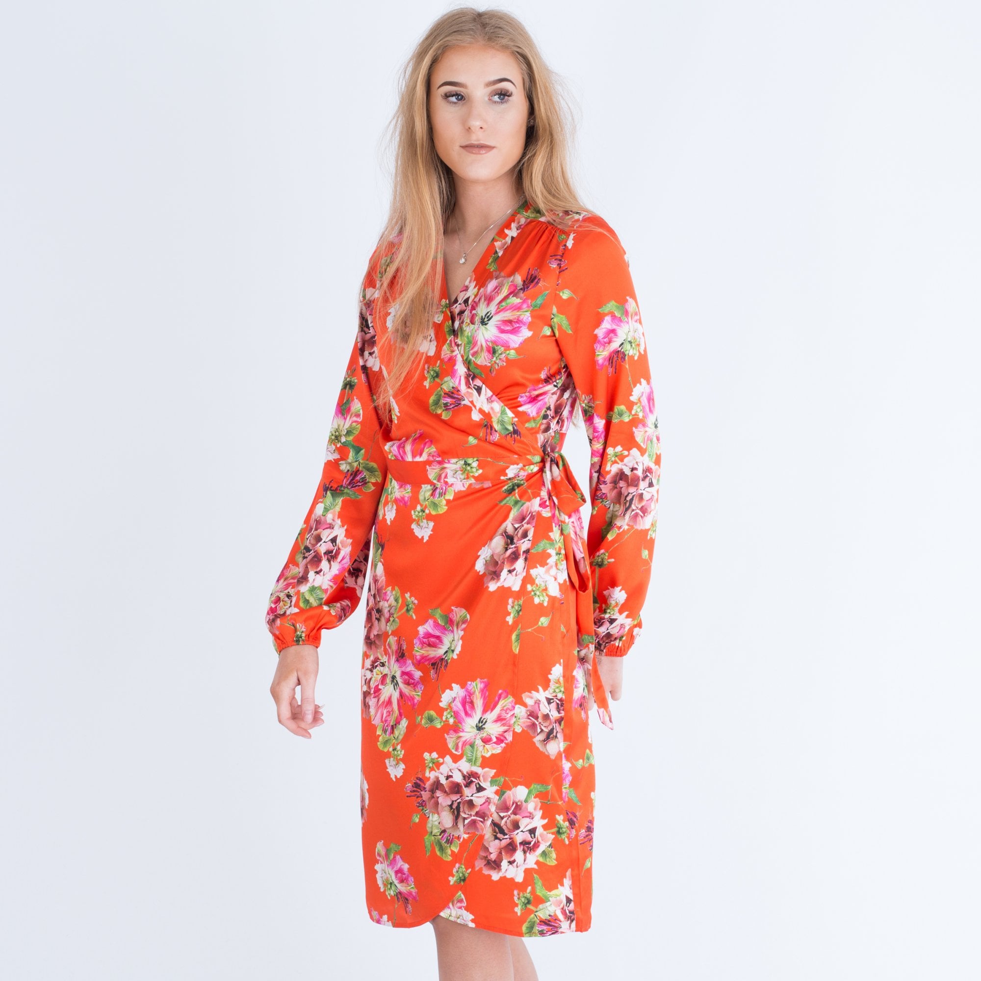 Dea Kudibal Riley Floral Print Silk Wrap And Tie Dress Orange