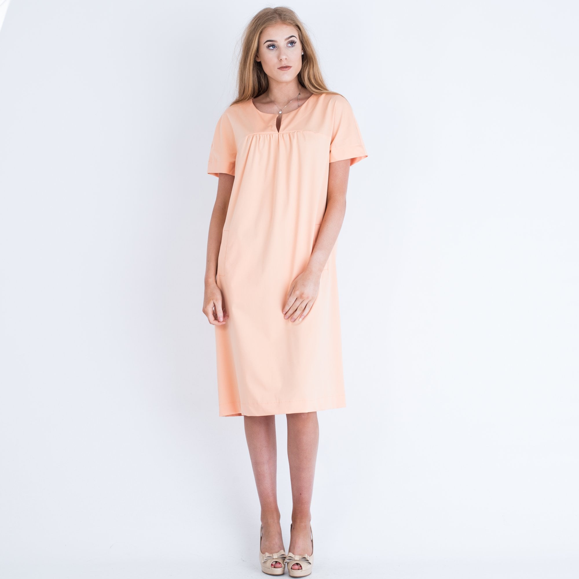 Riani Split Front Back Zip Stretch Cotton Dress Orange