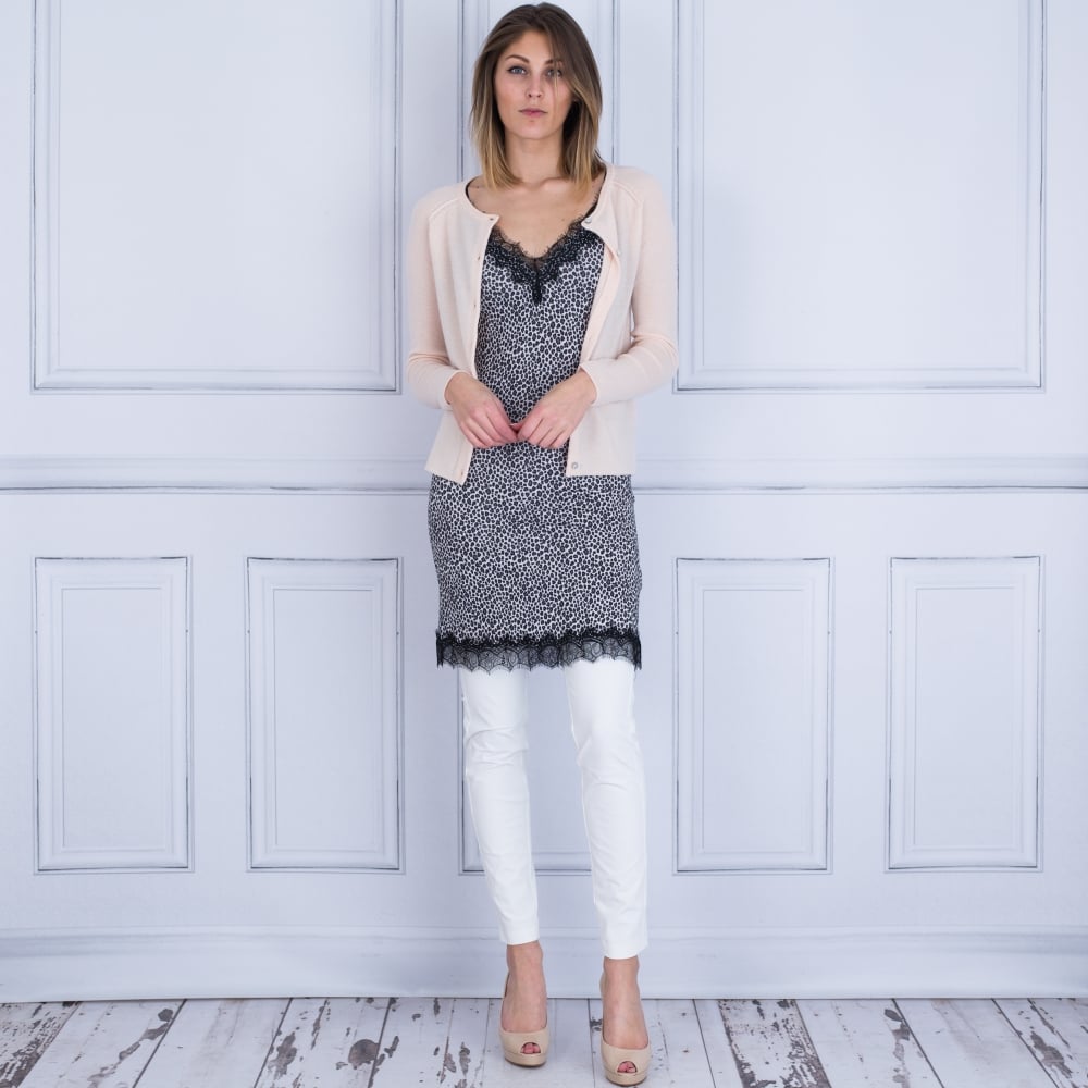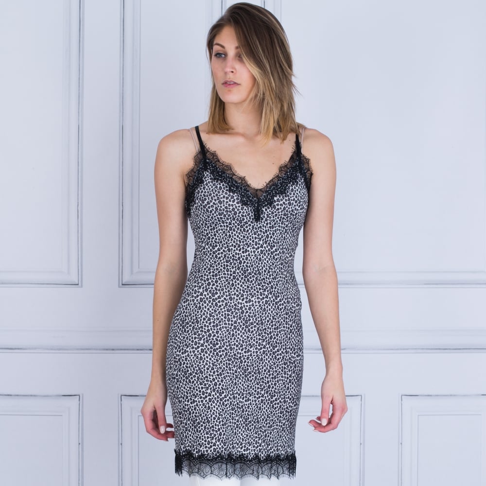 Rosemunde Lace Trim Leopard Print Slip Dress Grey