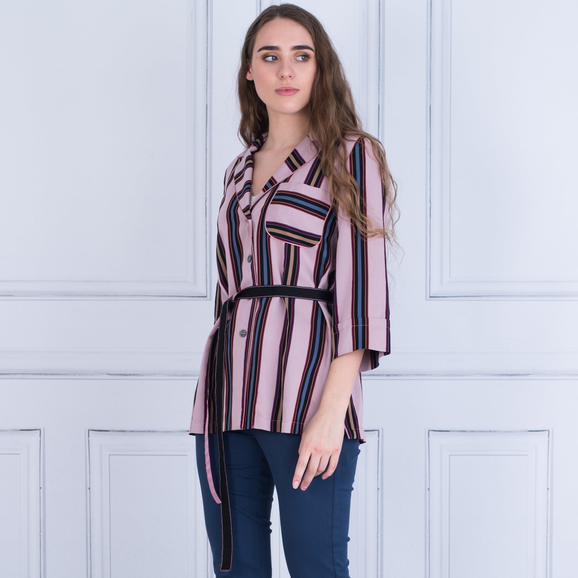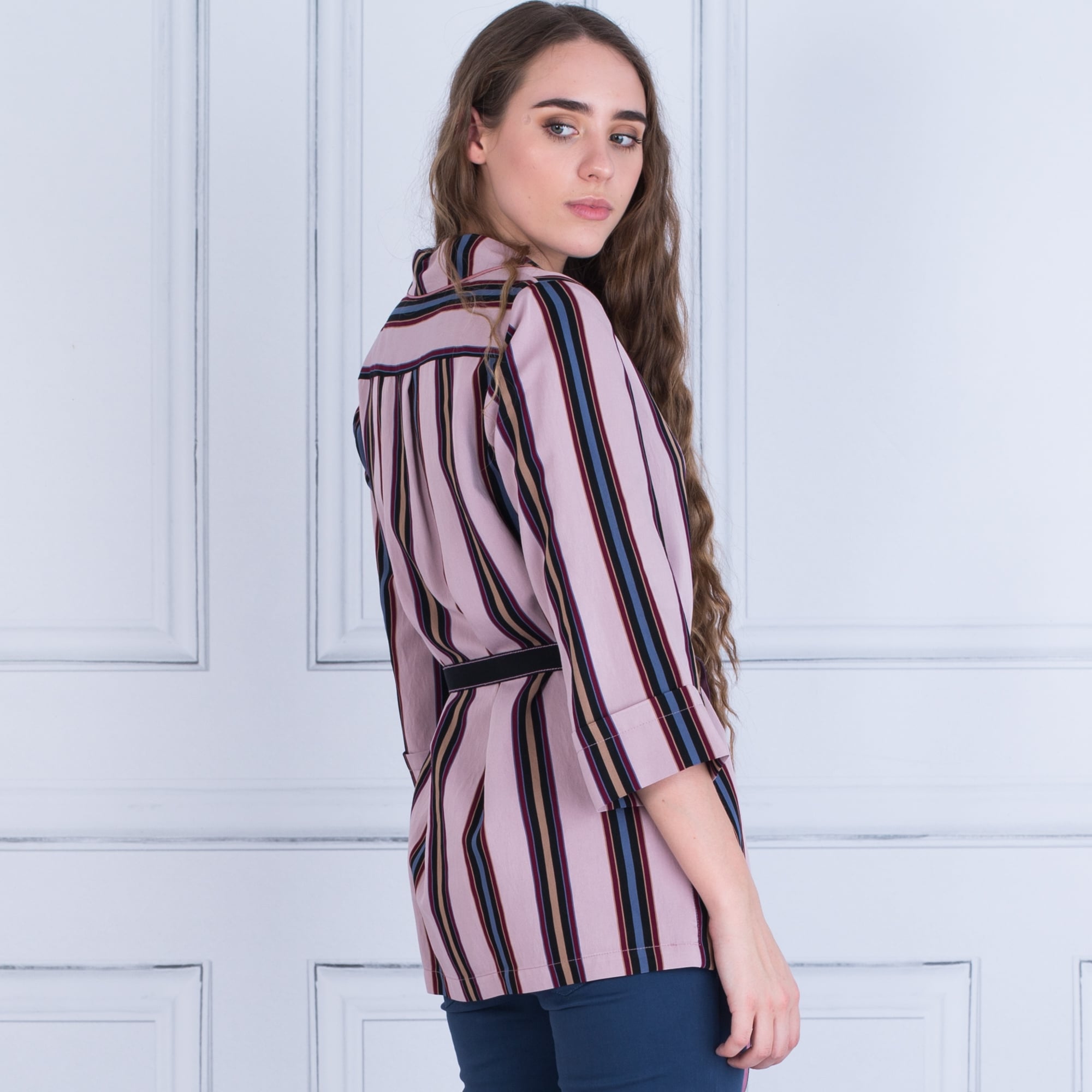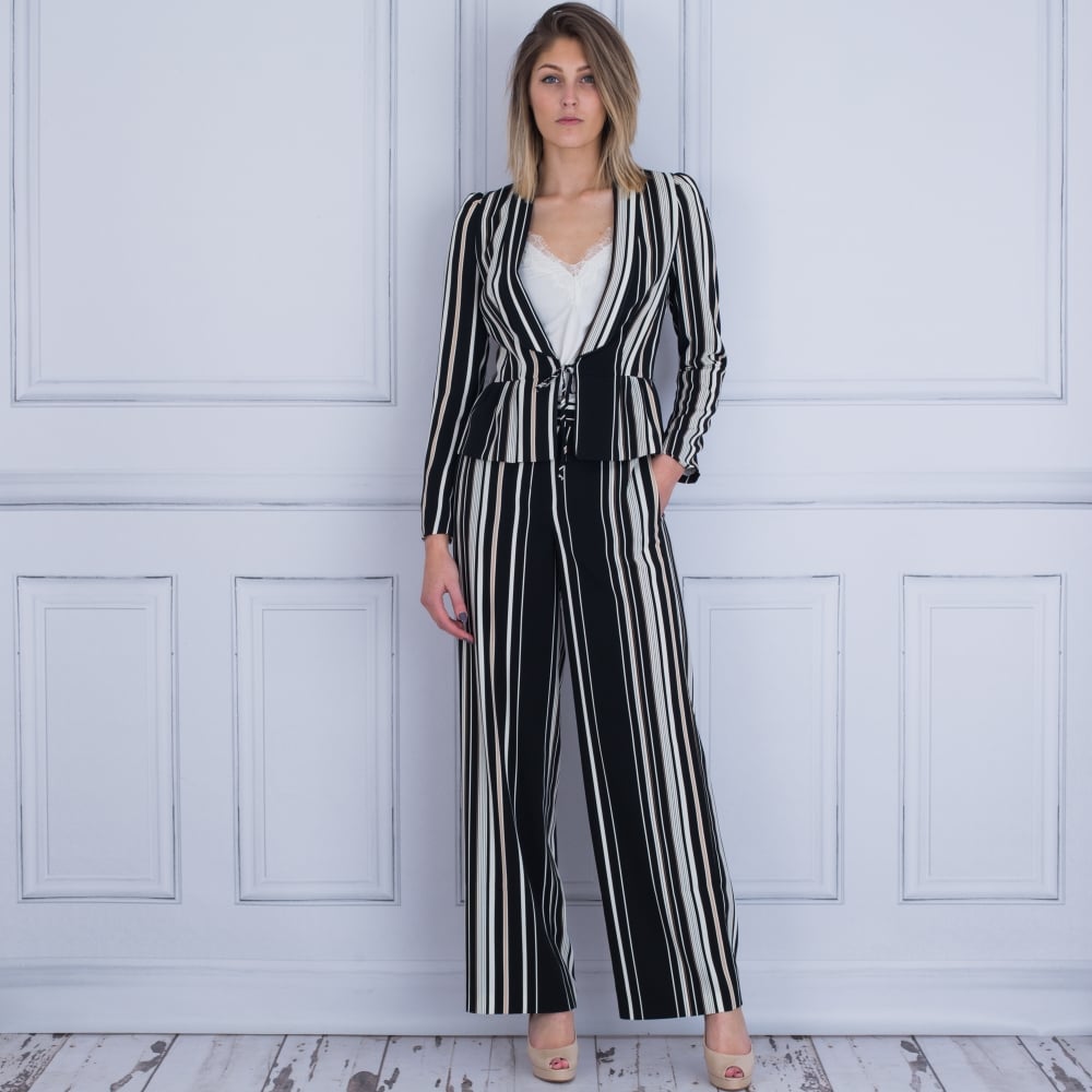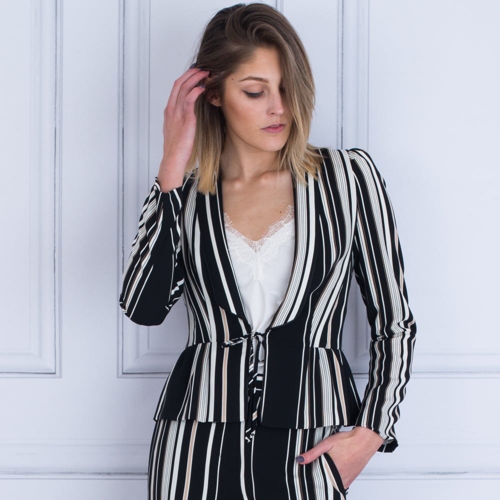 Marc Cain Tie Waist Stripe Jacket With Peplum Black/Beige