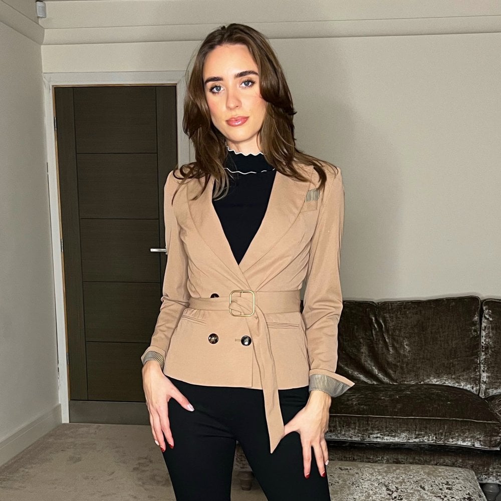 Marc Cain Tie Sleeve Belted Jacket Camel
