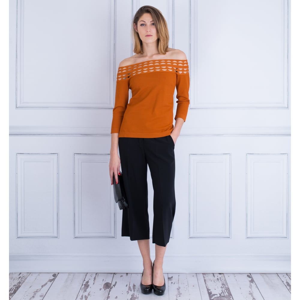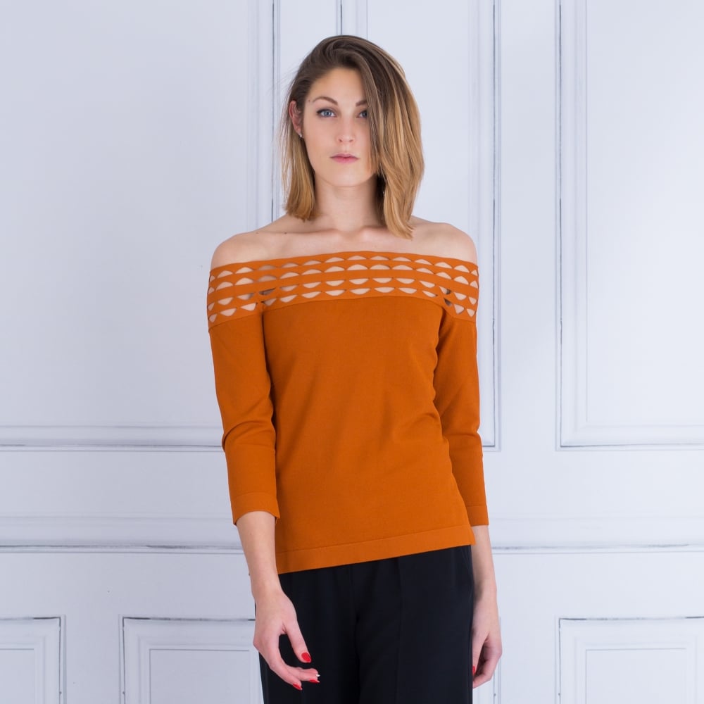 D.Exterior Off Shoulder Bardot Cut Out Jumper Burnt Orange