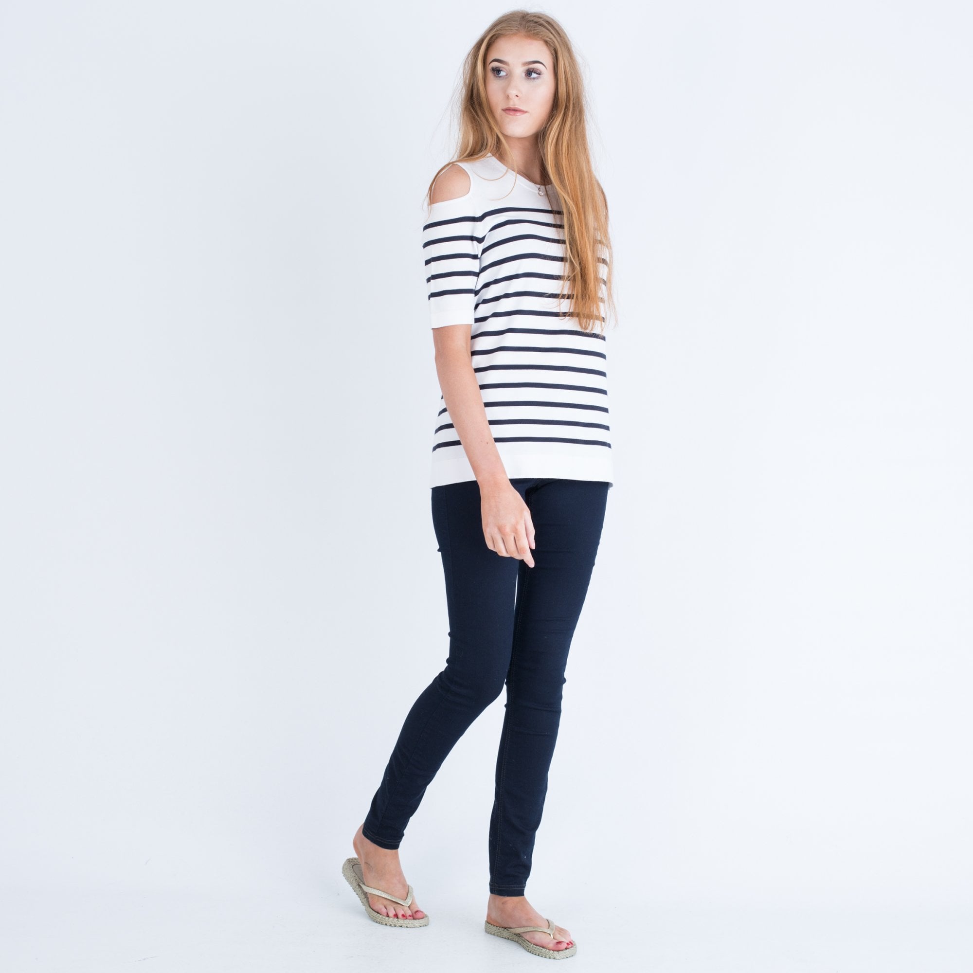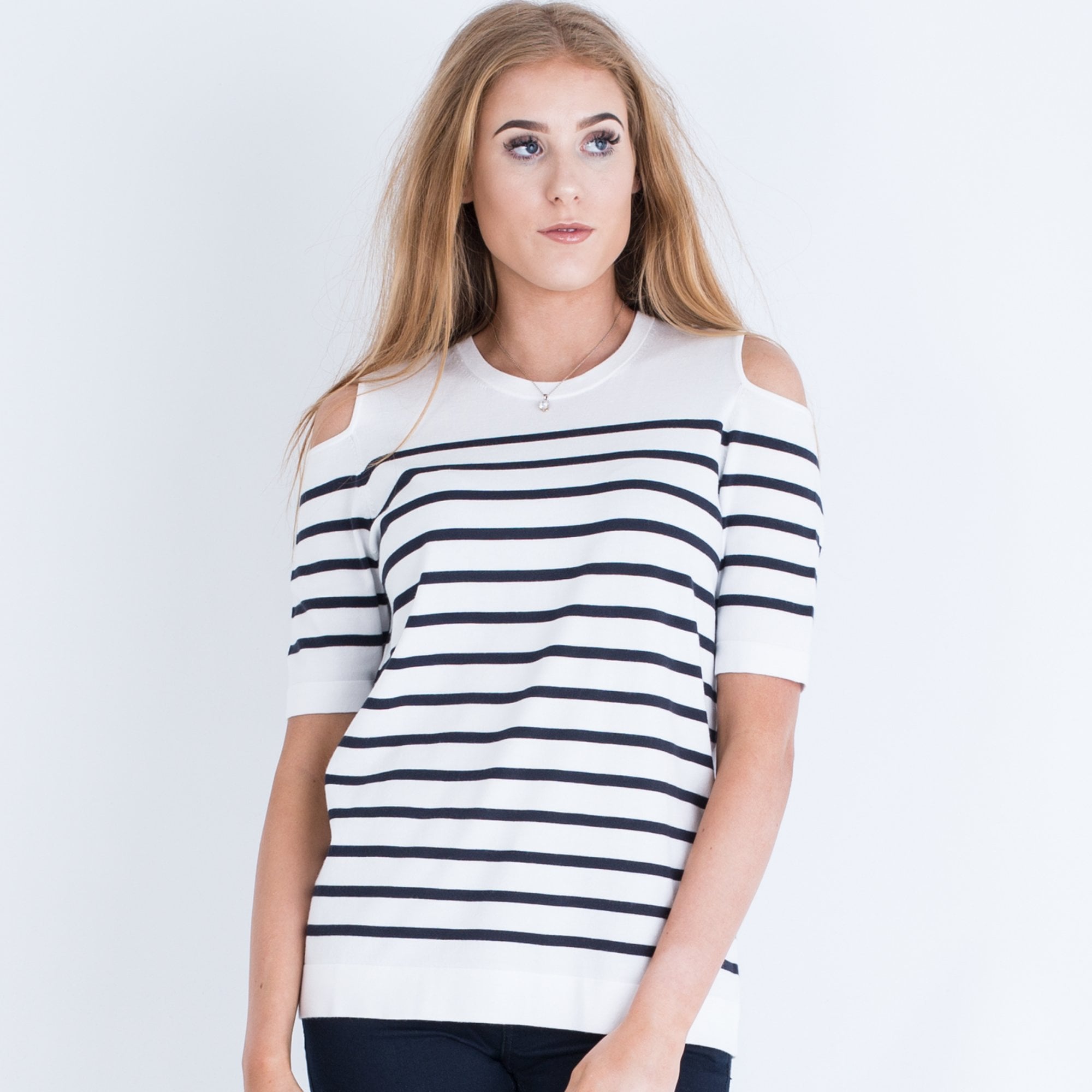 Luisa Cerano Cold Shoulder Stripe Knitted Top Black/White