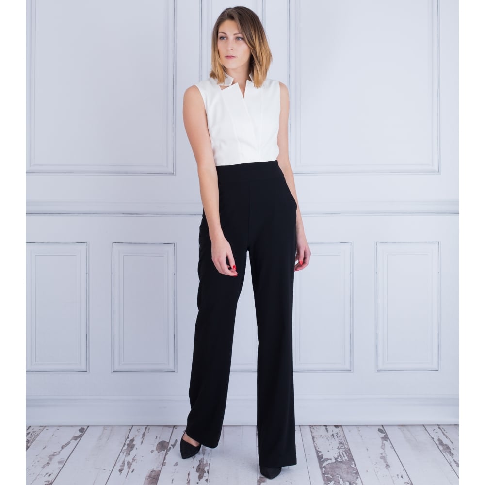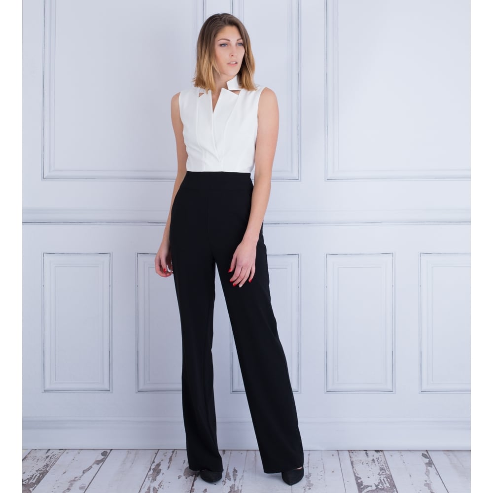 D.Exterior Sleeveless Wide Leg Tailored Jumpsuit Black & White