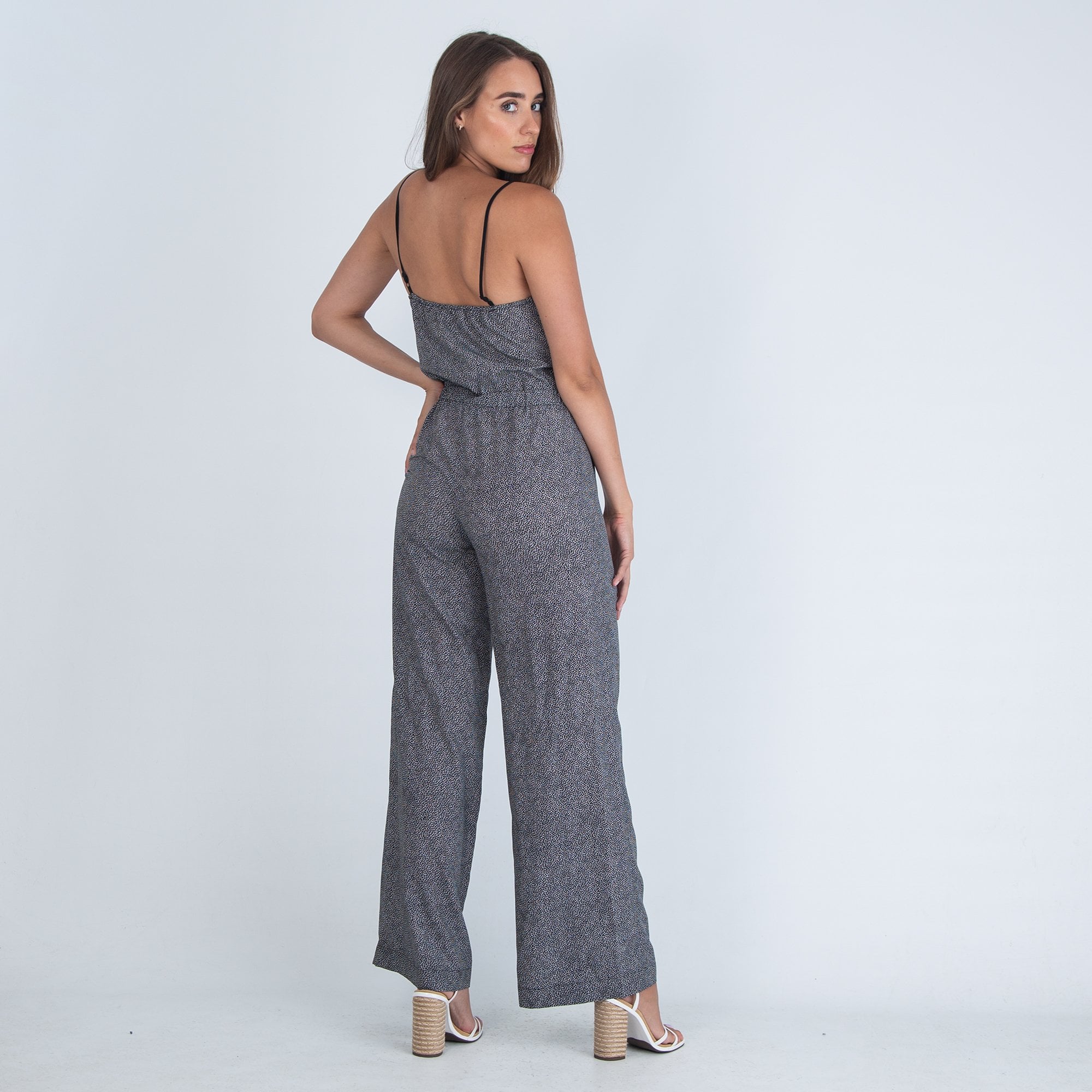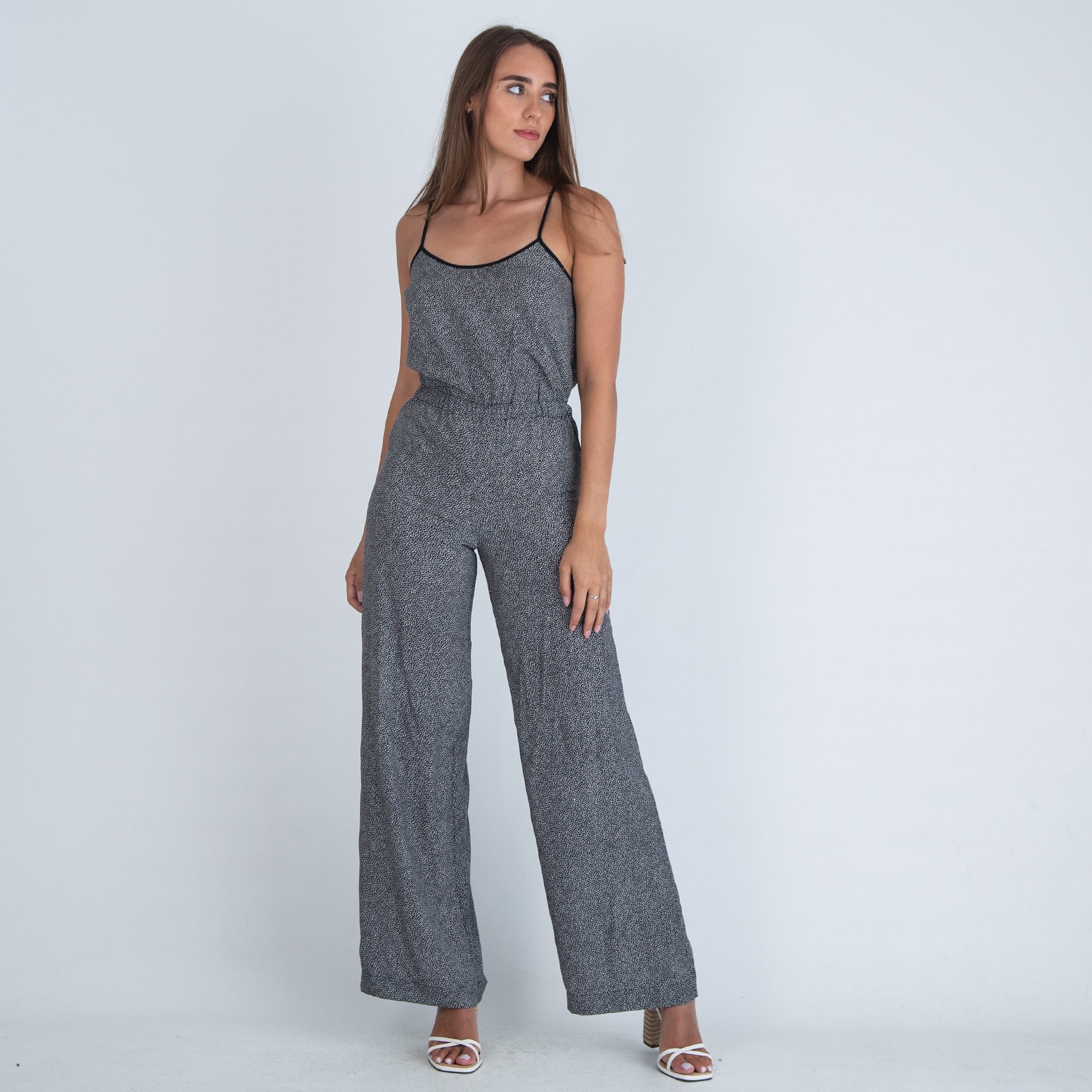 Michael Kors Spaghetti Strap Wide Leg Giraffe Print Jumpsuit Black/White