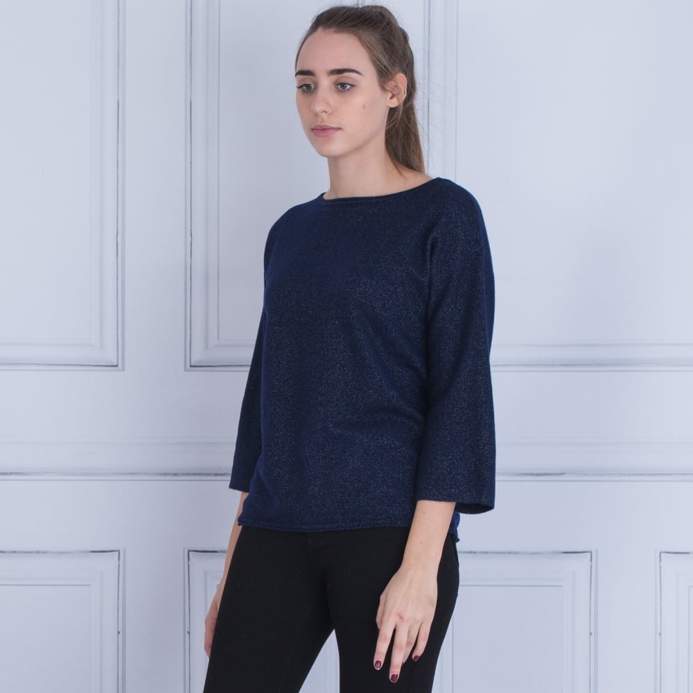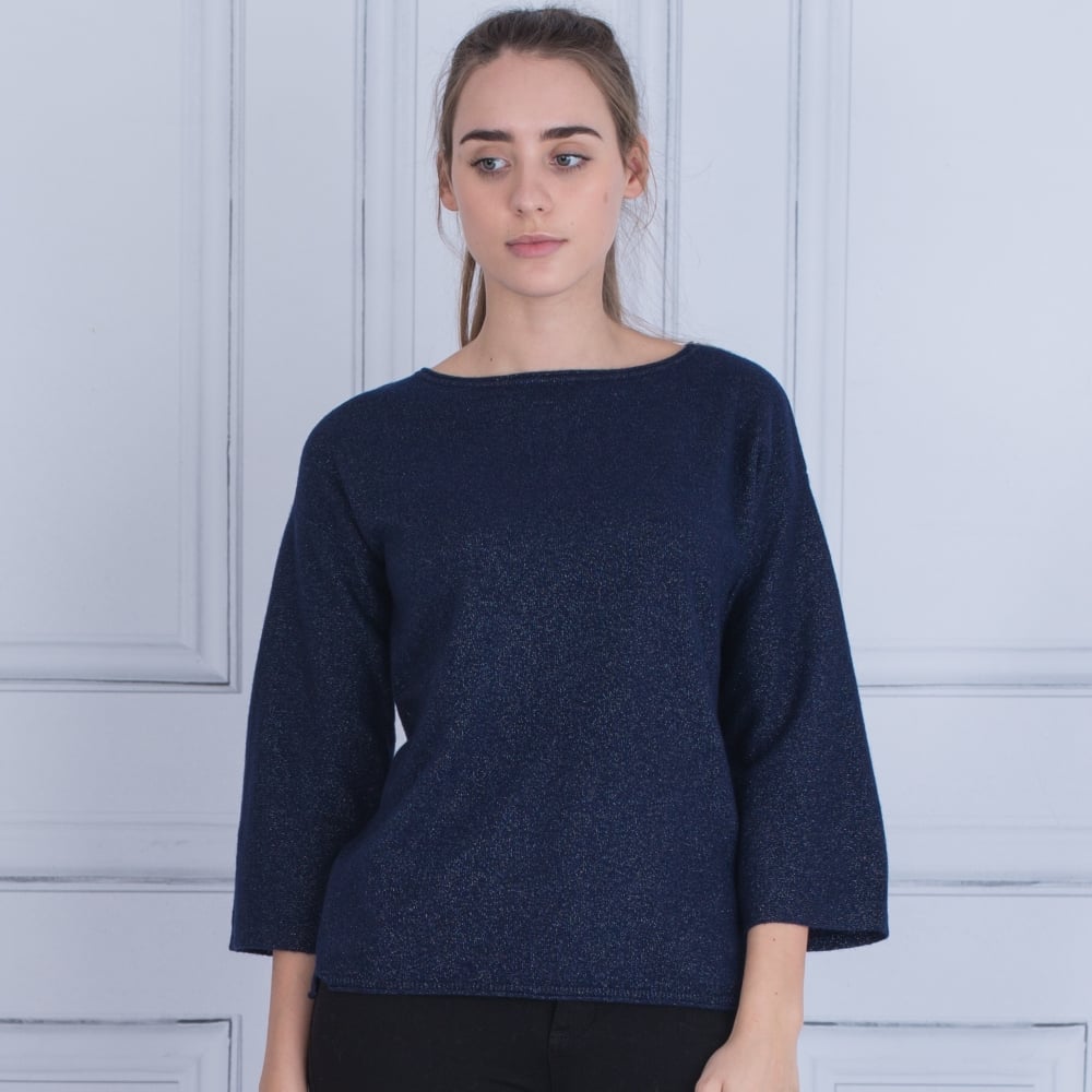 Cocoa Cashmere Round Neck Button Back Jumper Navy