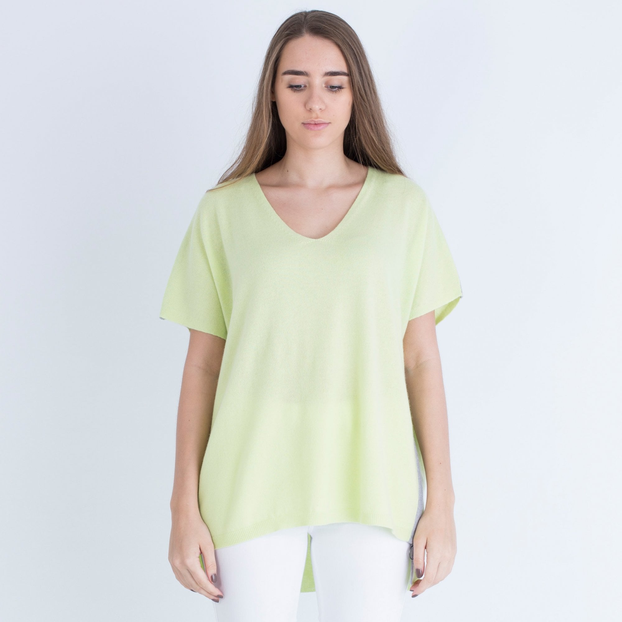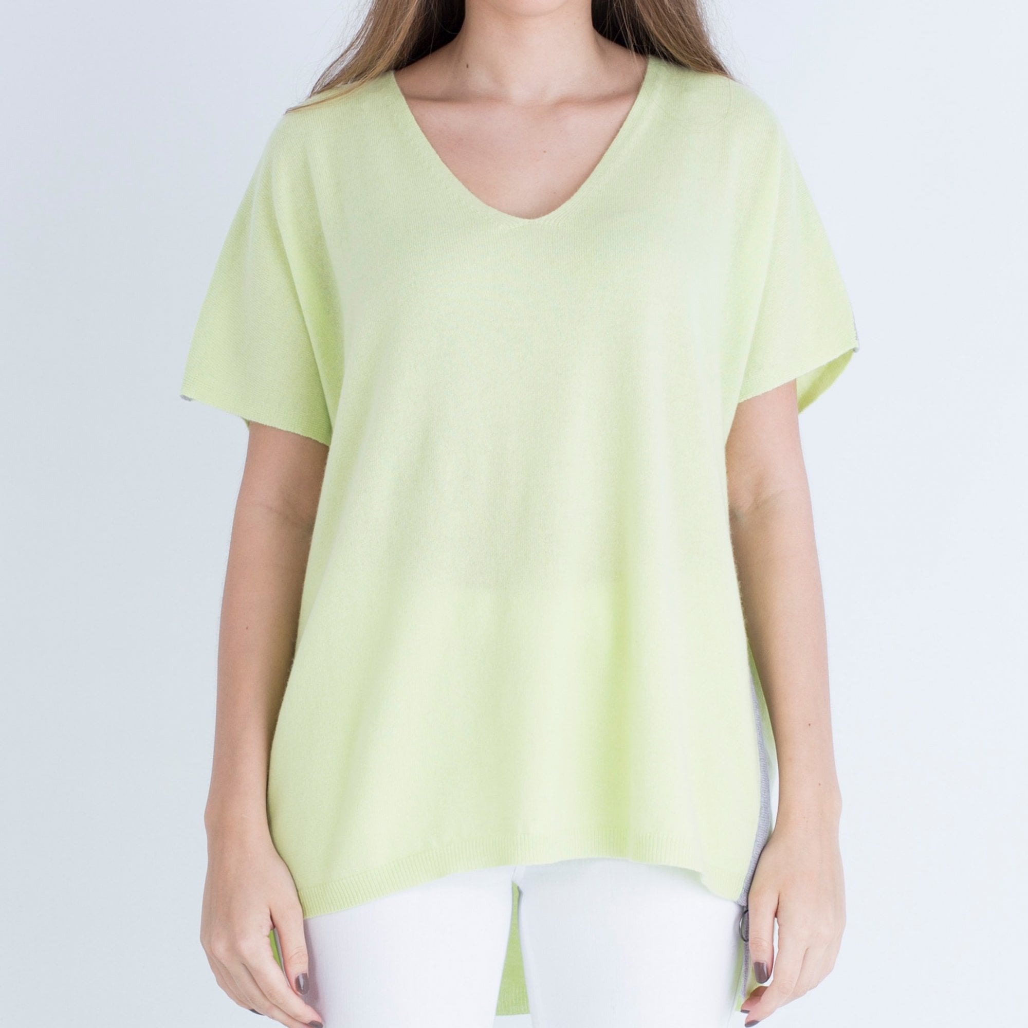Cocoa Cashmere Short Sleeve V Neck Jumper With Side Zip Light Pistachio