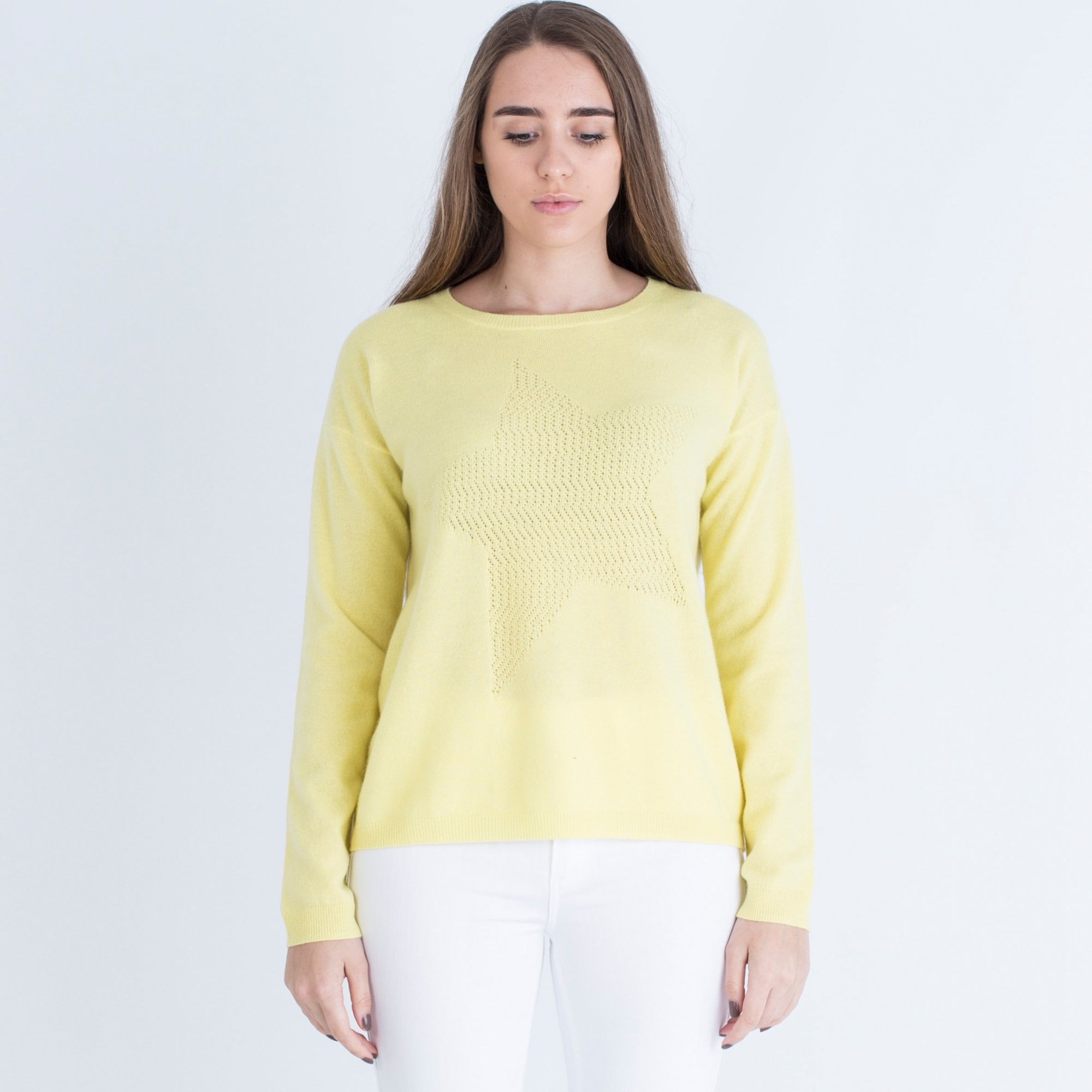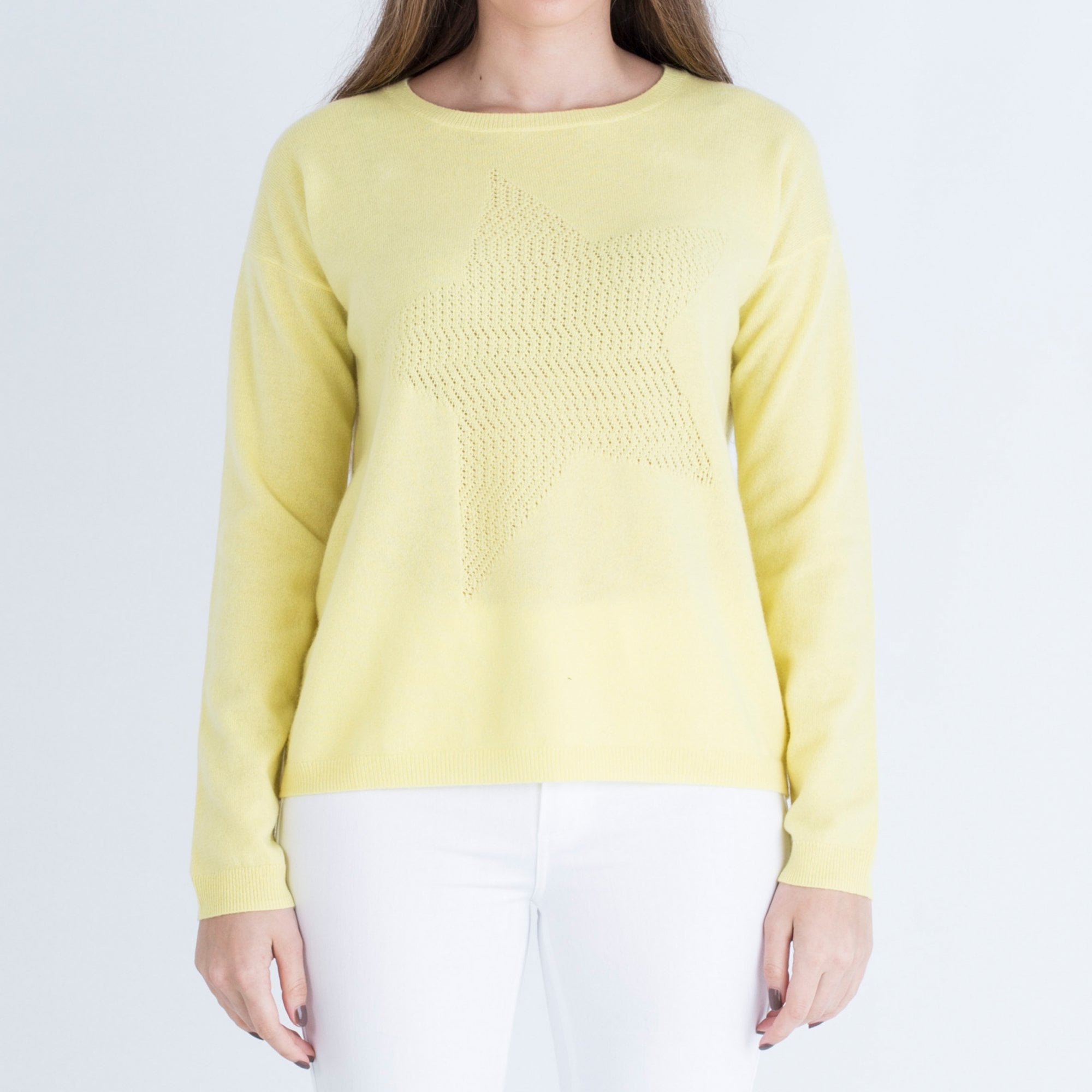 Cocoa Cashmere Star Print Round Neck Short Jumper Lemon