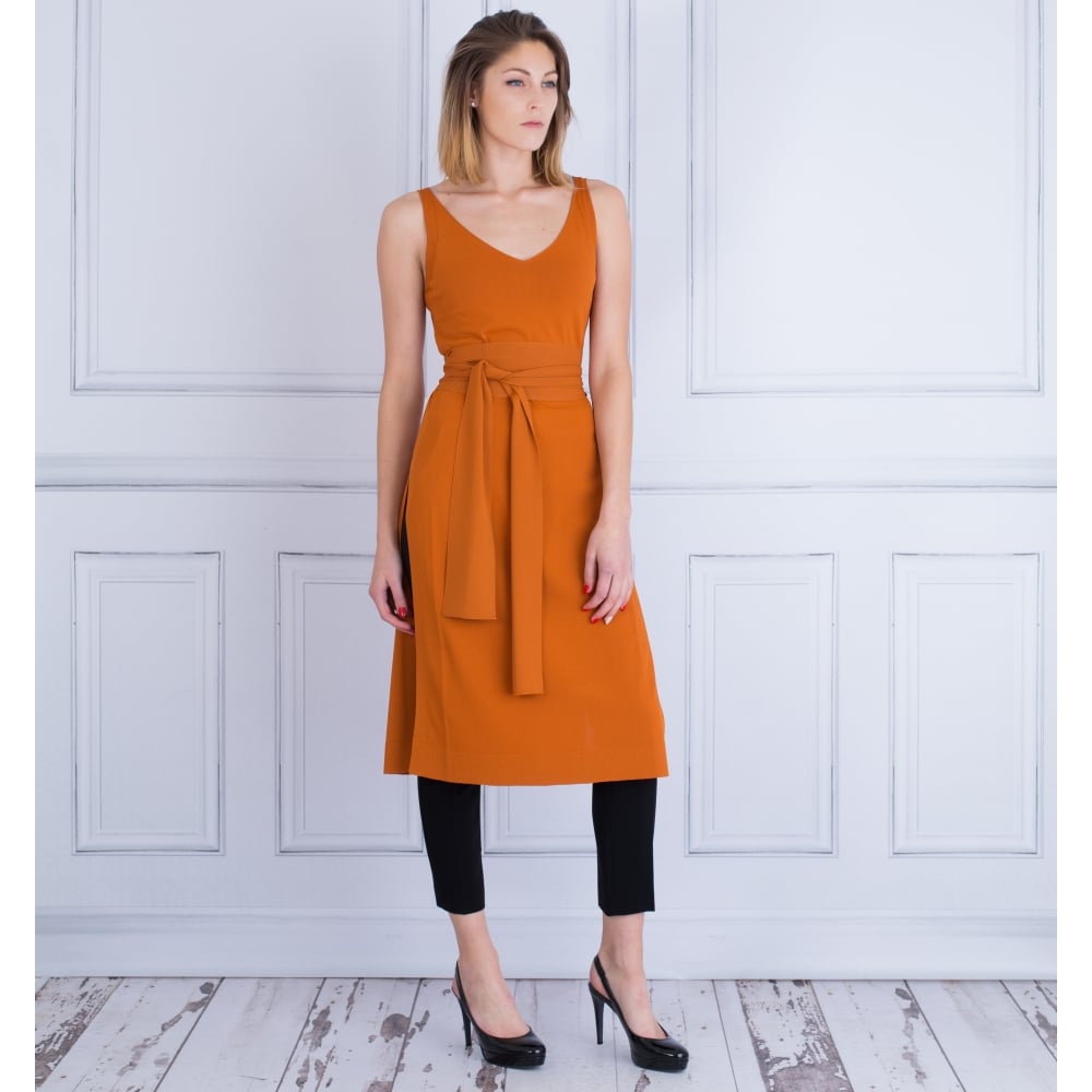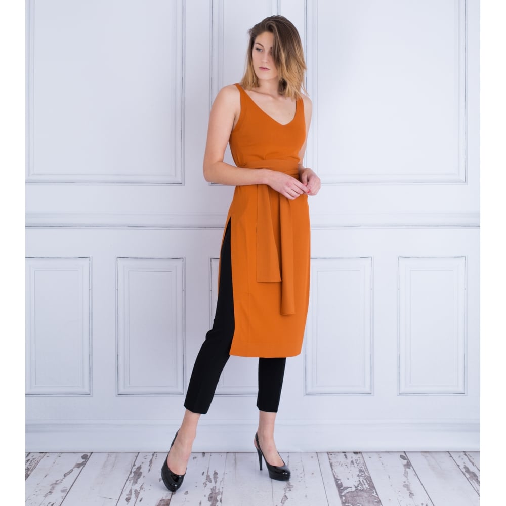 D Exterior Long Side Split Tabard Tunic Dress Burnt Orange