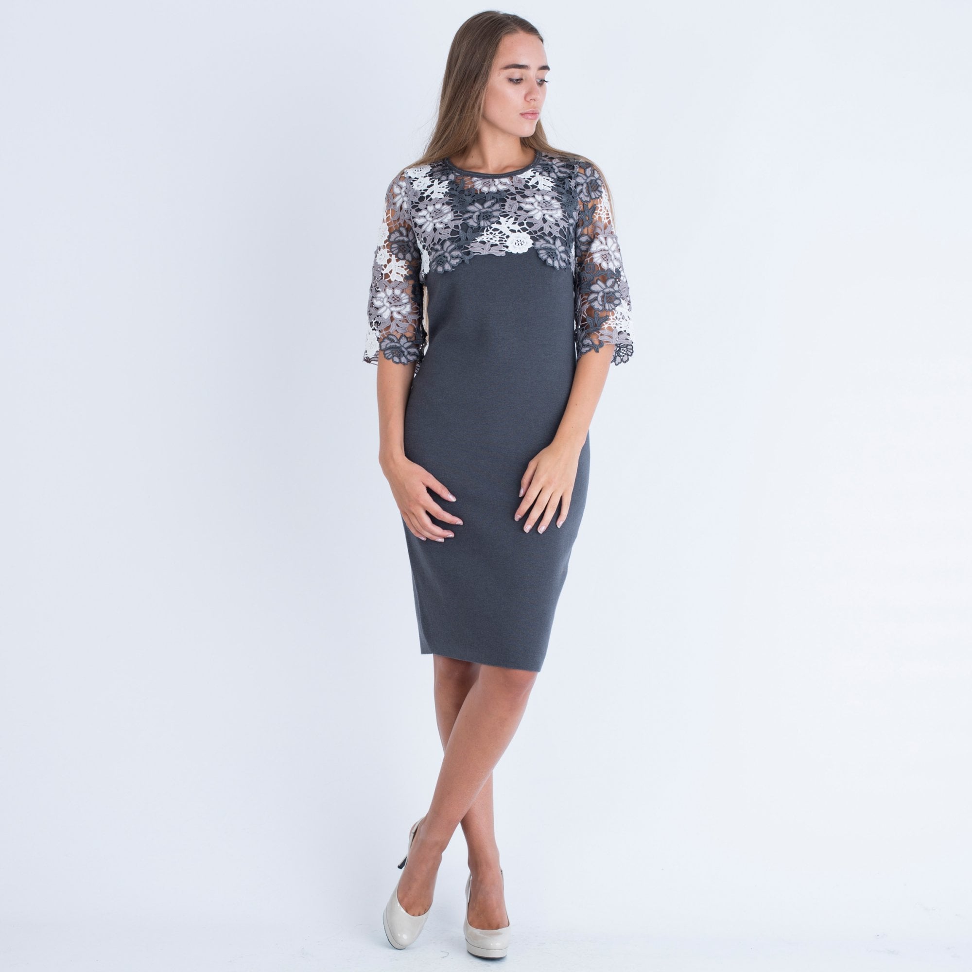 Dexterior Lace Removable Top Knitted Dress Grey/White