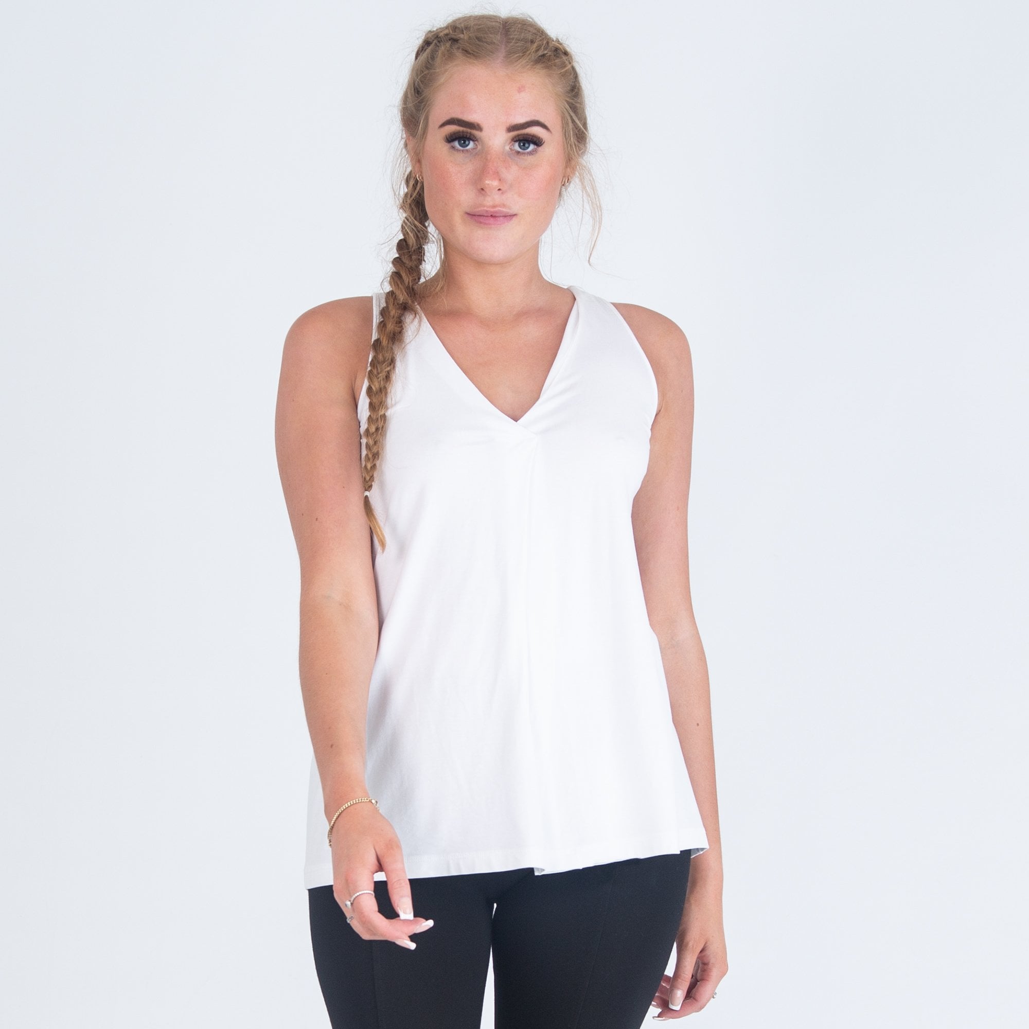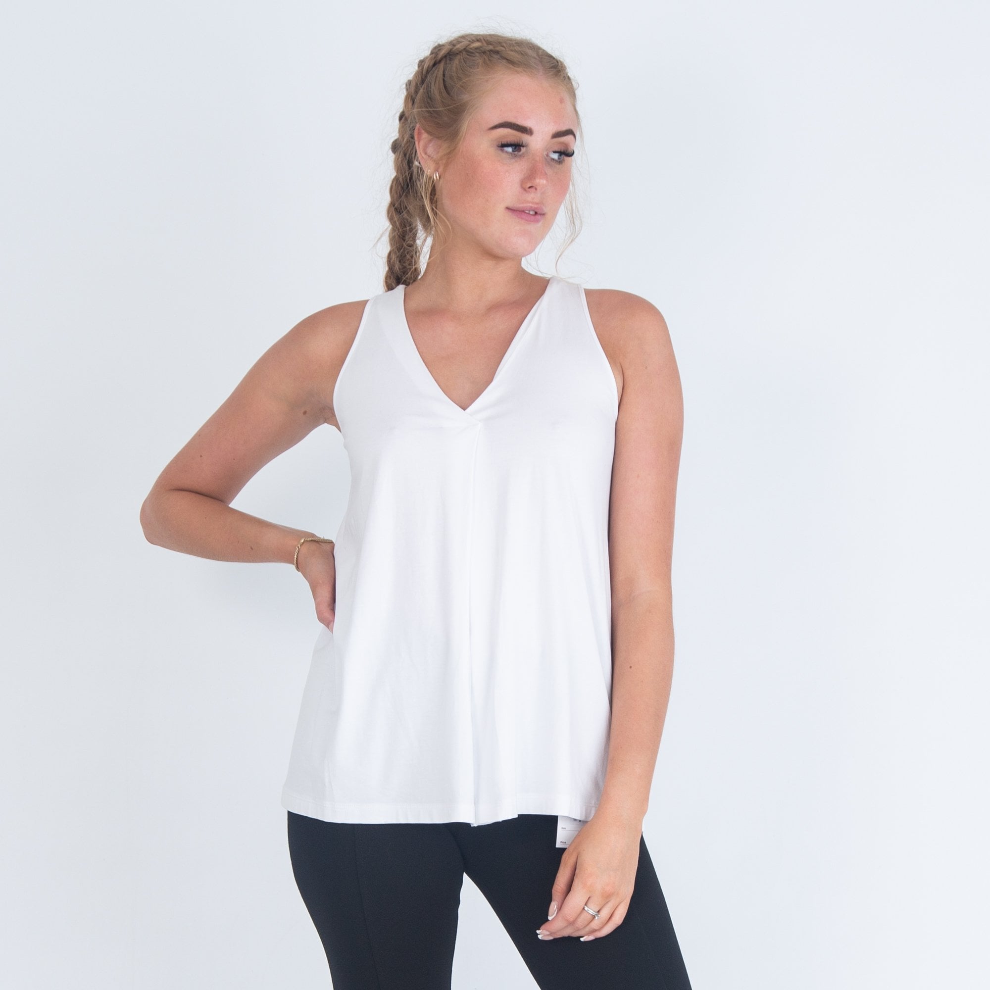 D.Exterior V Neck Pleat Front Loose Bodied Sleeveless Top White