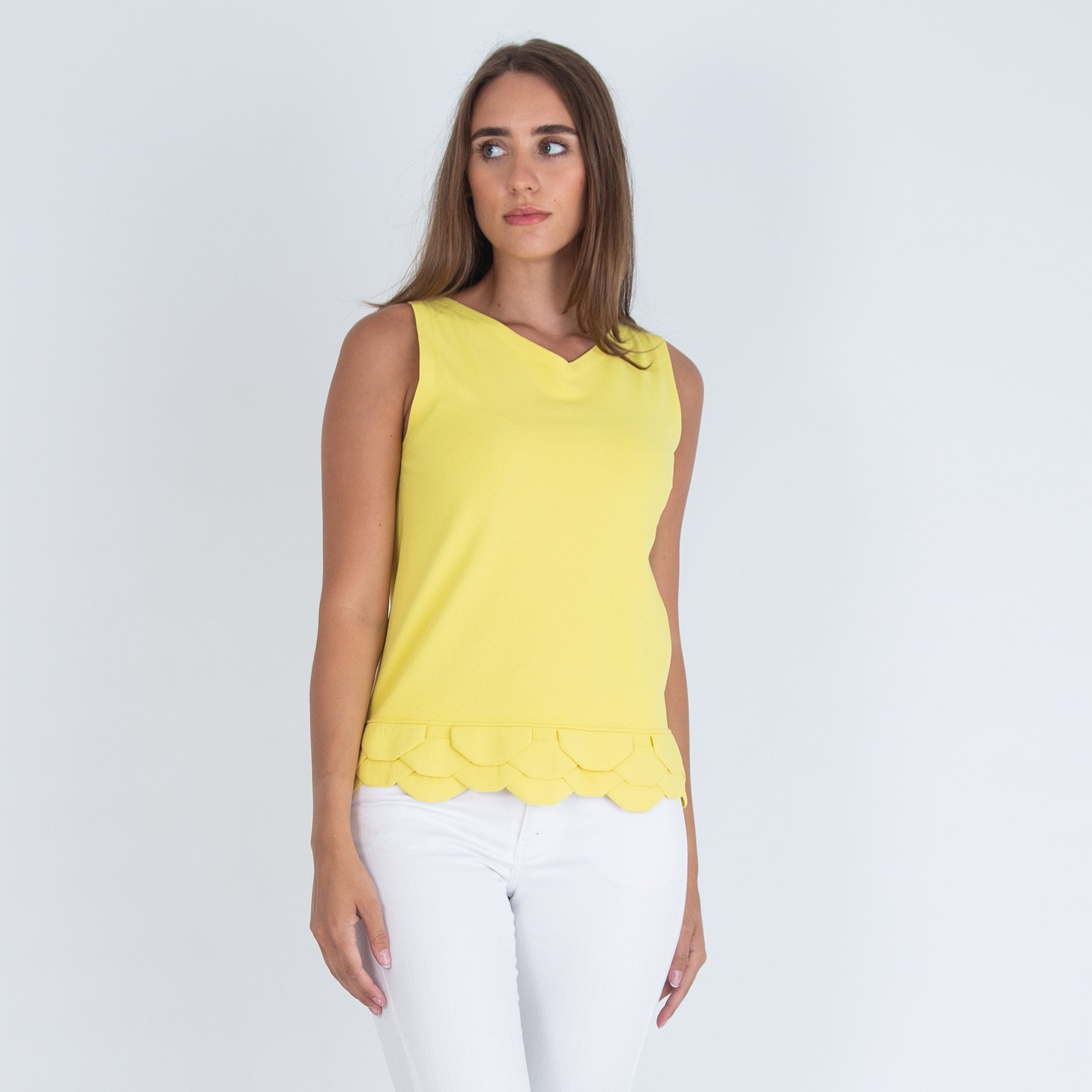 D.Exterior V Neck Sleeveless Scalloped Hem Top Yellow