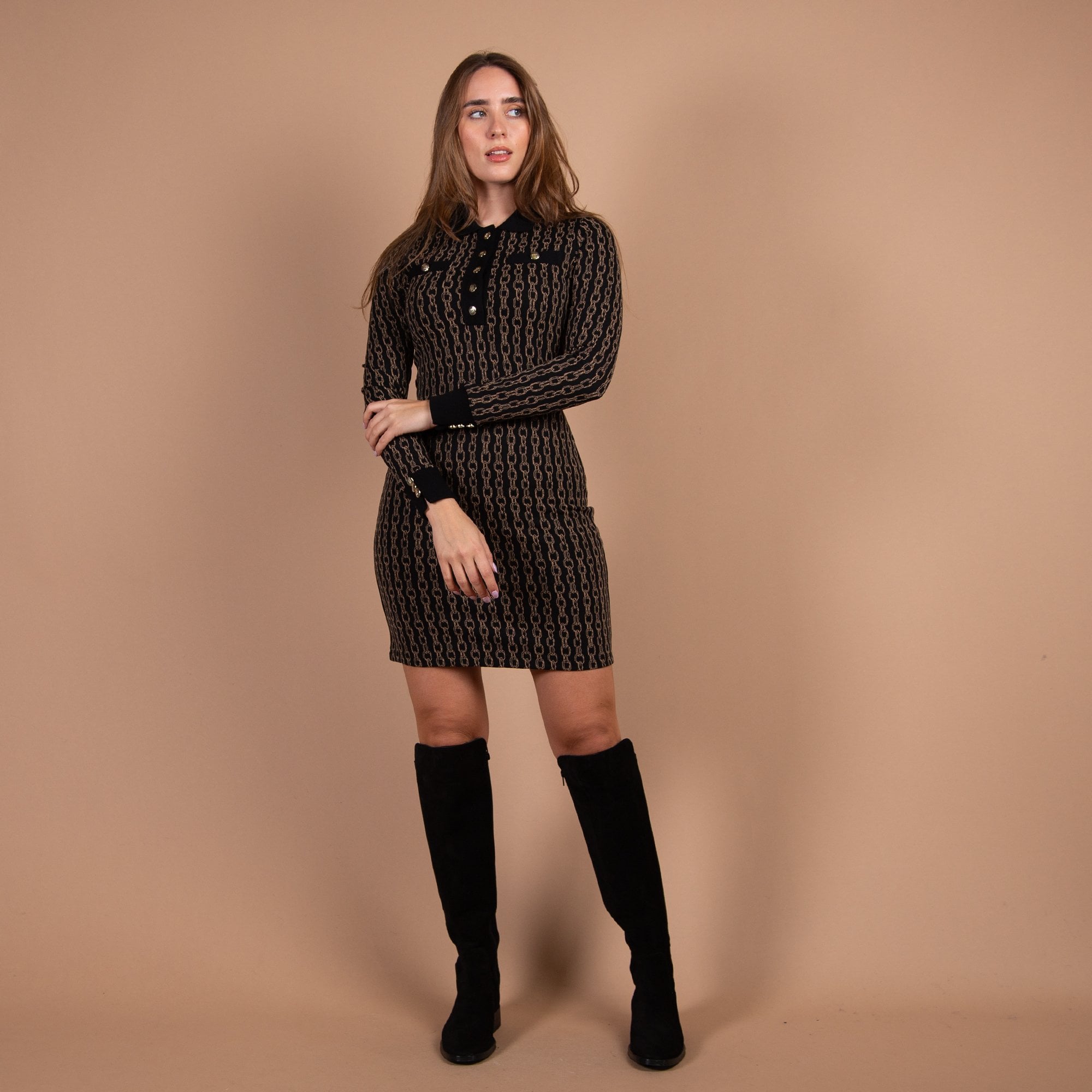 Riani Chain Print Stretch Fitted Shirt Dress Black/beige