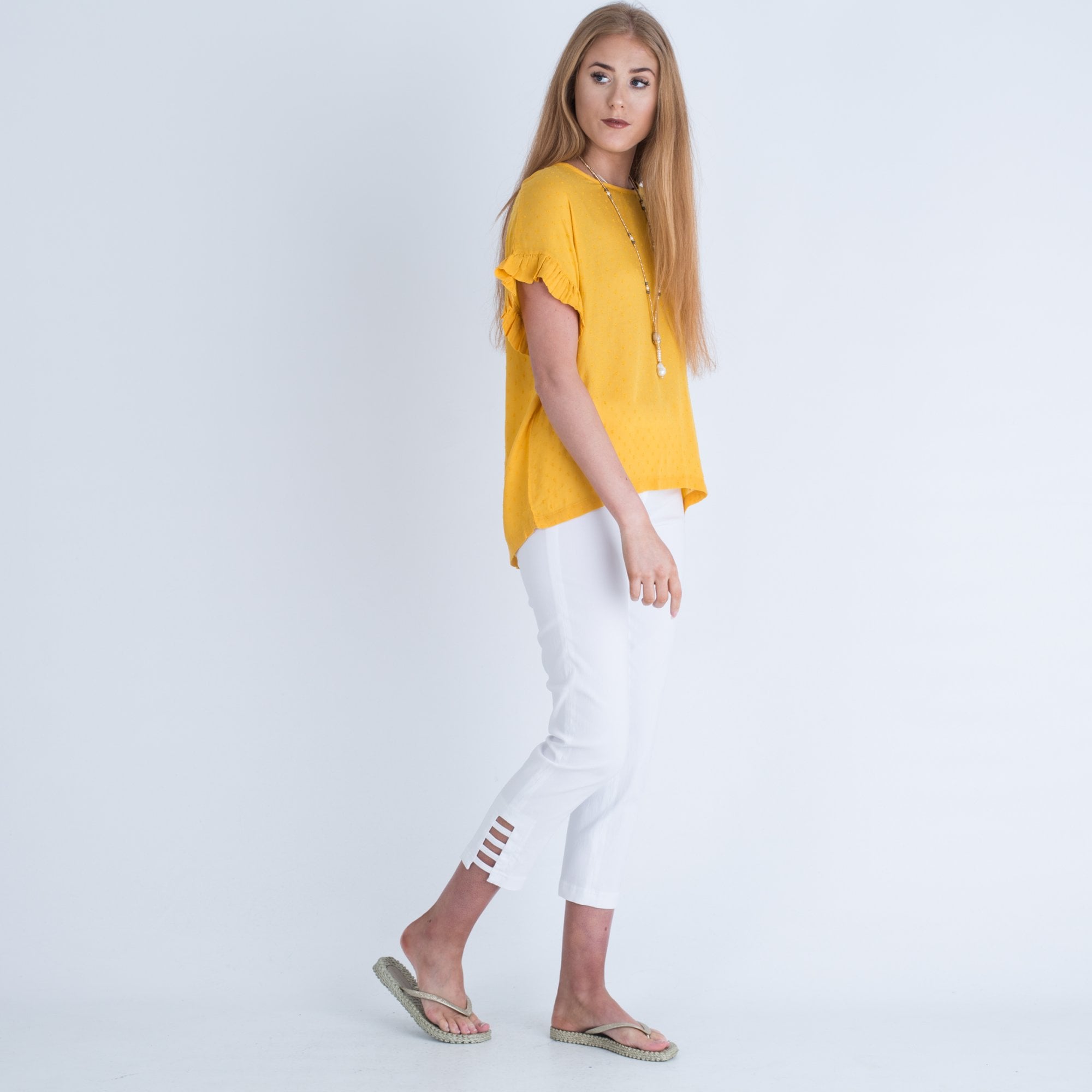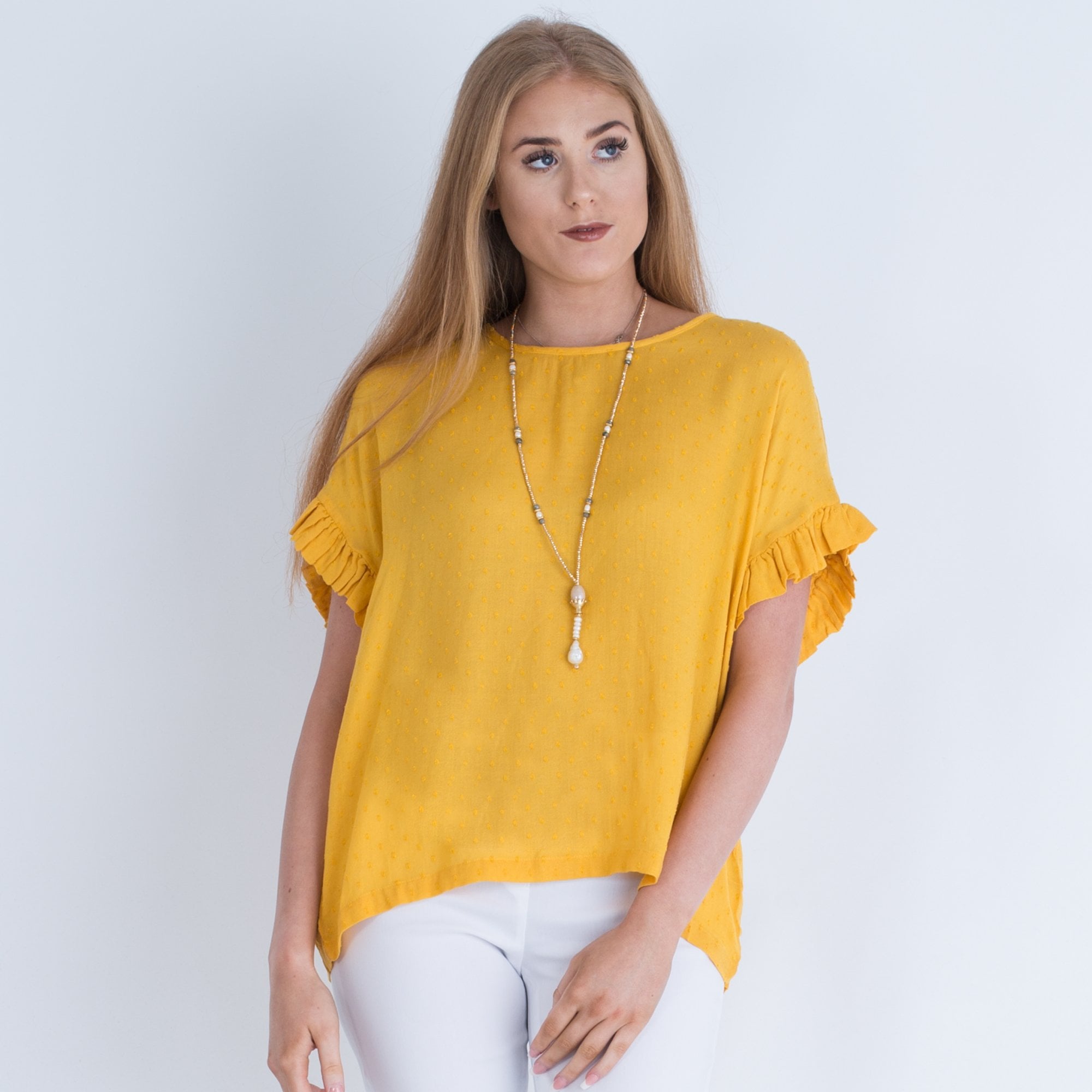 Masai Earleen Round Neck Spot Frill Sleeve Top Mustard