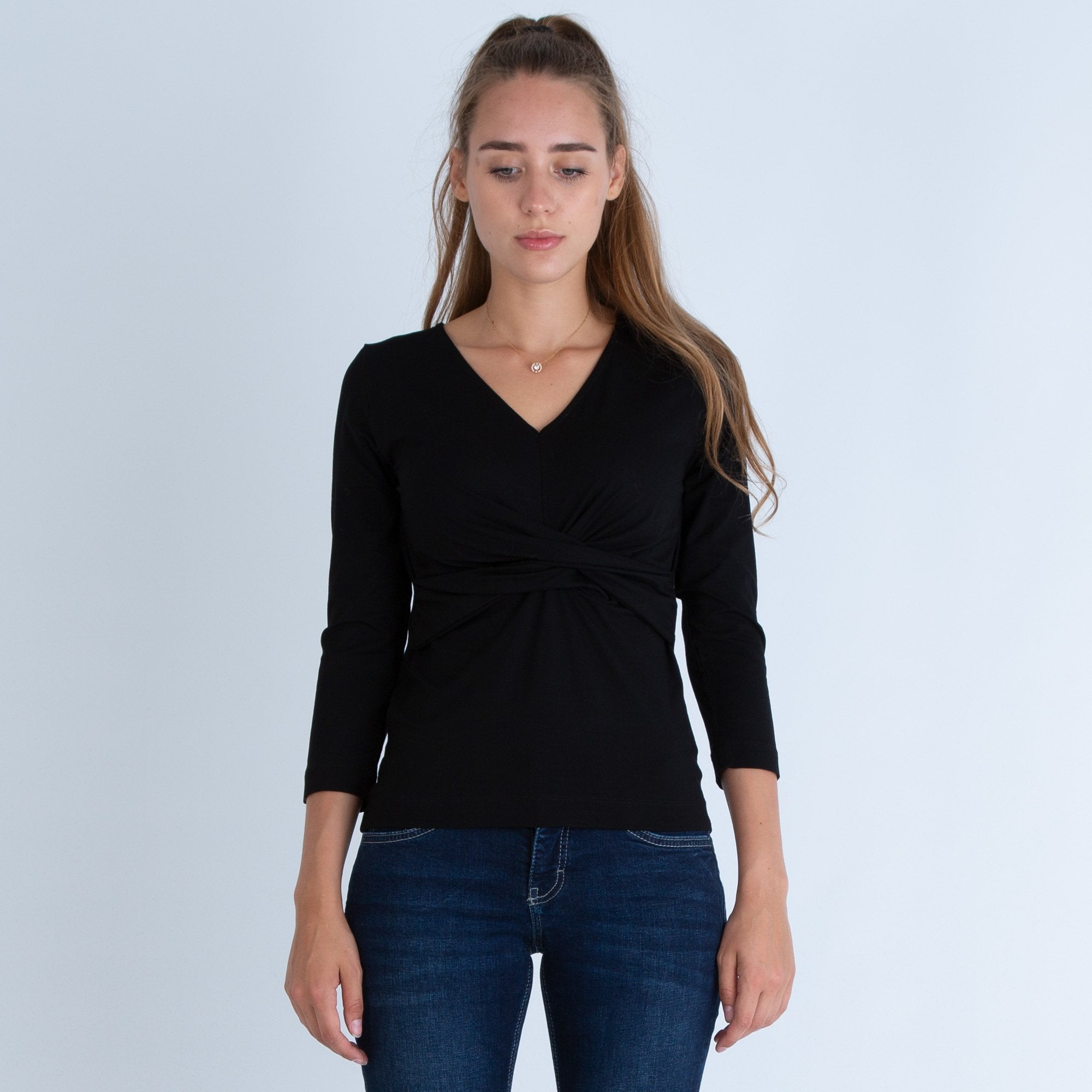 Vetono V Neck Cotton Jersey T Shirt With Front Seam Black