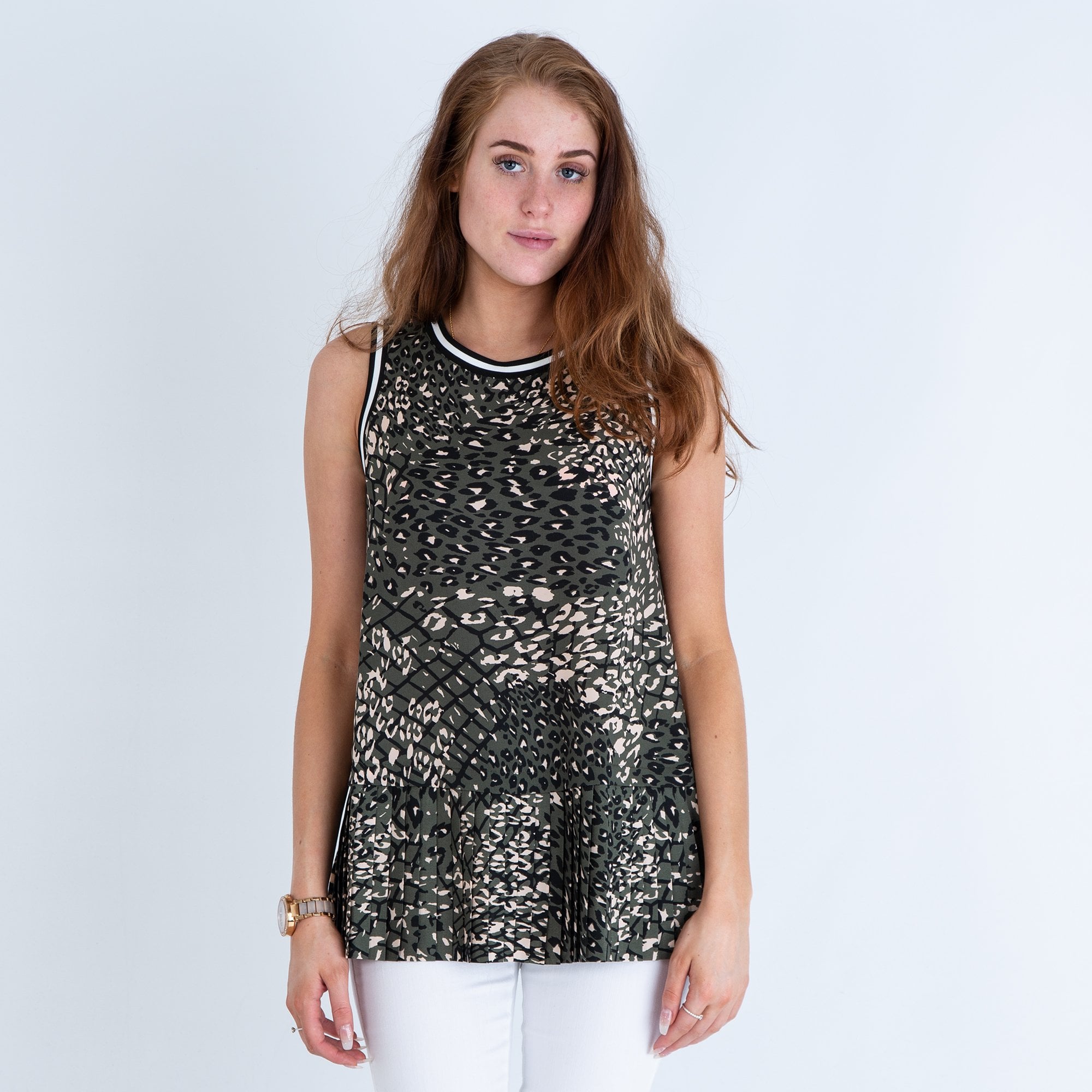 Marc Cain Leopard Print Pleat Hem Top Khaki