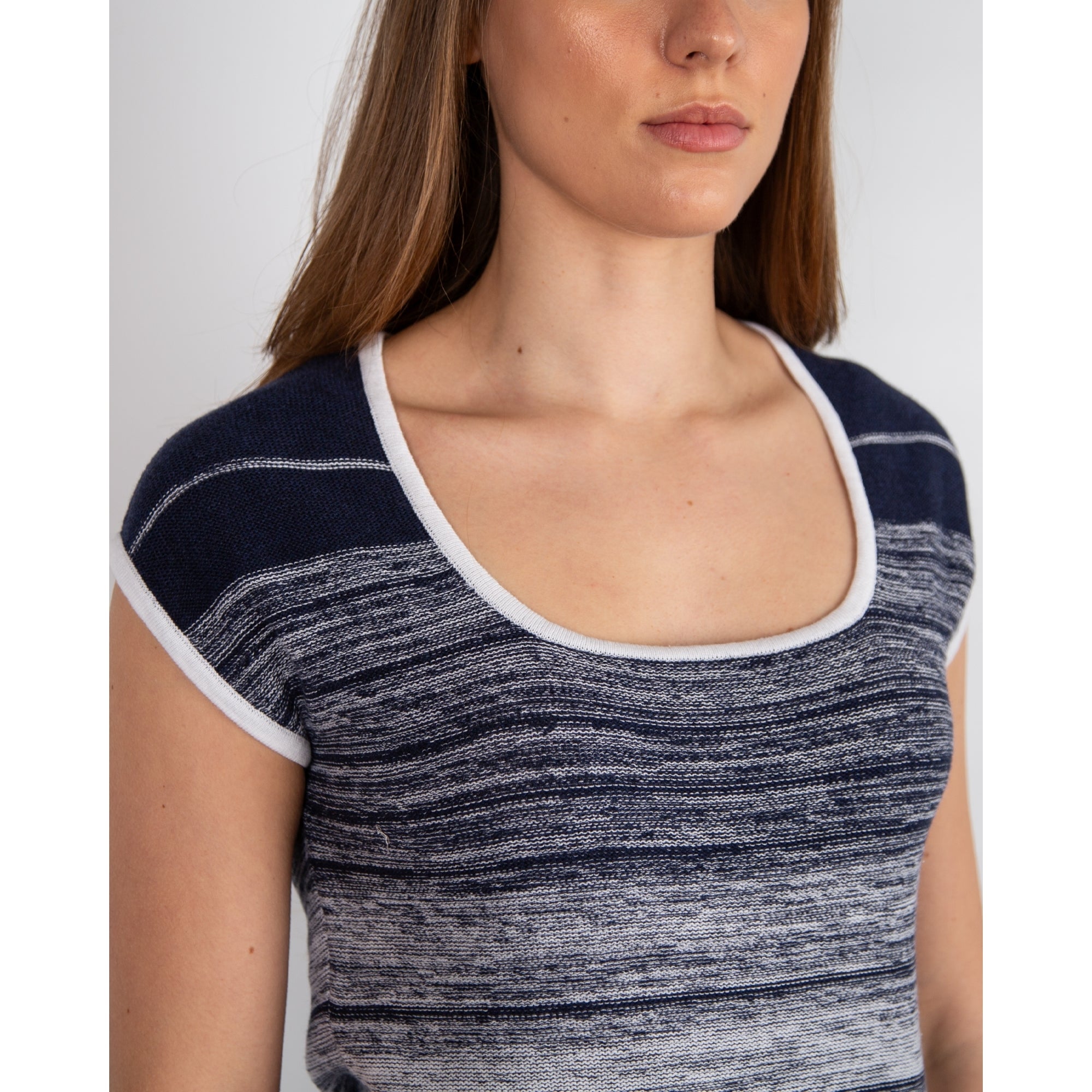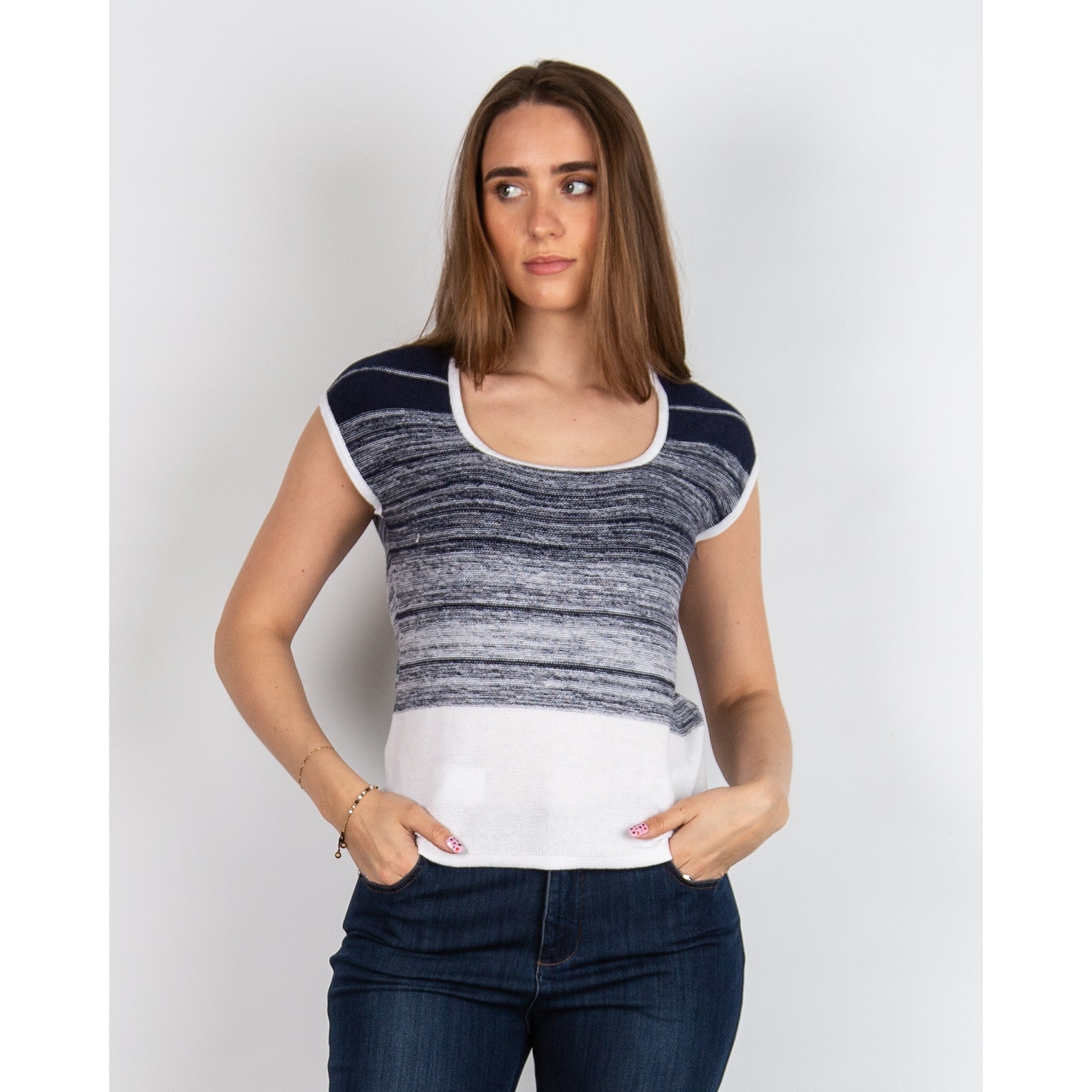 Marble Fashions Round Neck Shaded Stripe Top Navy/white 103