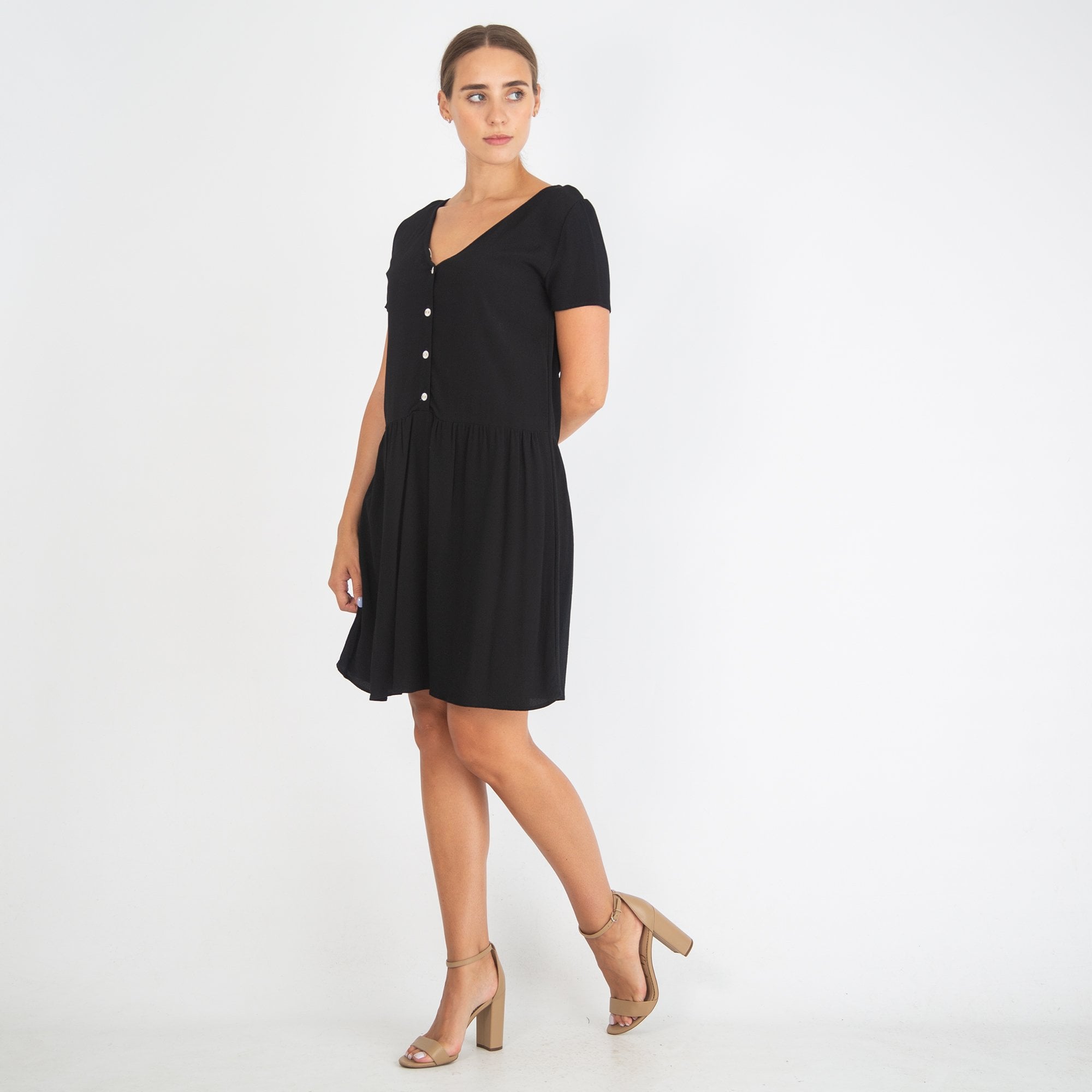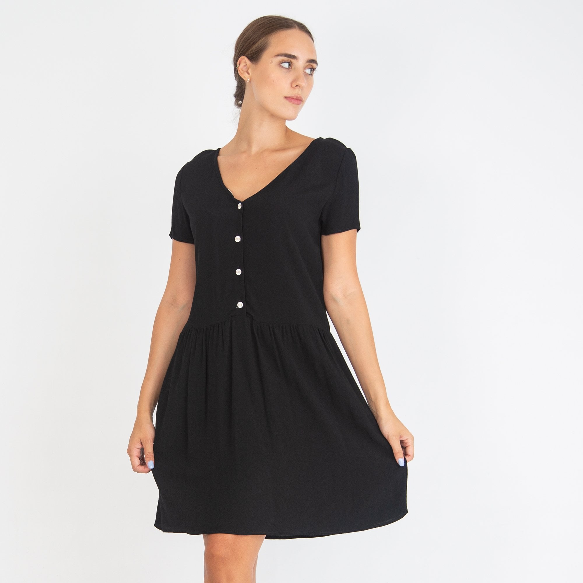 Des Petits Hauts Prudence V Back Viscose Dress Black