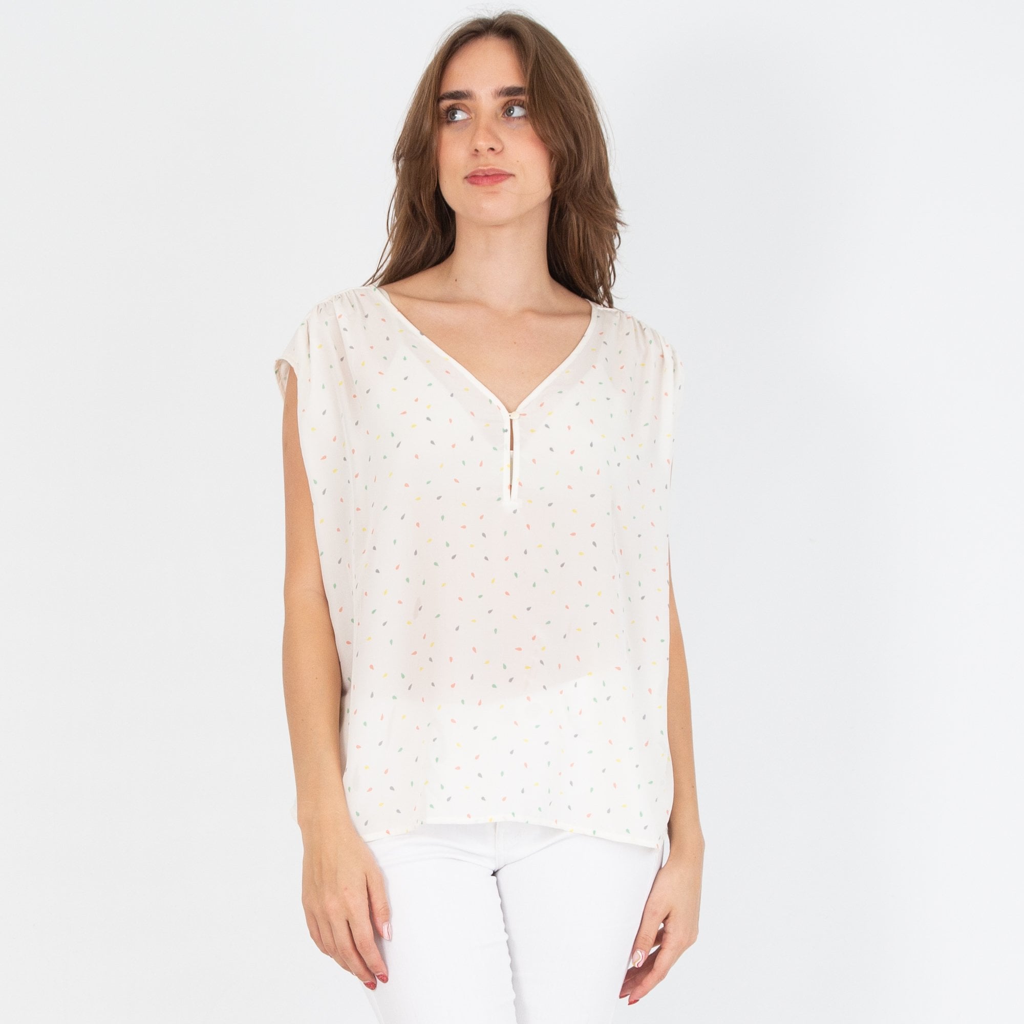 Des Petits Hauts Ondela Sleeveless Silk Print Blouse Cream