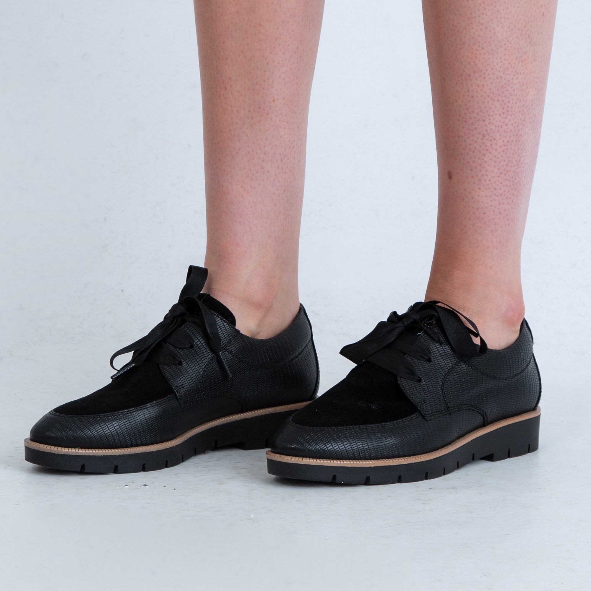 Dl Sport Leather & Suede Brogue With Lizard Print Black
