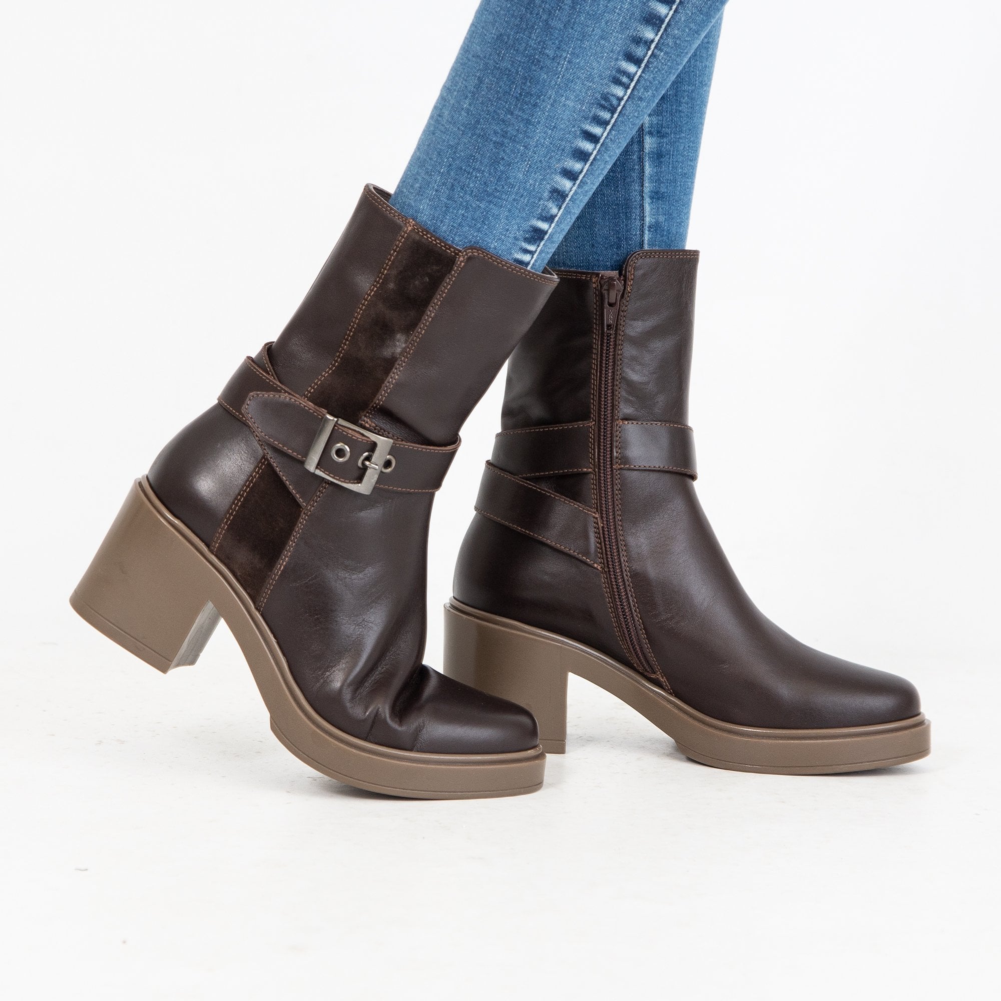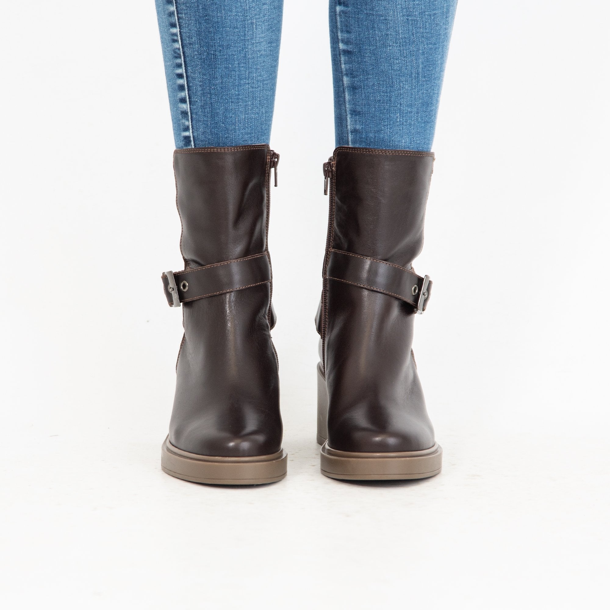 Dl Sport Smooth Leather Ankle Boot With Buckle Brown