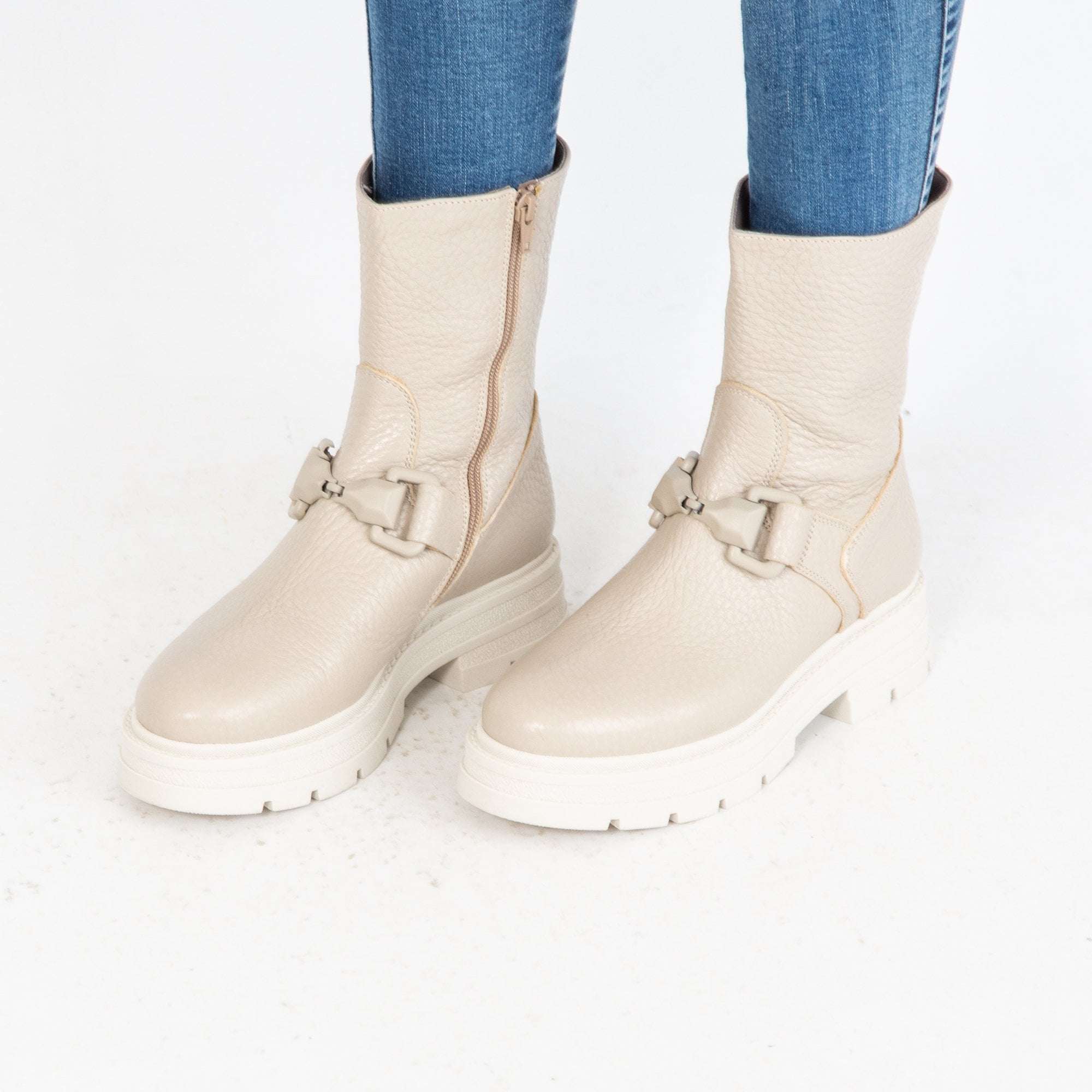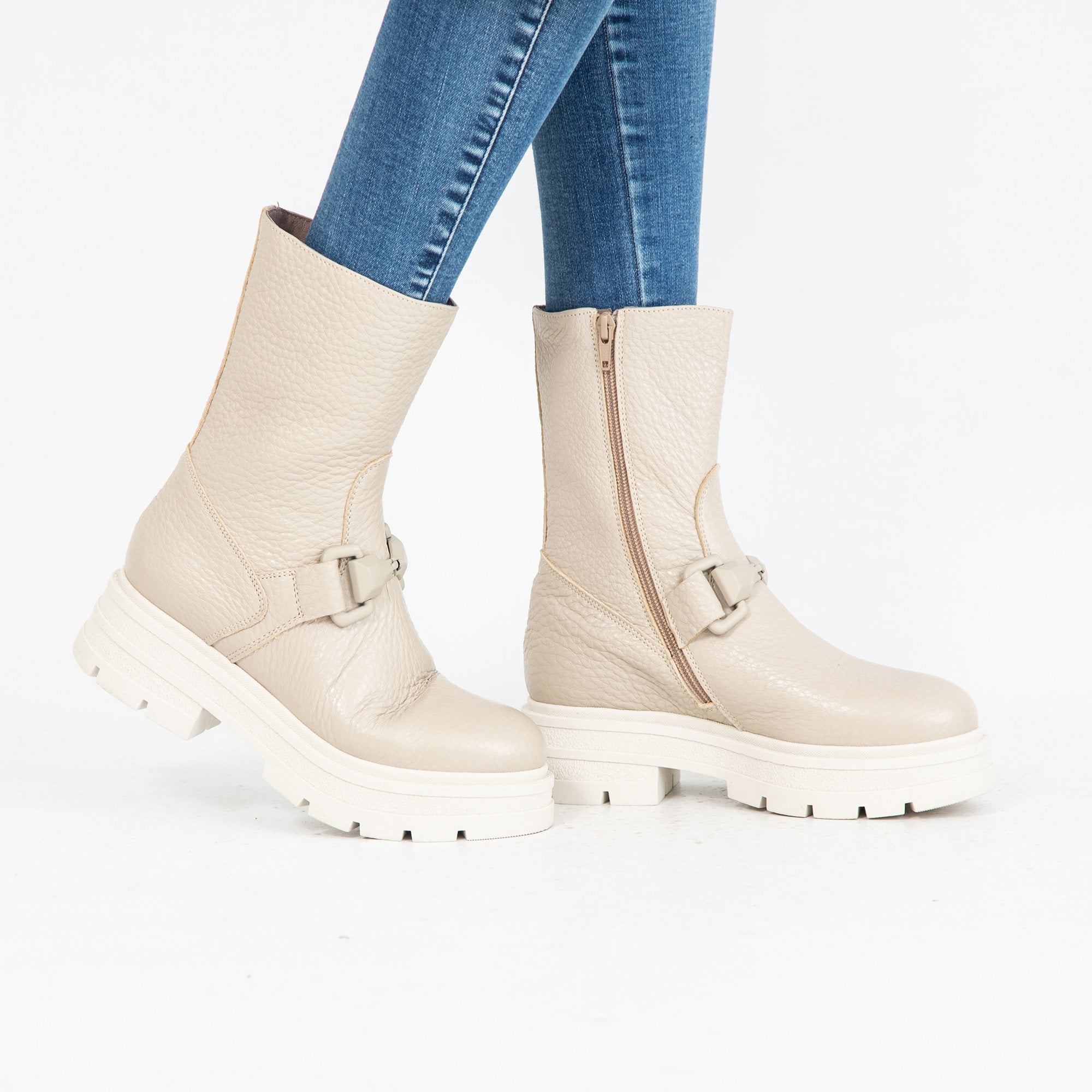 Dl Sport Maya Grained Leather Boot With Front Buckle Detail Stone