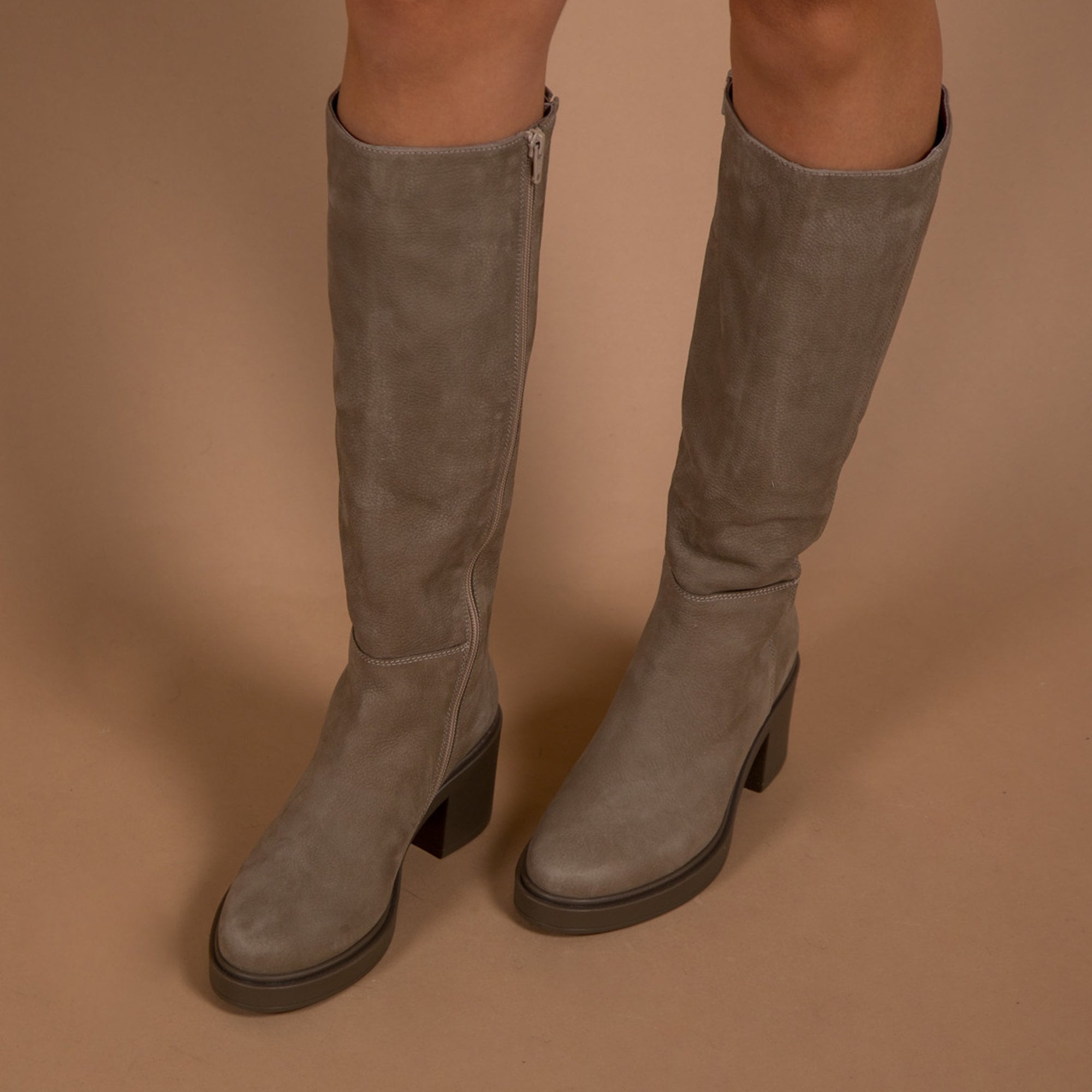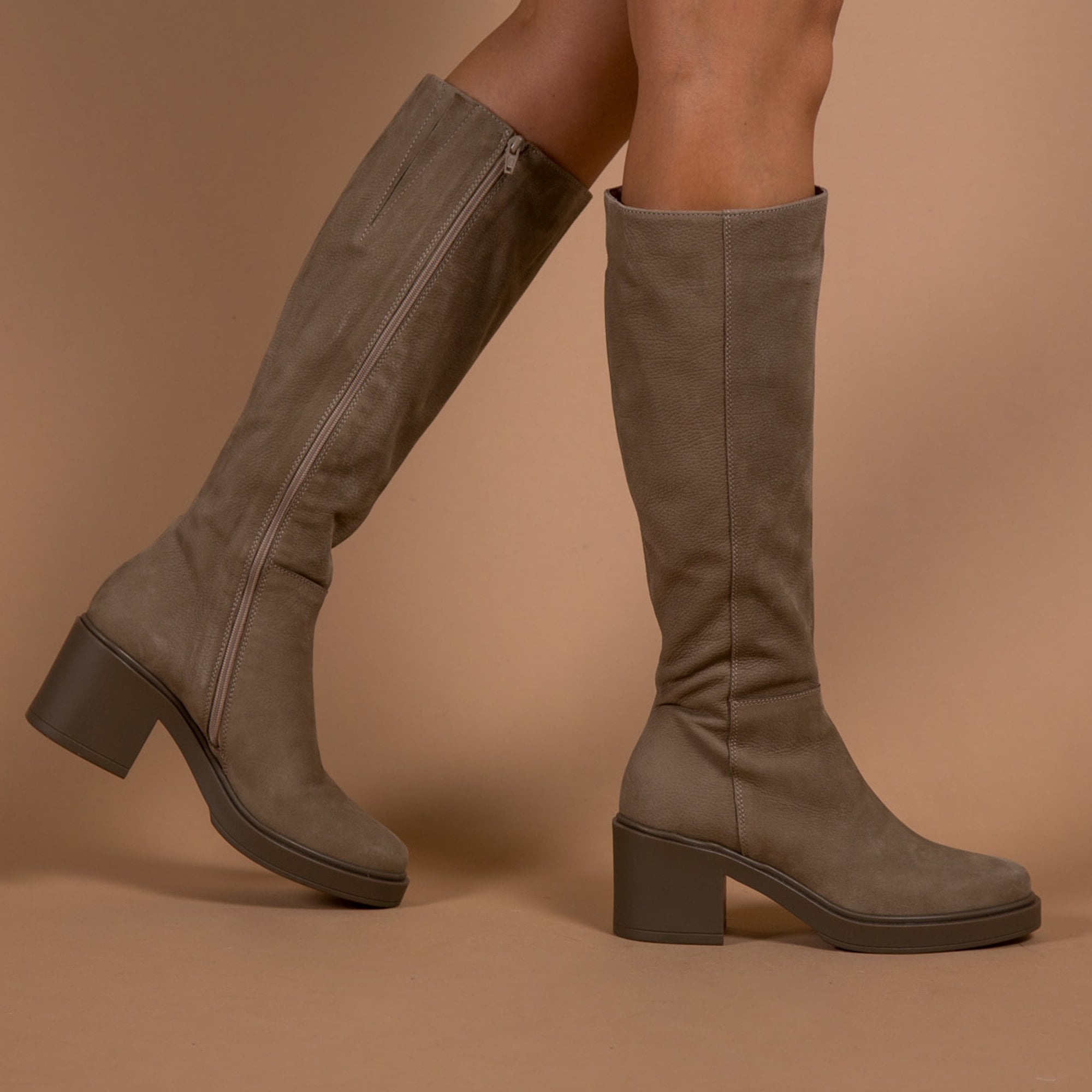 Dl Sport Nicole Nubuck Long Boots With Block Heel Taupe