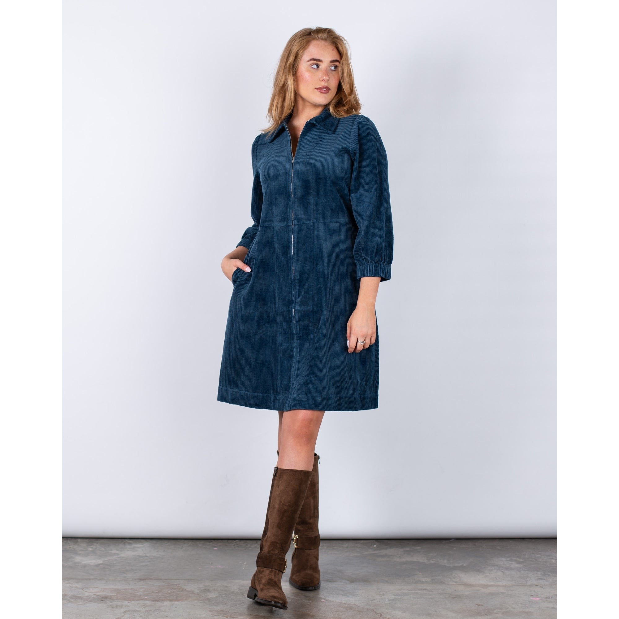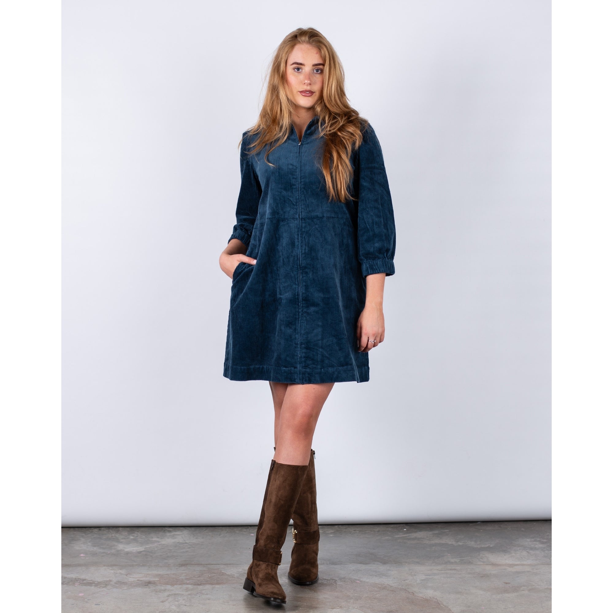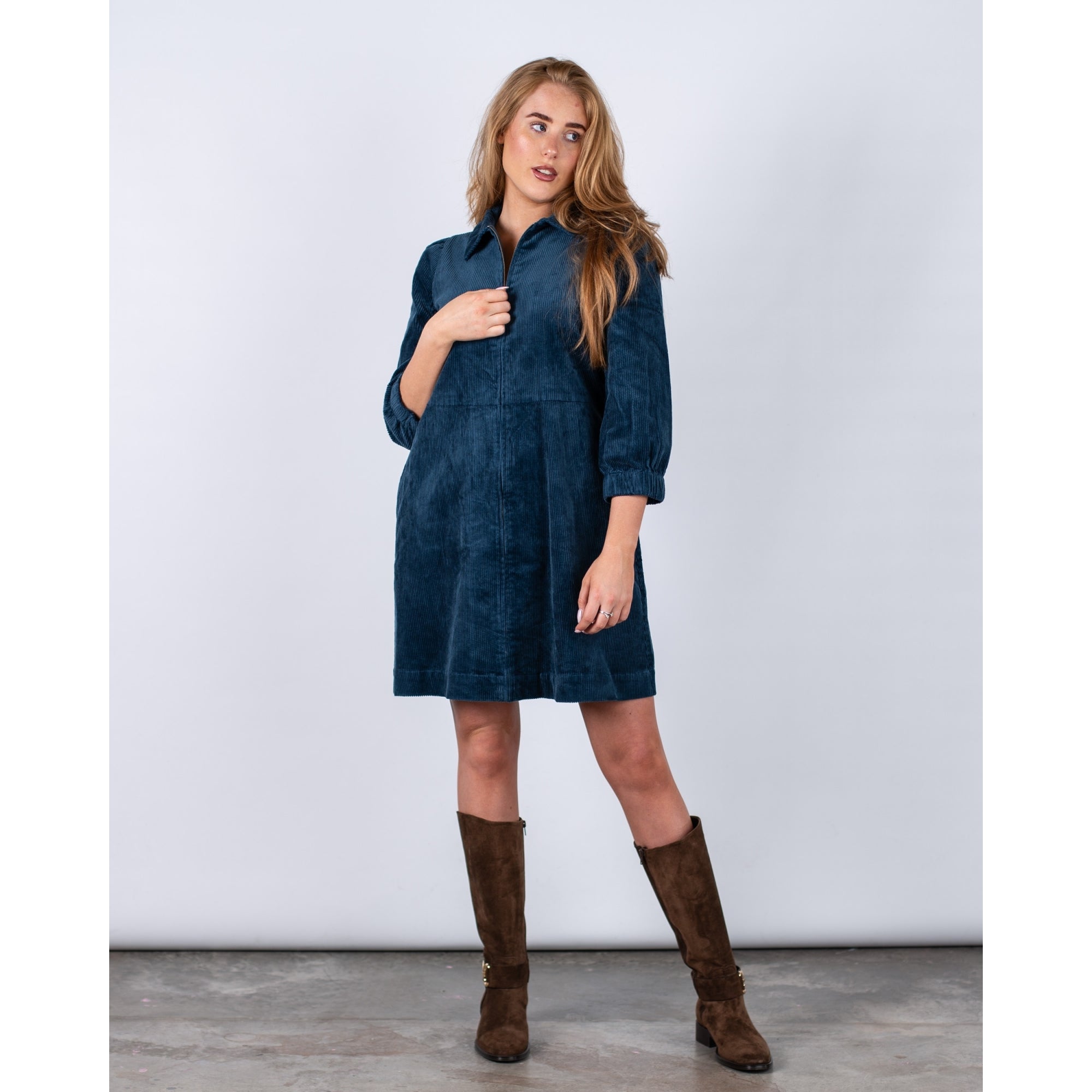 Part Two Eyvors Zip Down Long Sleeve Cord Shirt Dress (Longer) Ink
