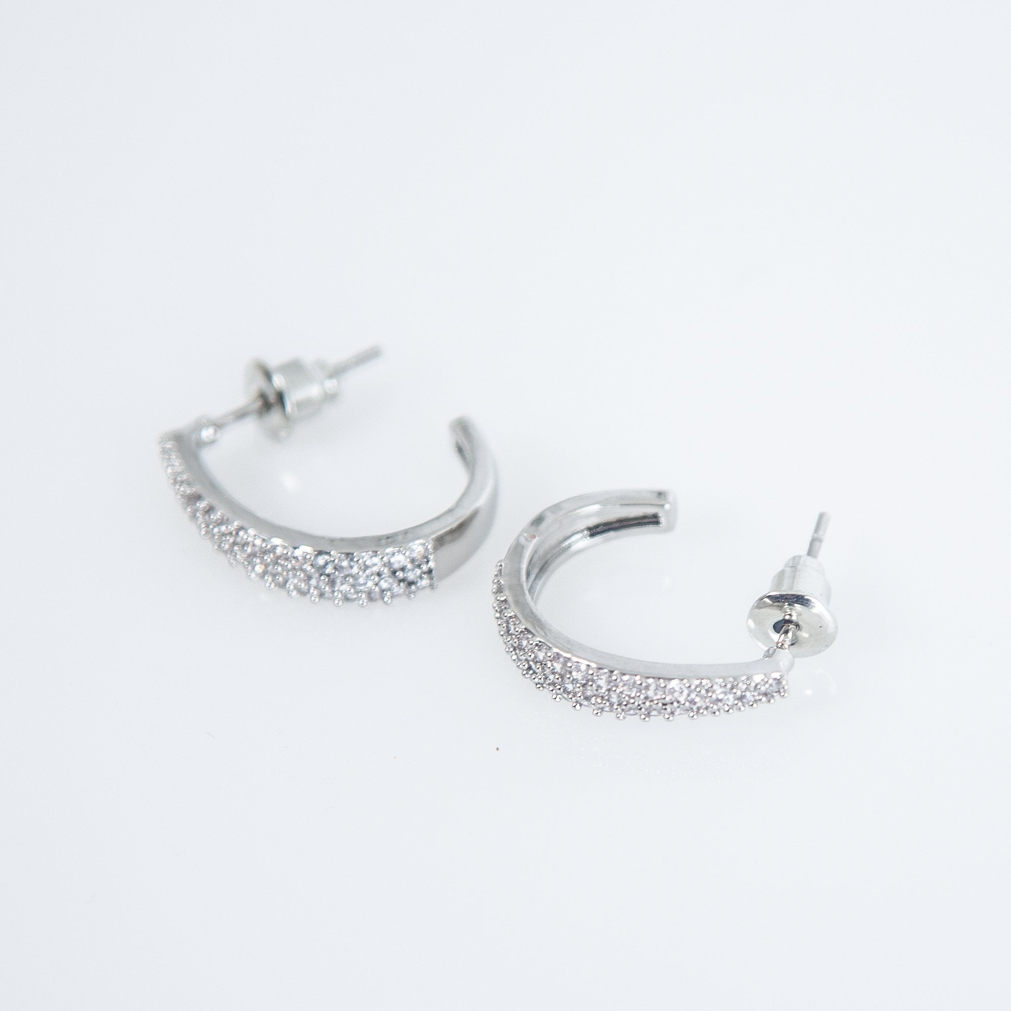 D&x London J Shape Diamonte Earrings Silver