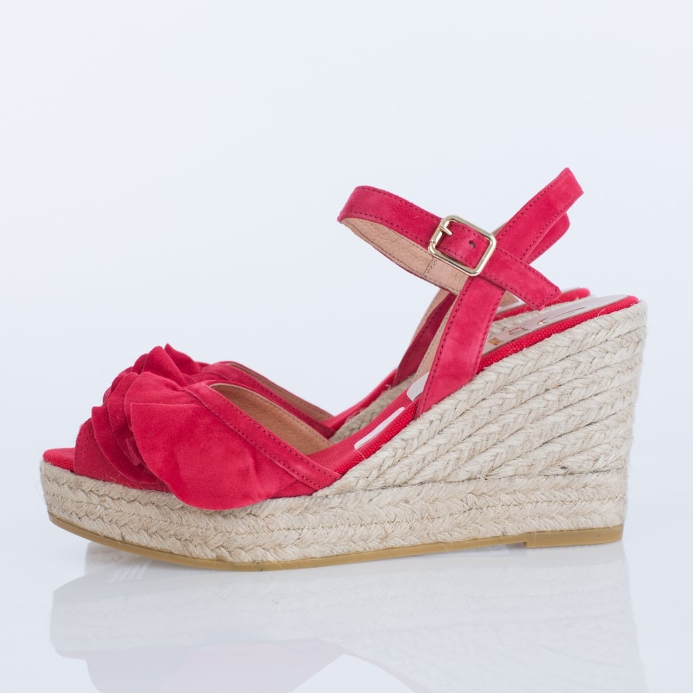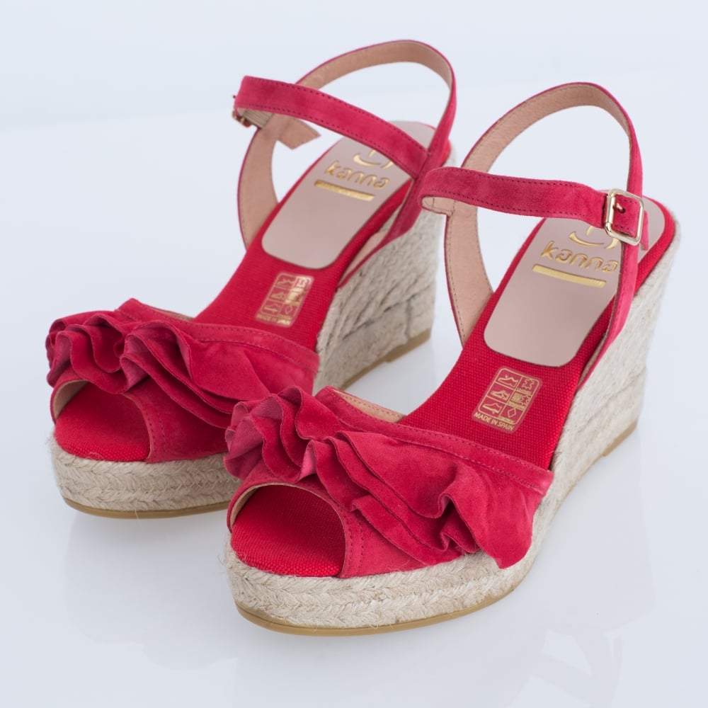 Kanna Vienna Suede Frill High Wedge With Ankle Strap In Red