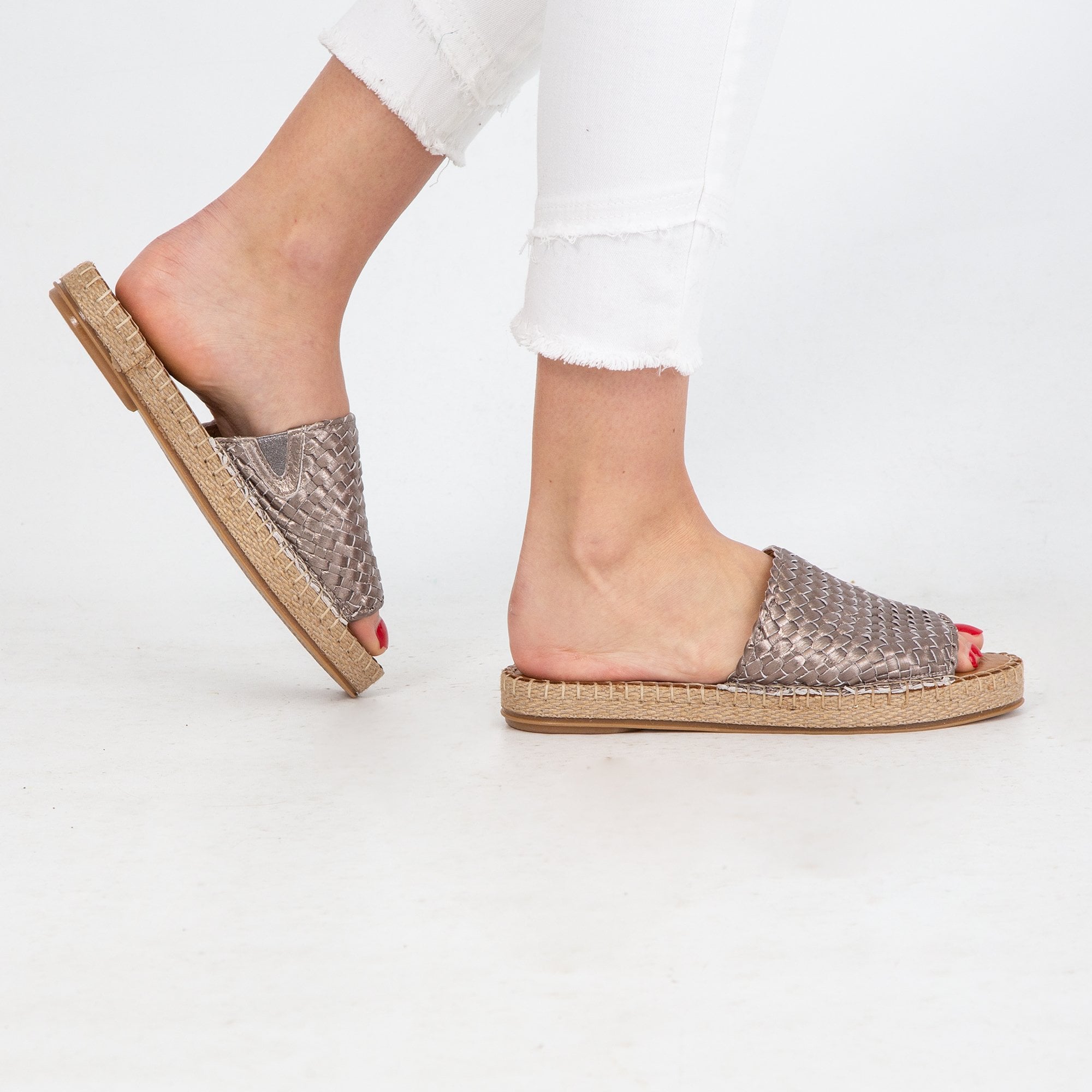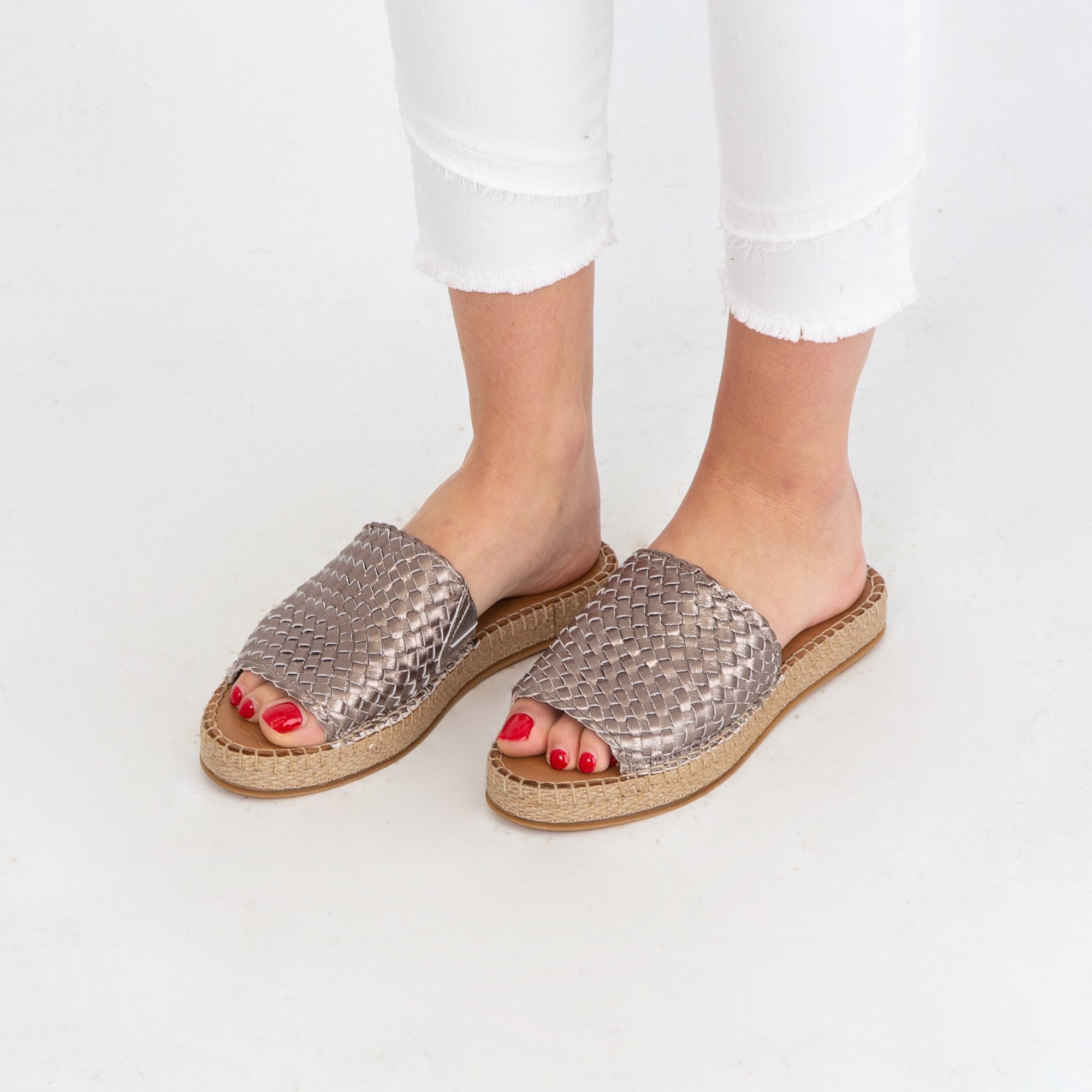 Carmela Metallic Woven Flat Form Espadrille Pewter