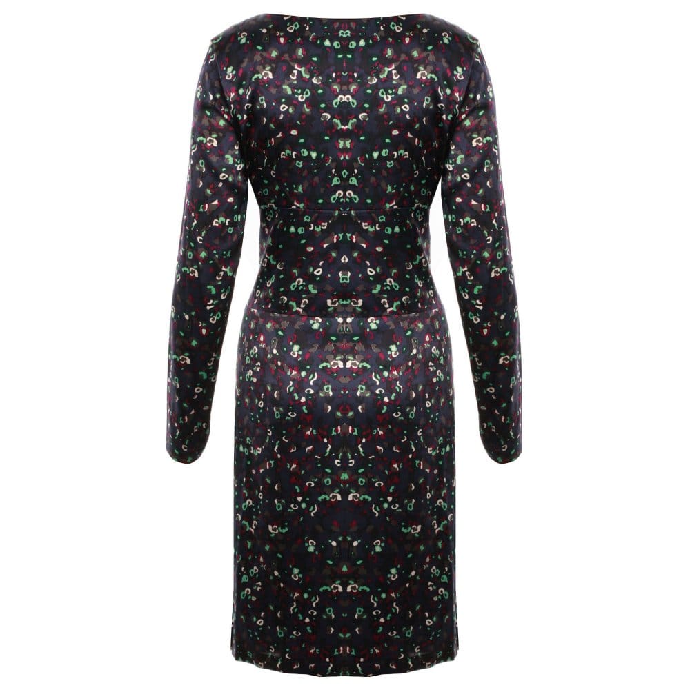 Oui Knot Front Silk Print Dress In Navy And Green (NO STOCK)