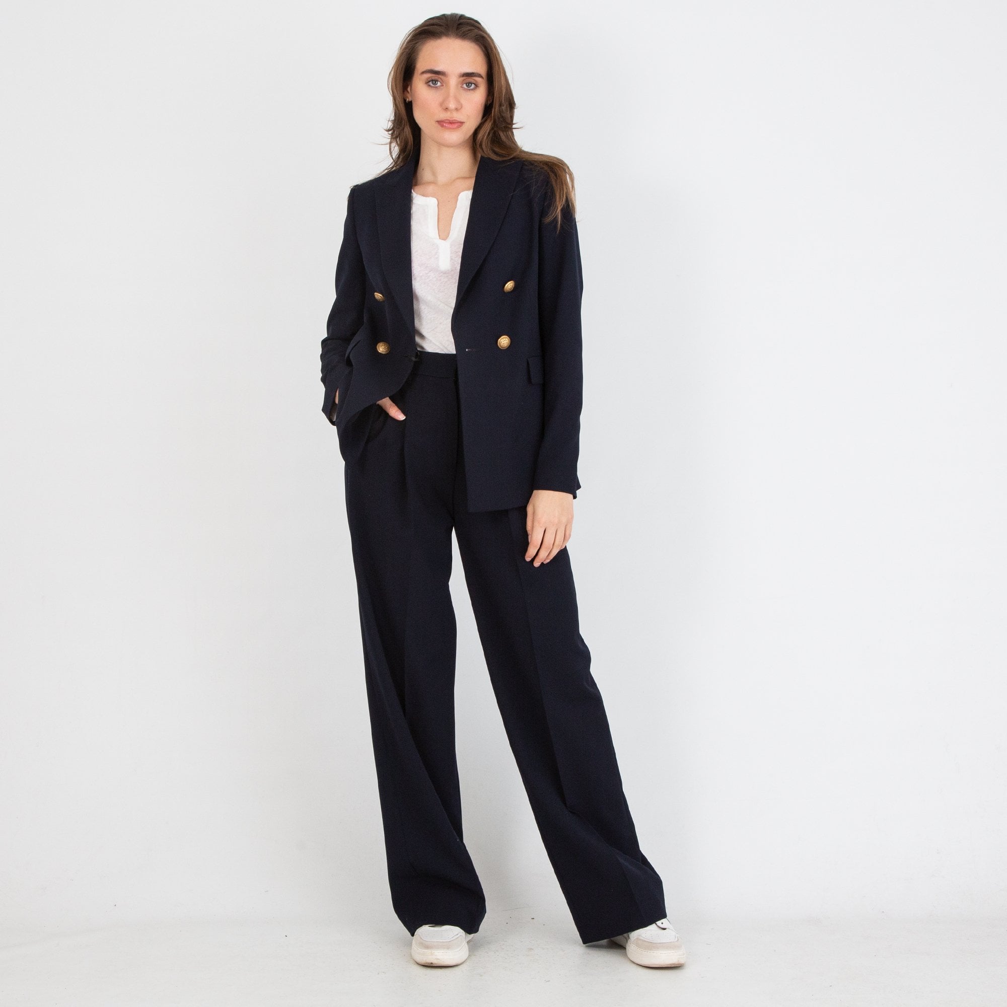 Luisa Cerano Smart Wide Leg Trouser With Crease Navy