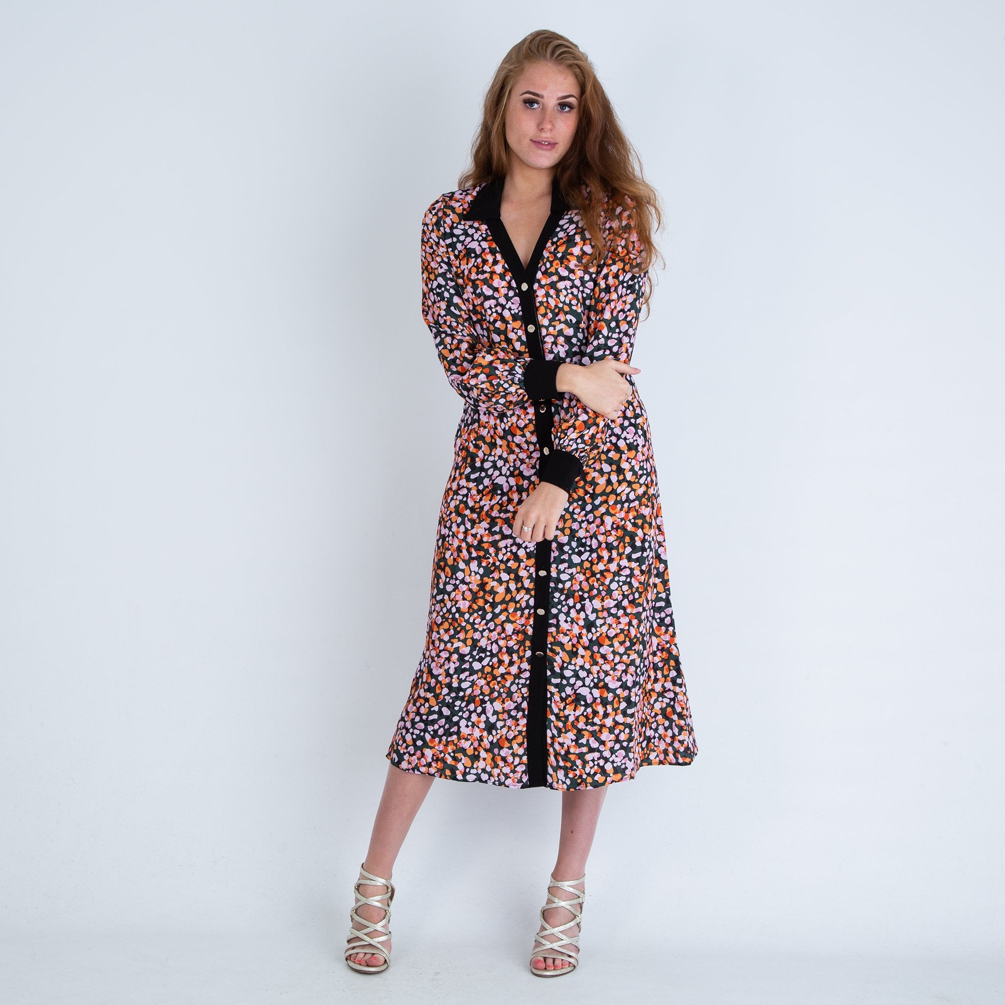 Fresha London Mercedes V Neck Button Down Leopard Print Dress Pink/black