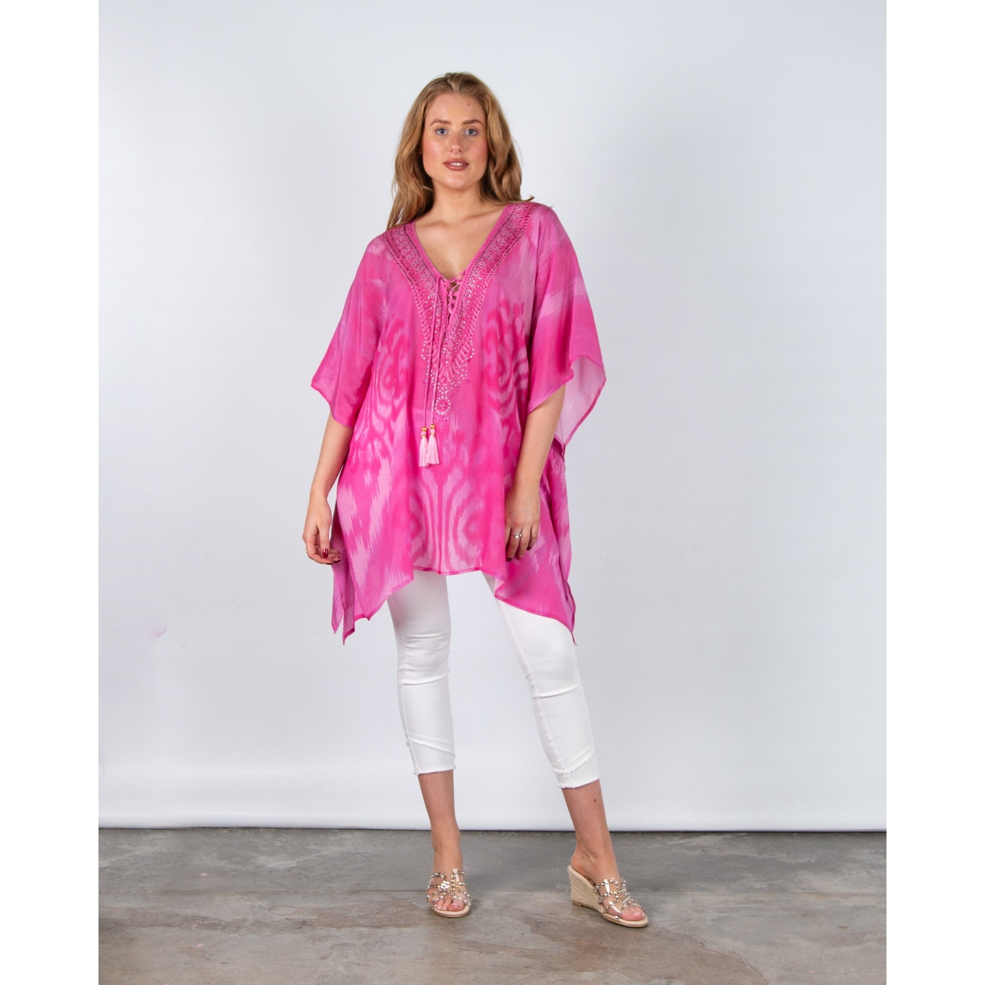 Guilty Beach Tie V Neck Jewelled Tunic Kaftan Pink