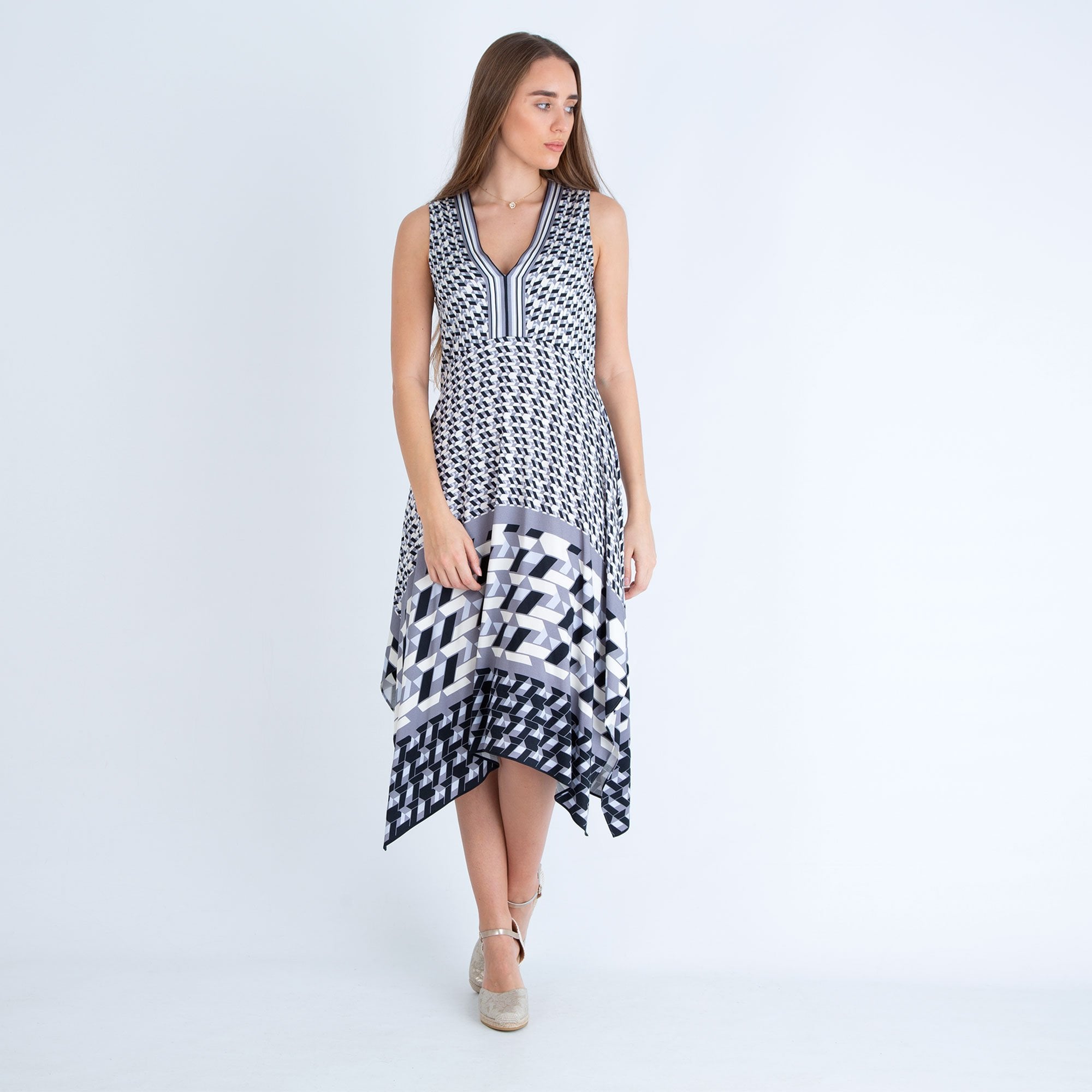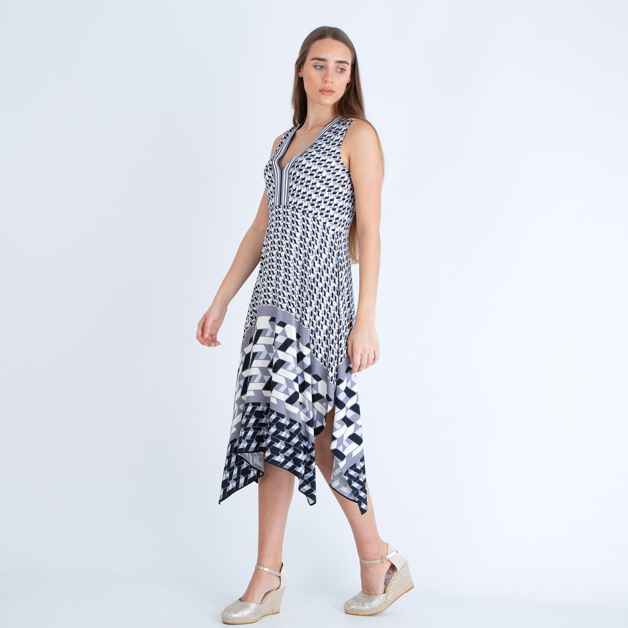 Hale Bob Geometric Print Dress With Hankerchief Hem Black/White