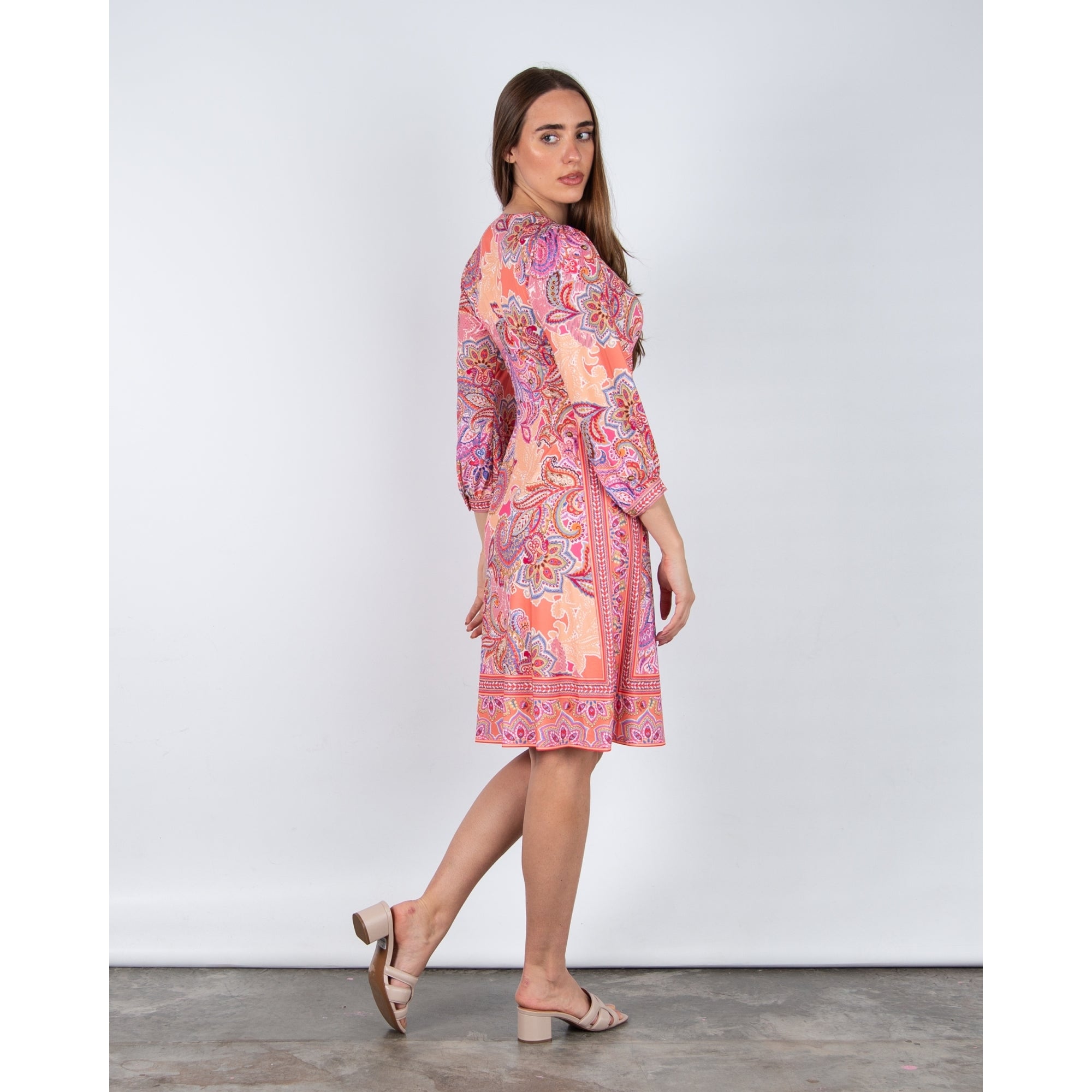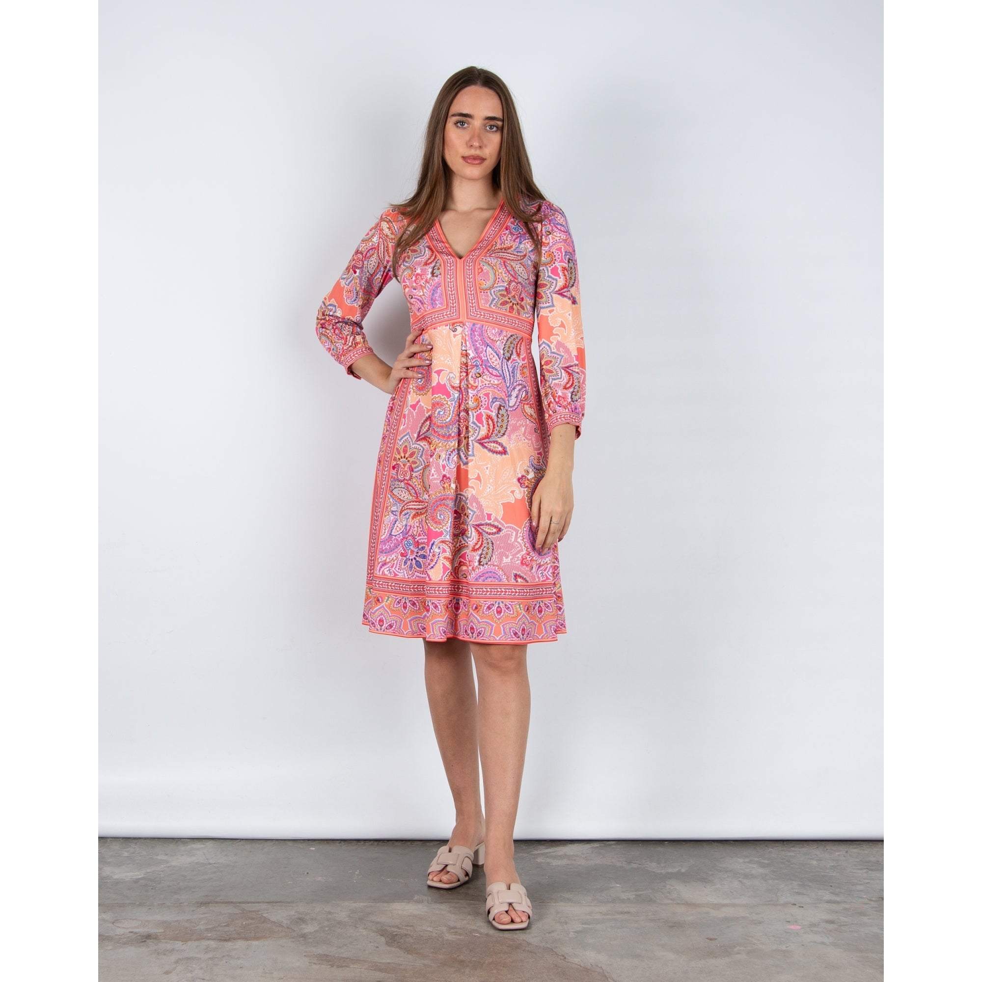 Hale Bob Paisley Print Fit And Flare Jersey Dress Coral/pink