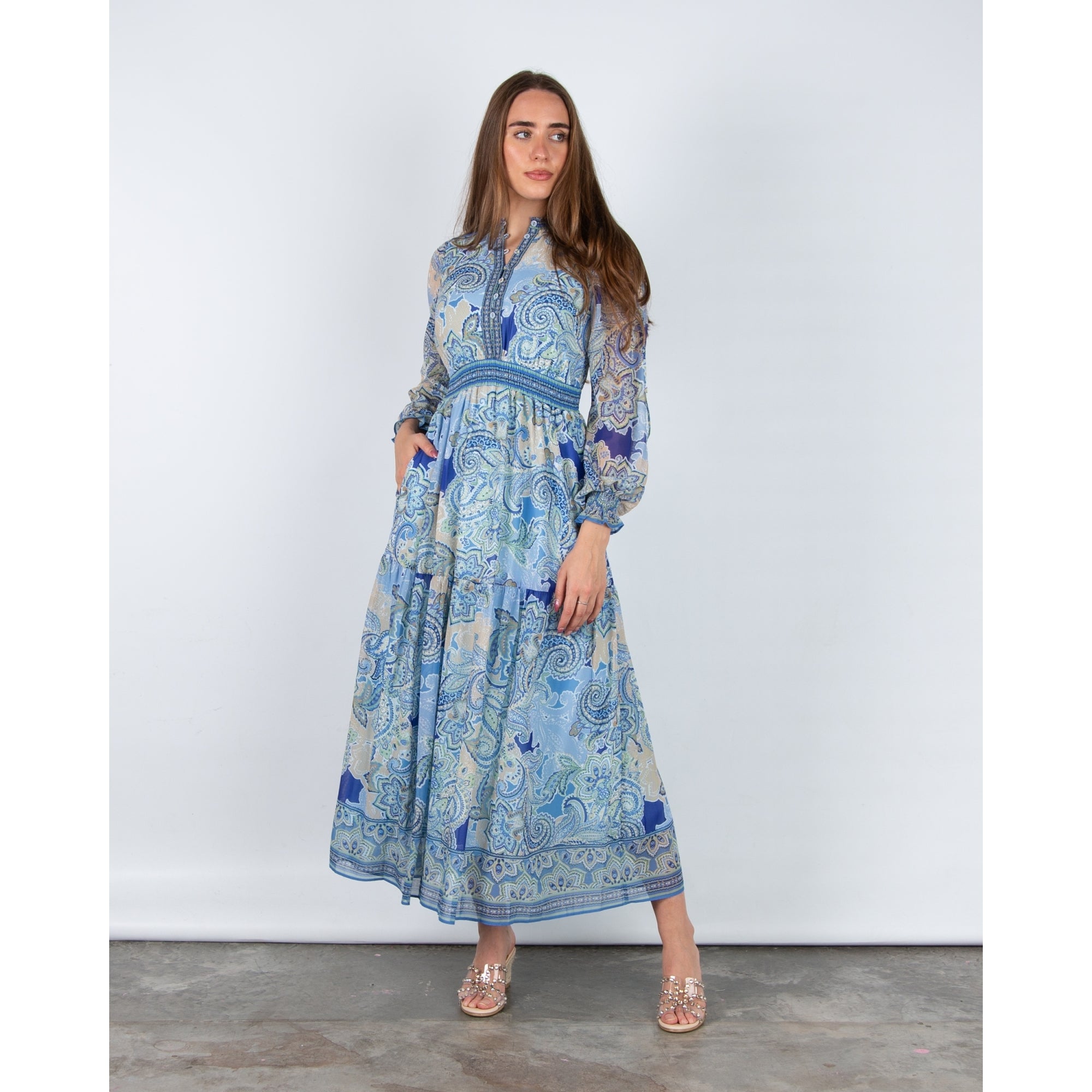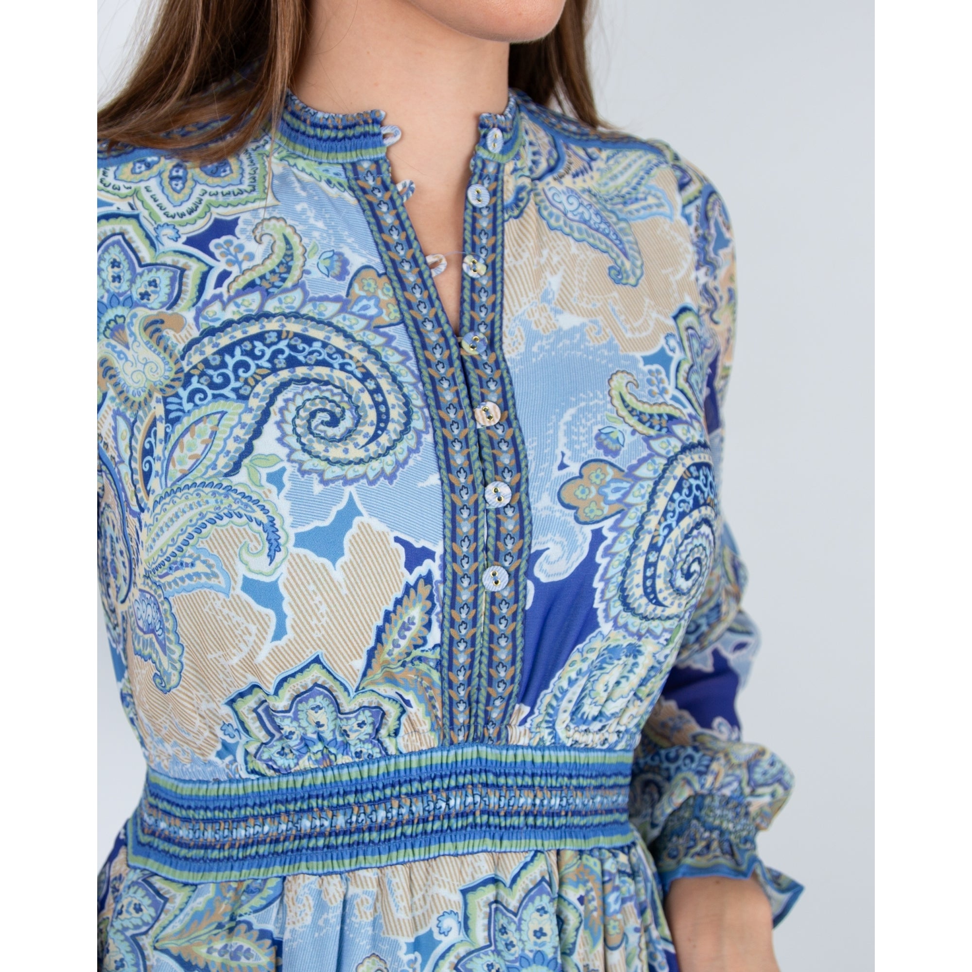 Hale Bob Paisley Button Front Dress With Elastic Waist Blue