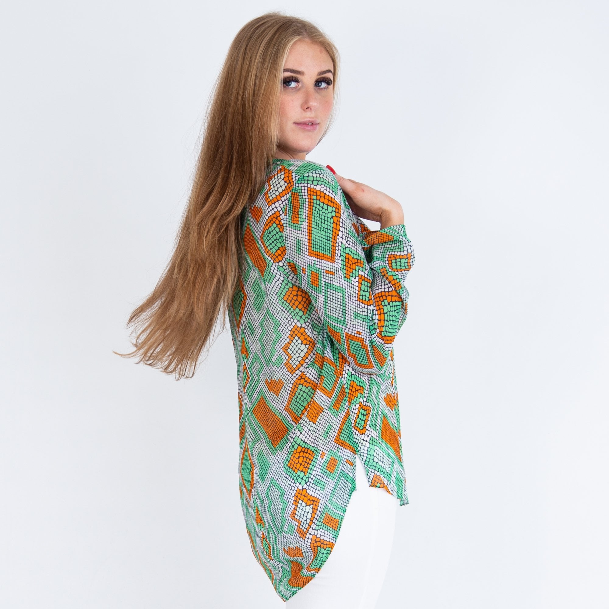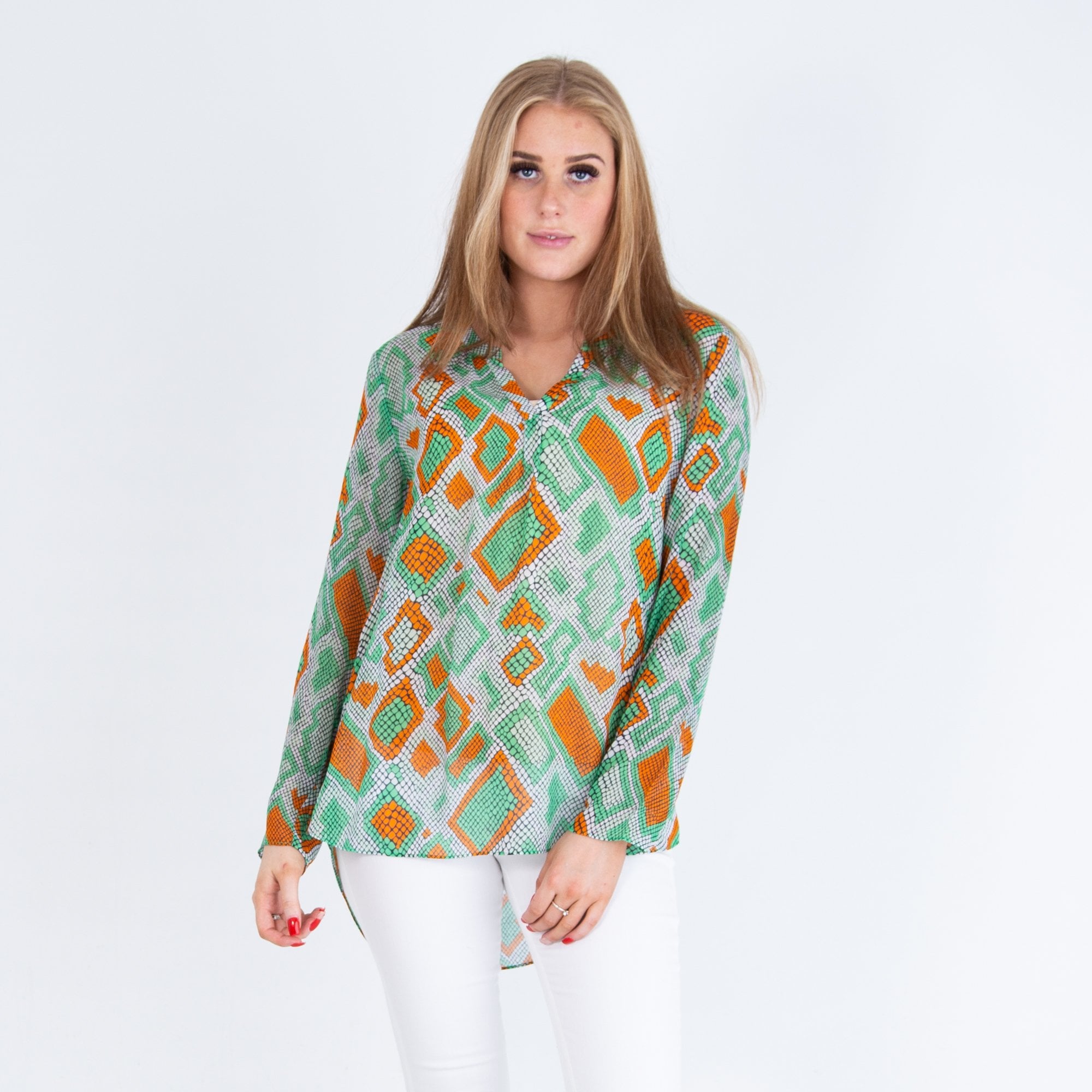 Herzens Angelegenheit Split Neck Snake Print Blouse Orange/green