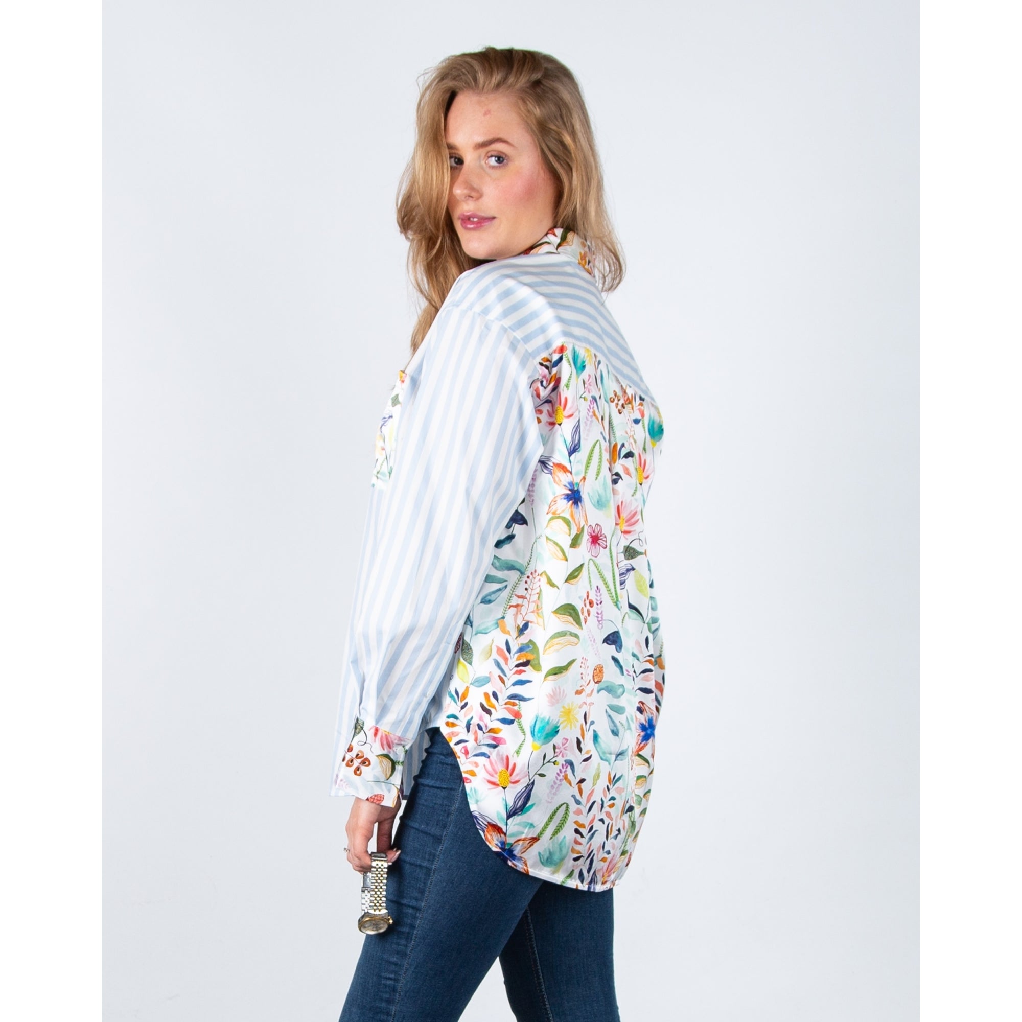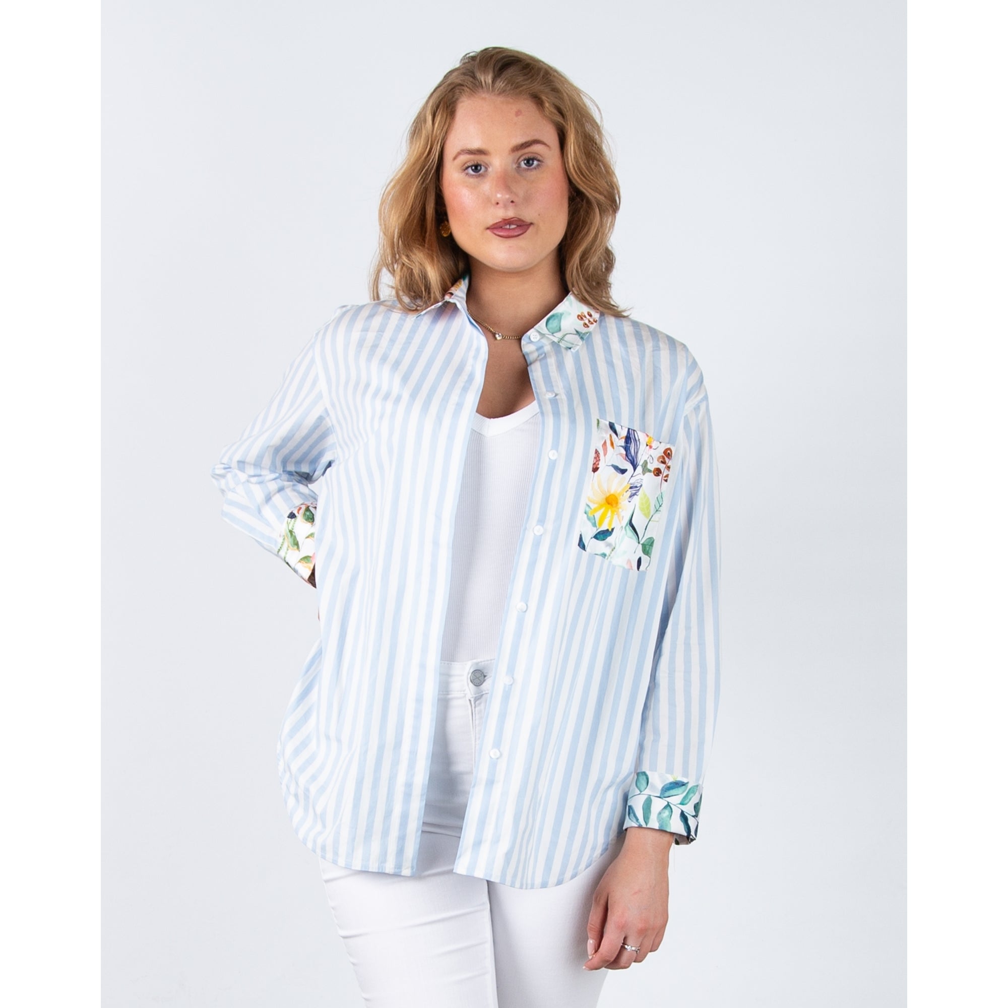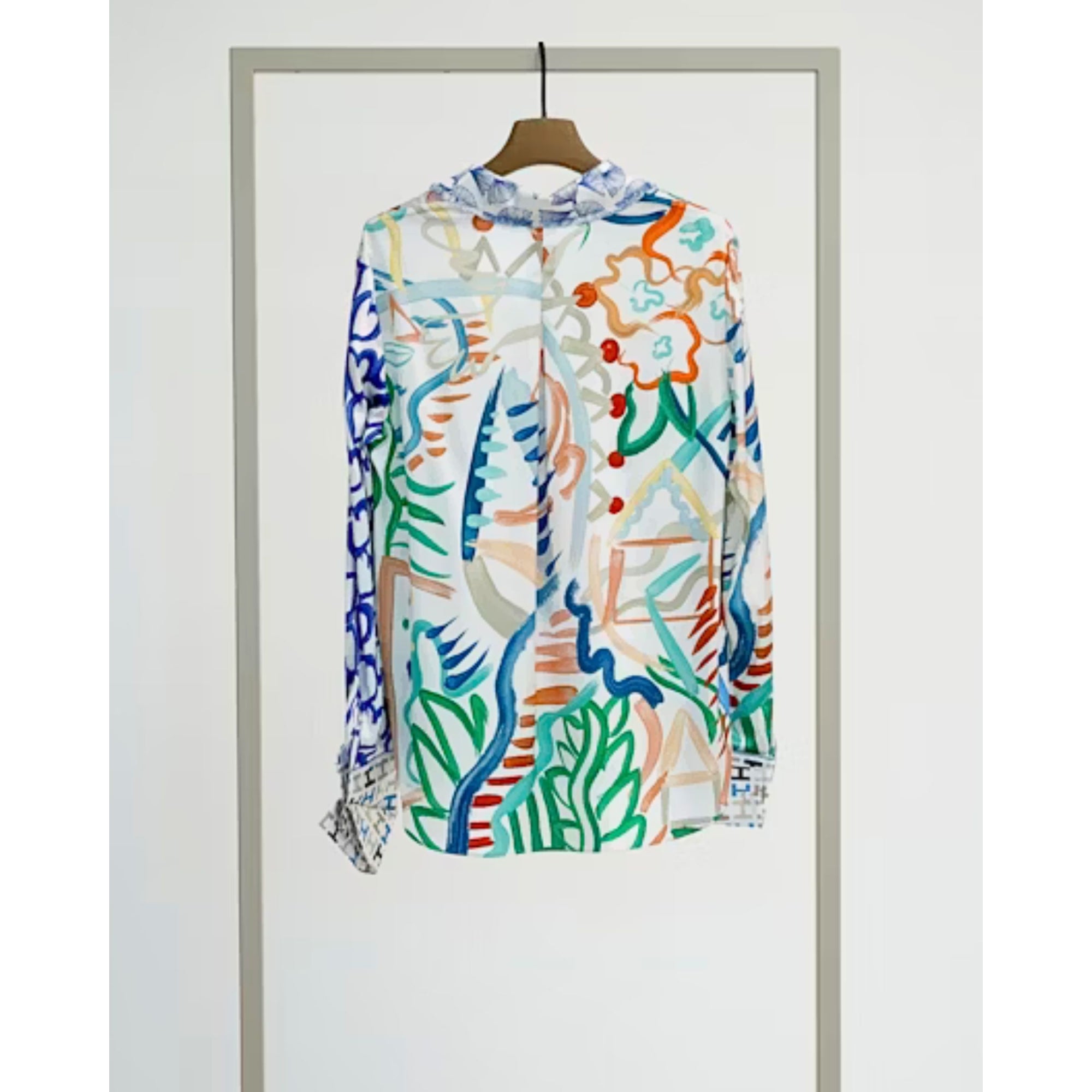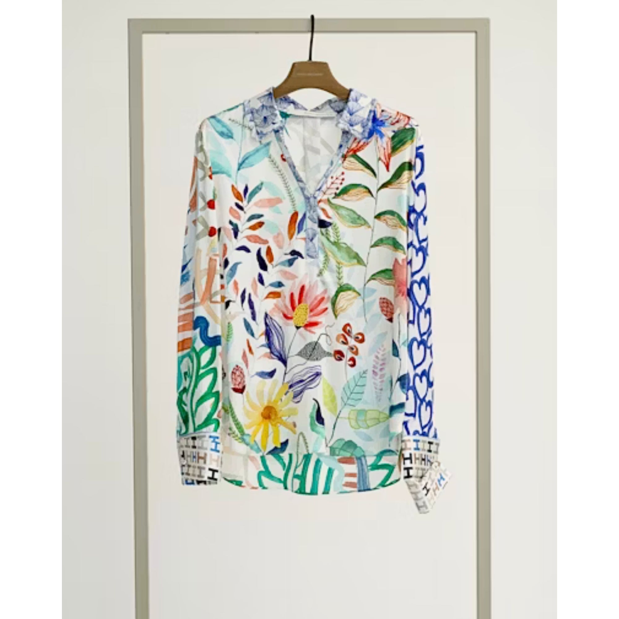 Herzens Angelegenheit Blown Shell Print Collarless Silk Blouse Navy/white