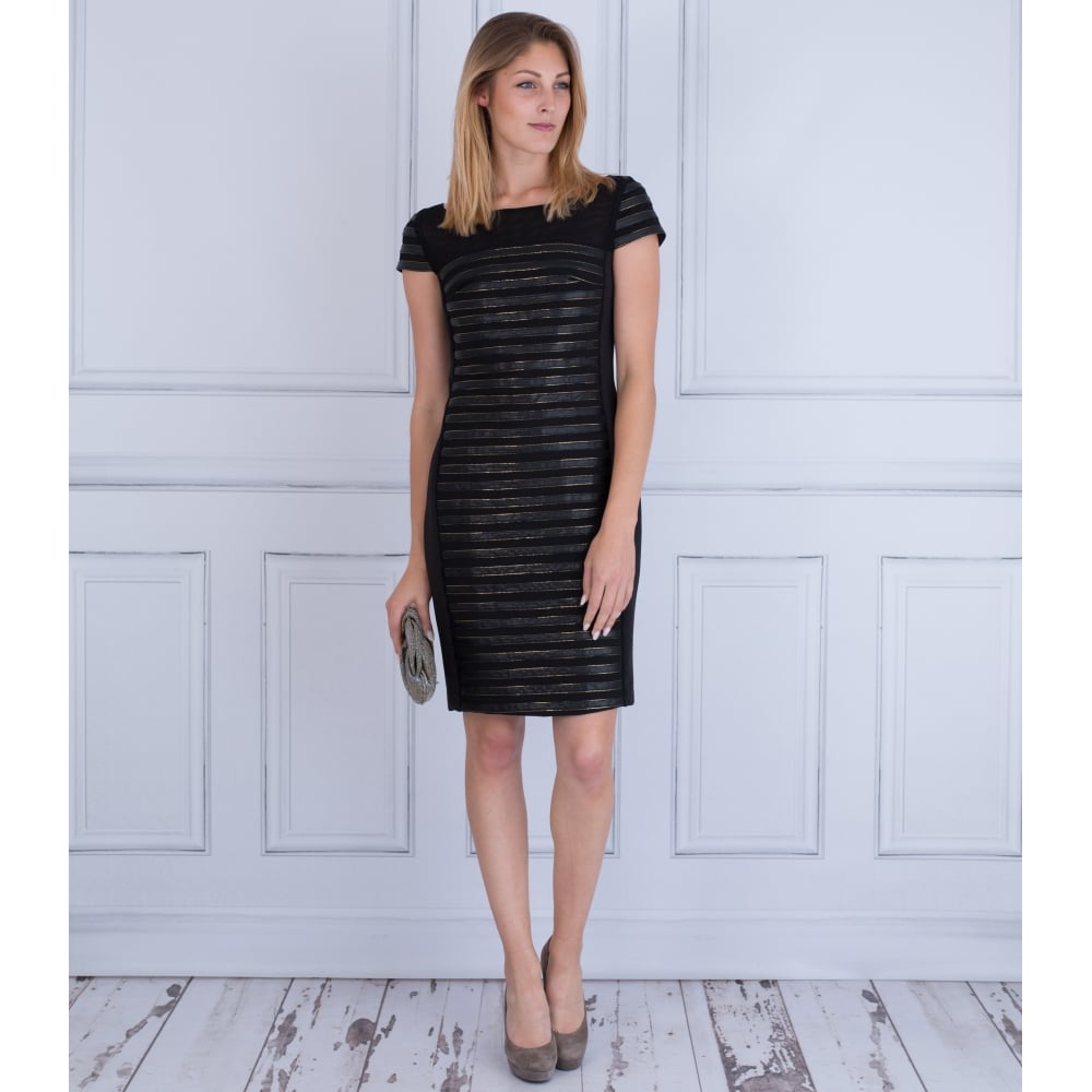 Javier Simorra Faux Leather Stripe Dress Black/Gold