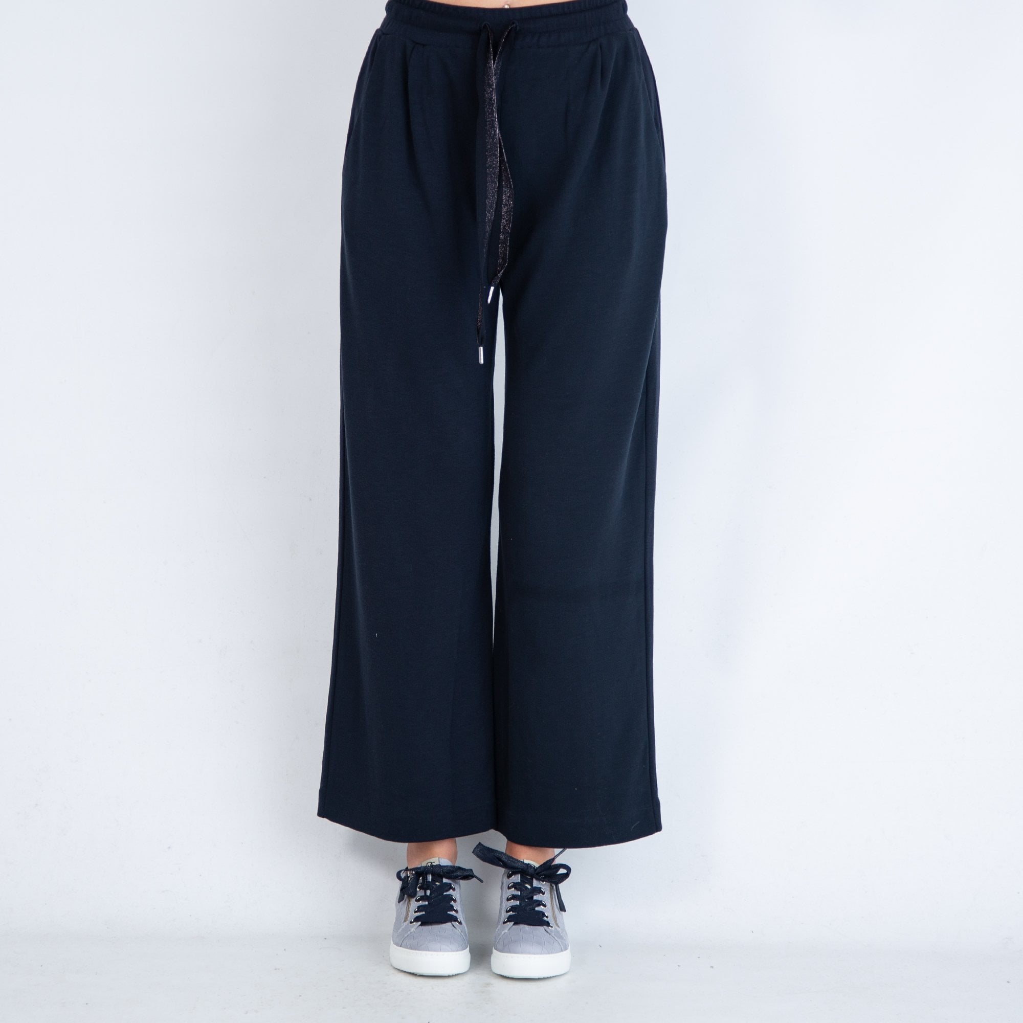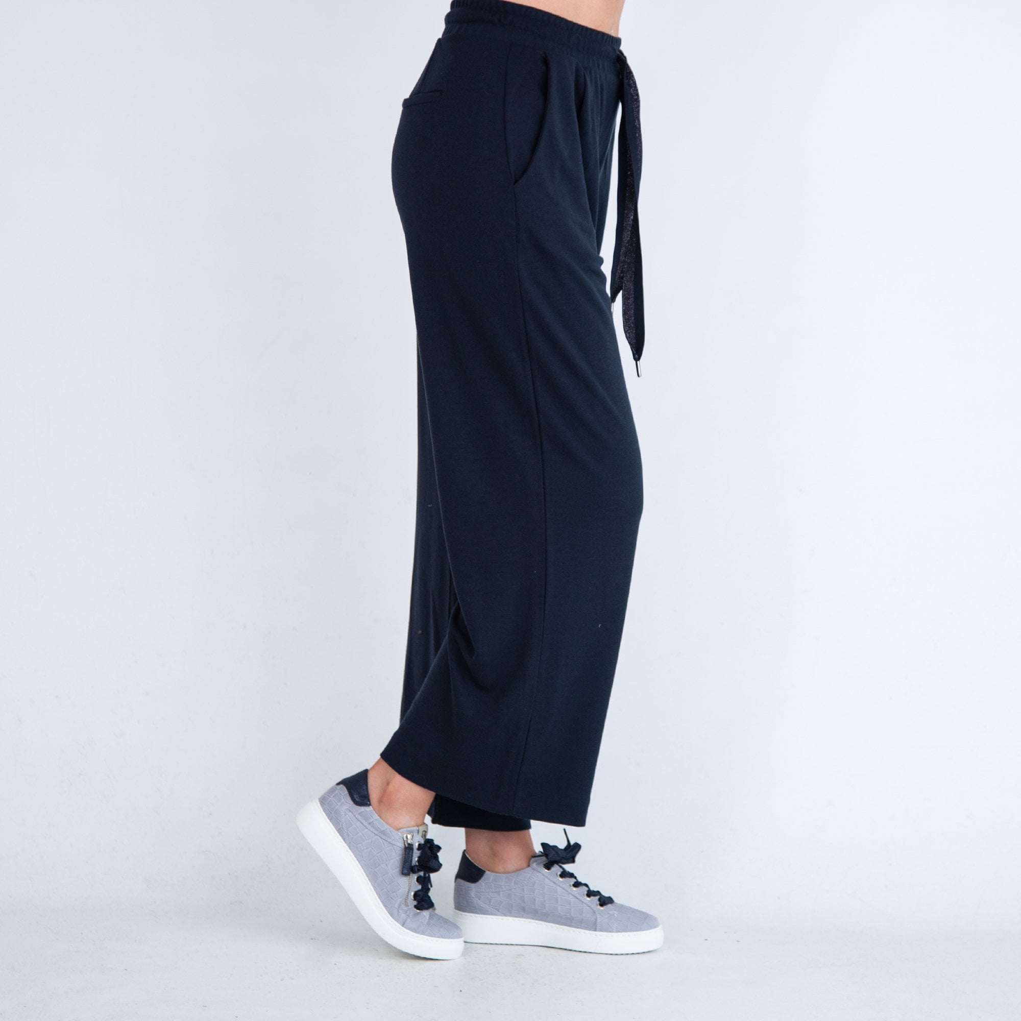 Milano Italy Wide Leg Jersey Pant With Glitter Drawstring Navy