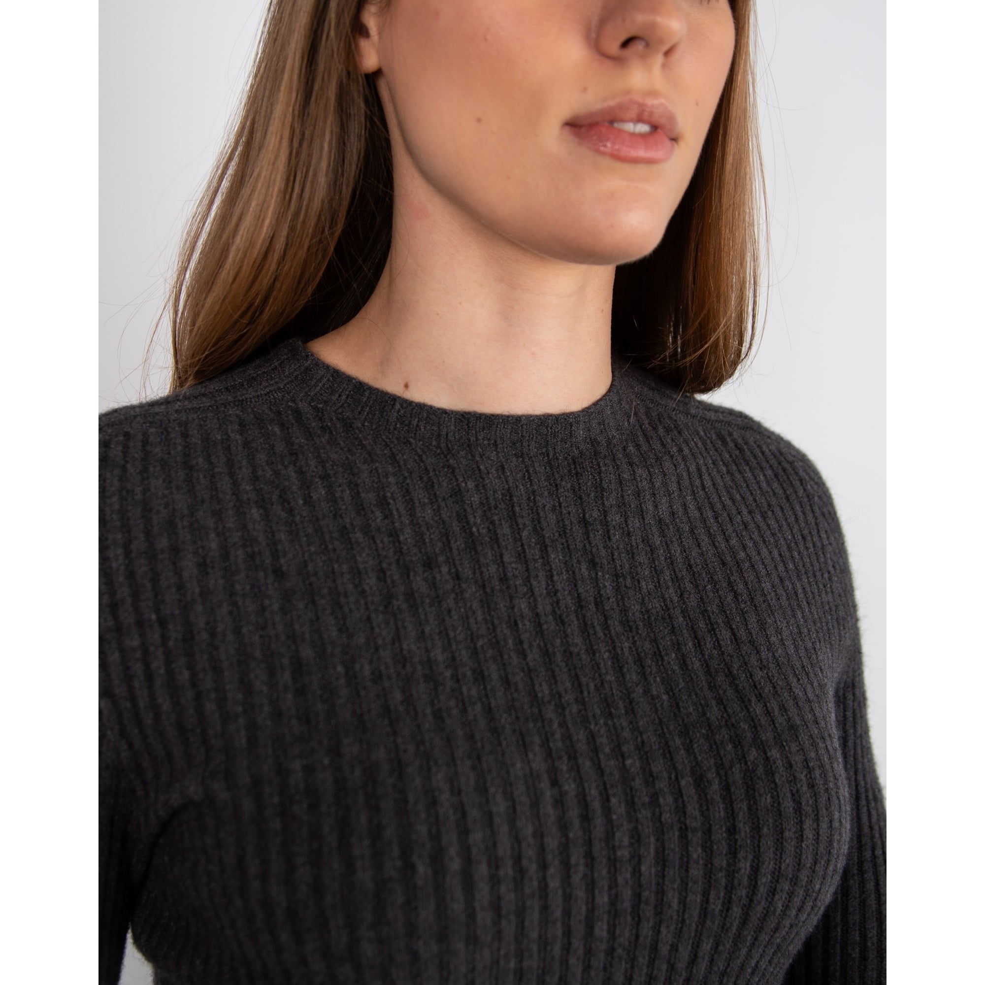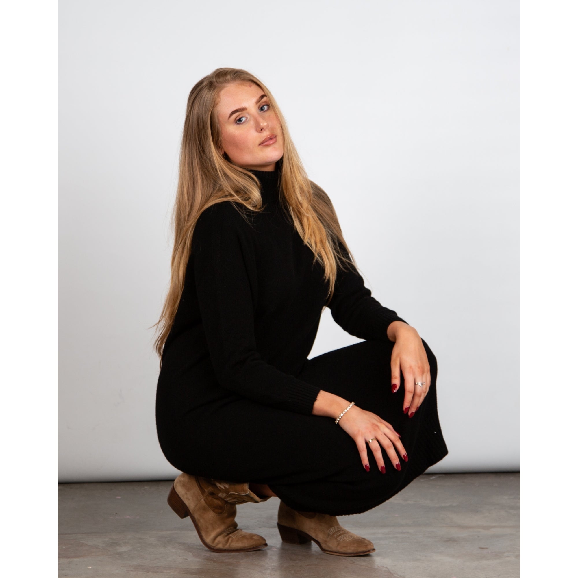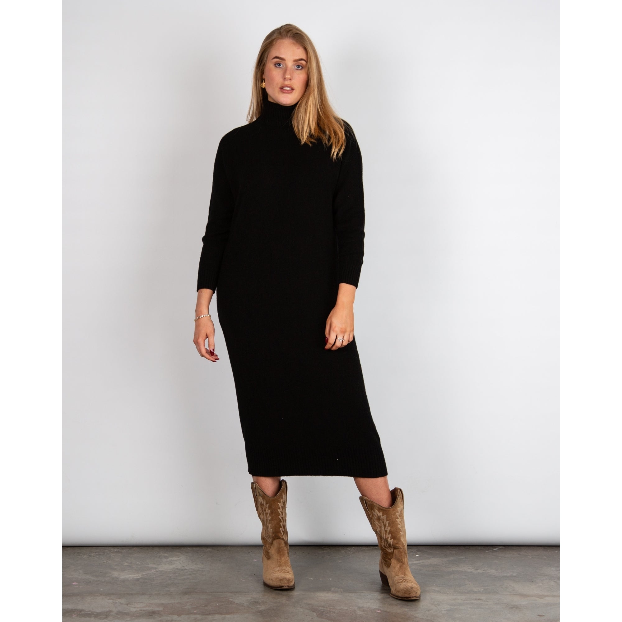 Repeat Cashmere Leather Trim Knitted Jumper Dress Top Black