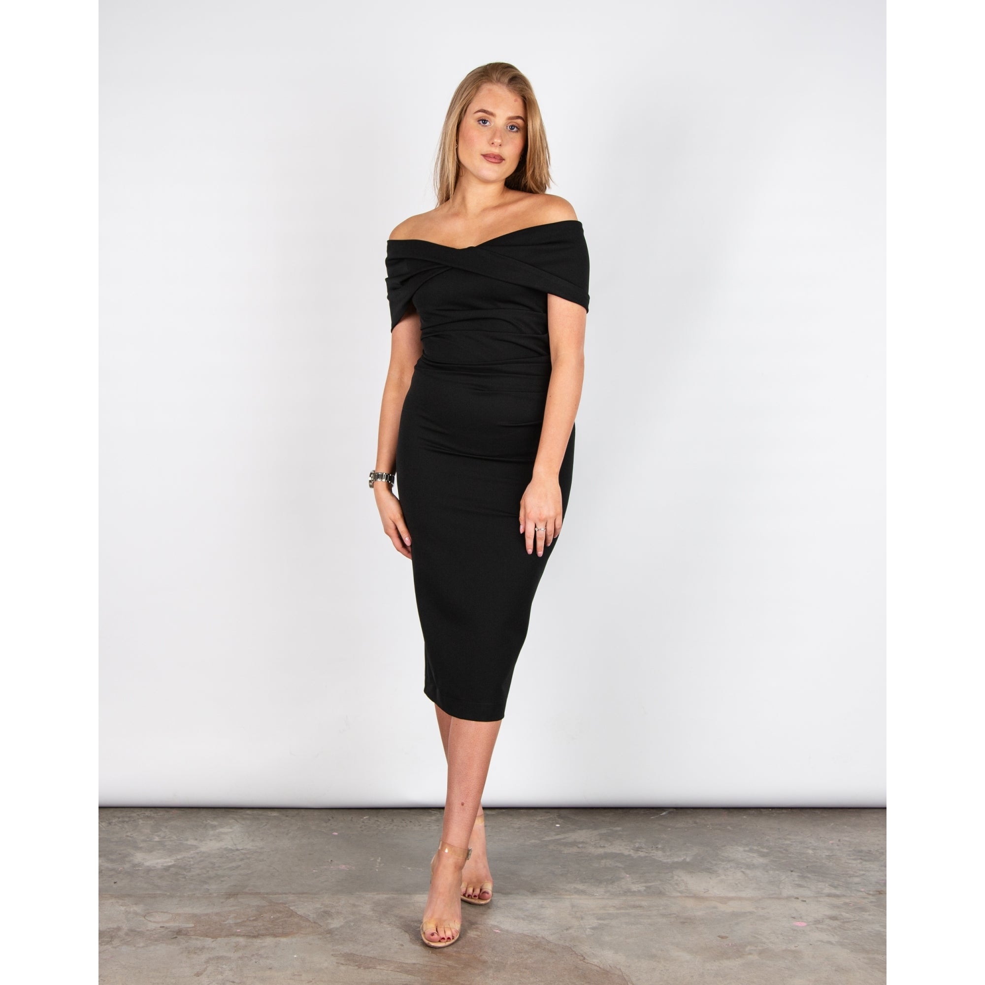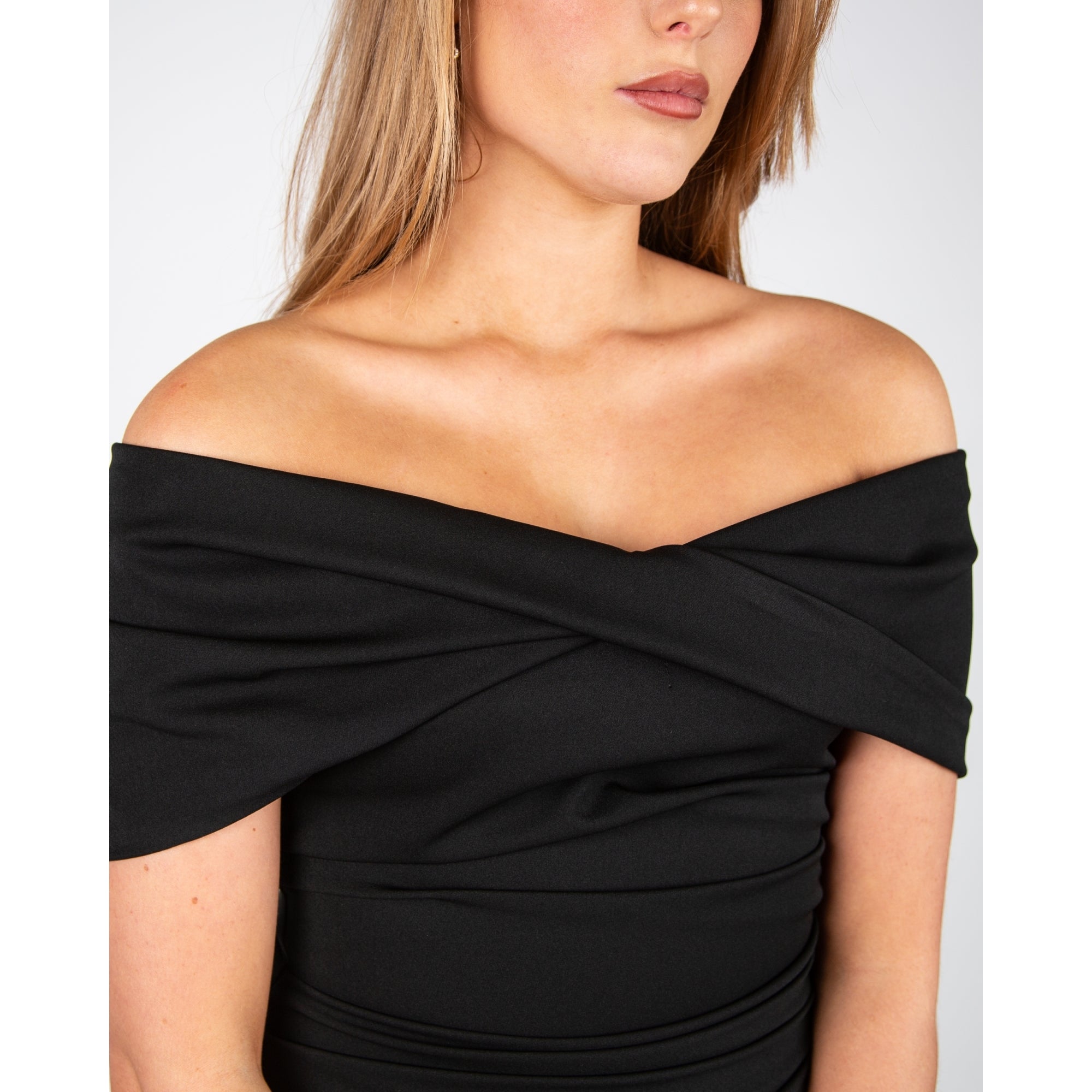 Kevan Jon Kacey Bardot Twist Front Fitted Scuba Dress Black