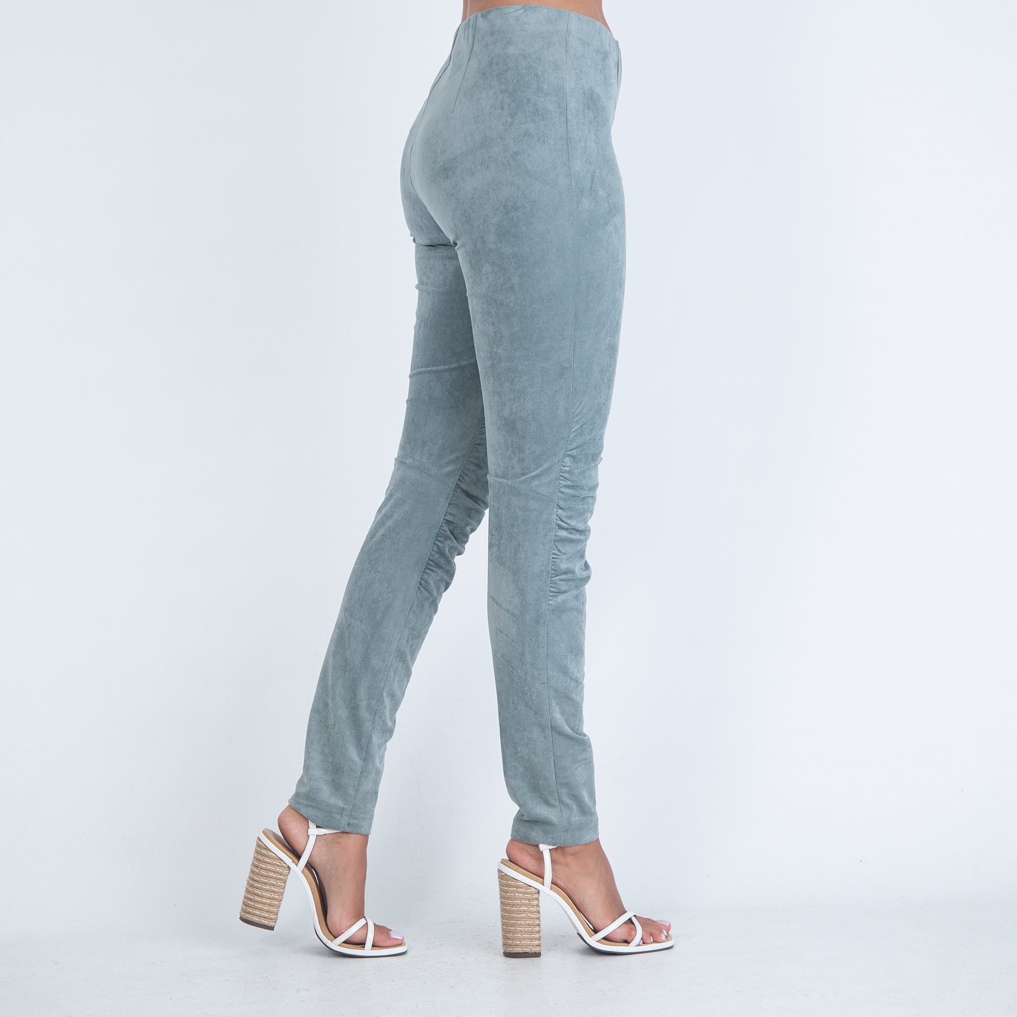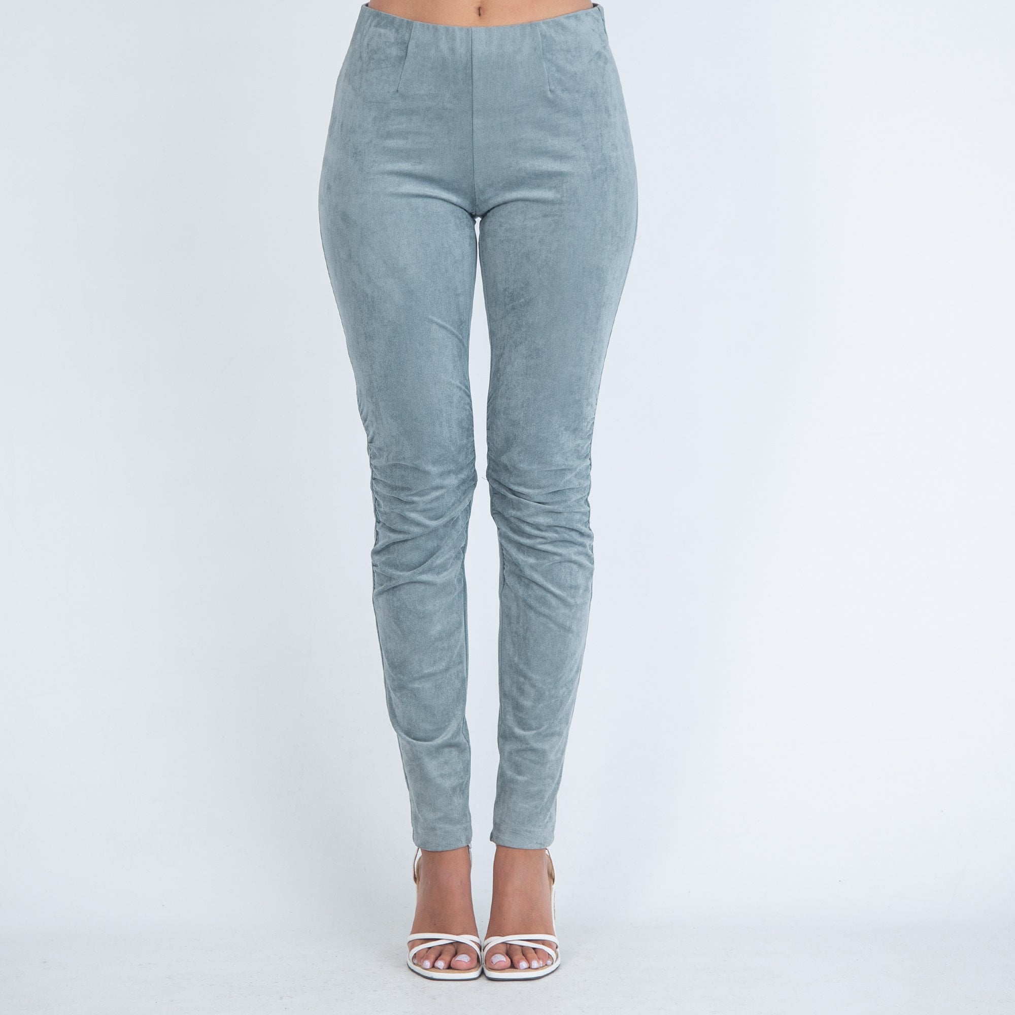 Riani Ruched Sides Elastic Waist Faux Suede Legging Duck Egg Green