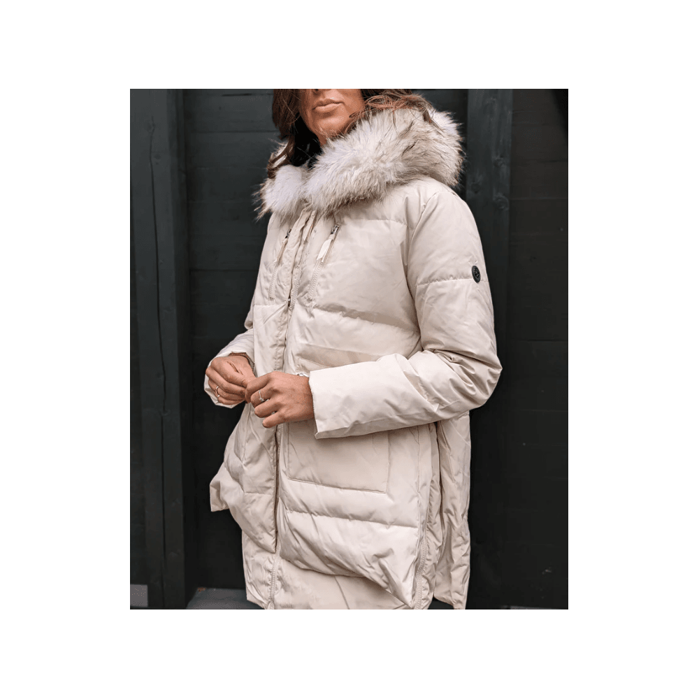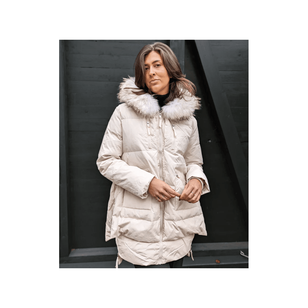 Levinsky Michelle Pocket Front Puffa Coat With Fur Collar Cream