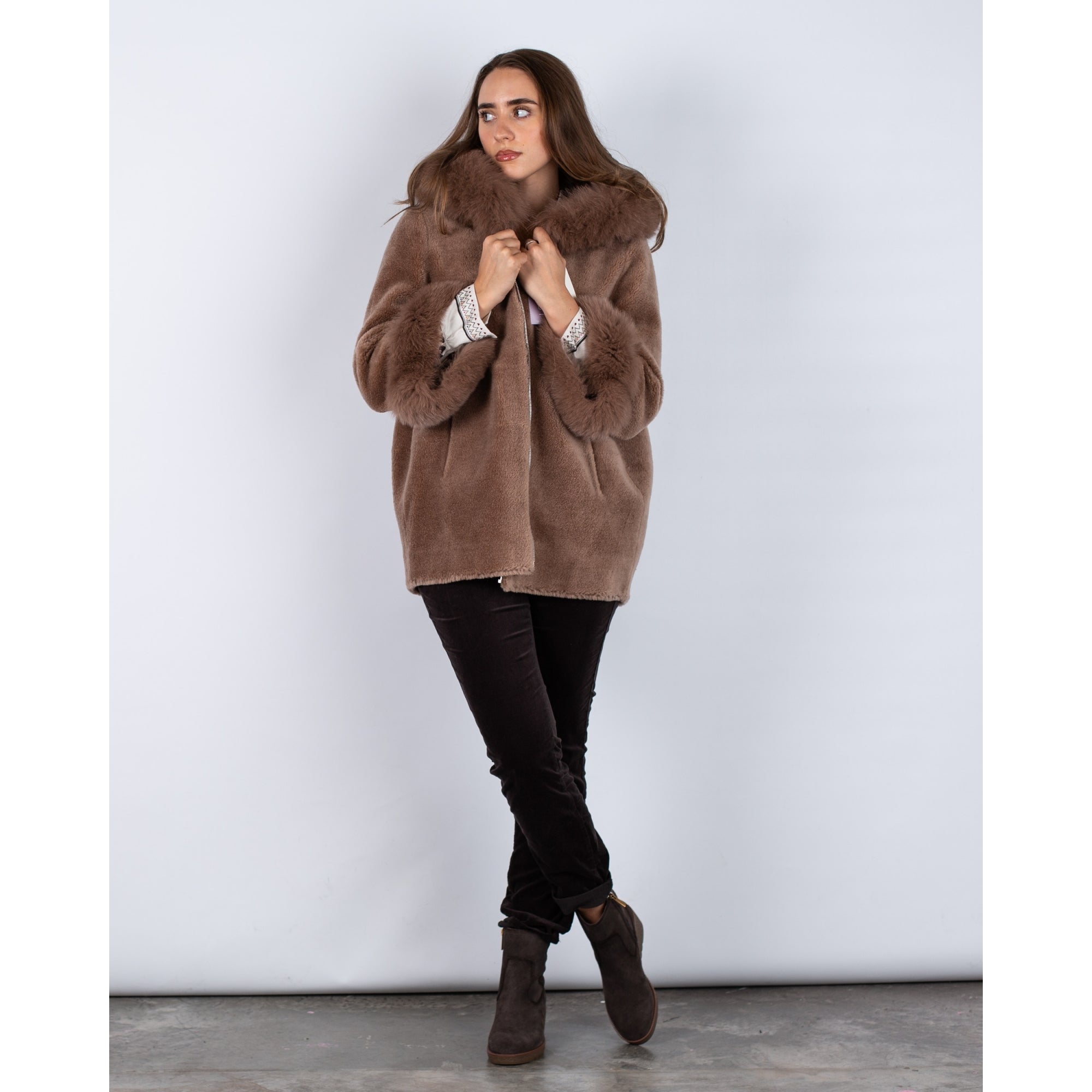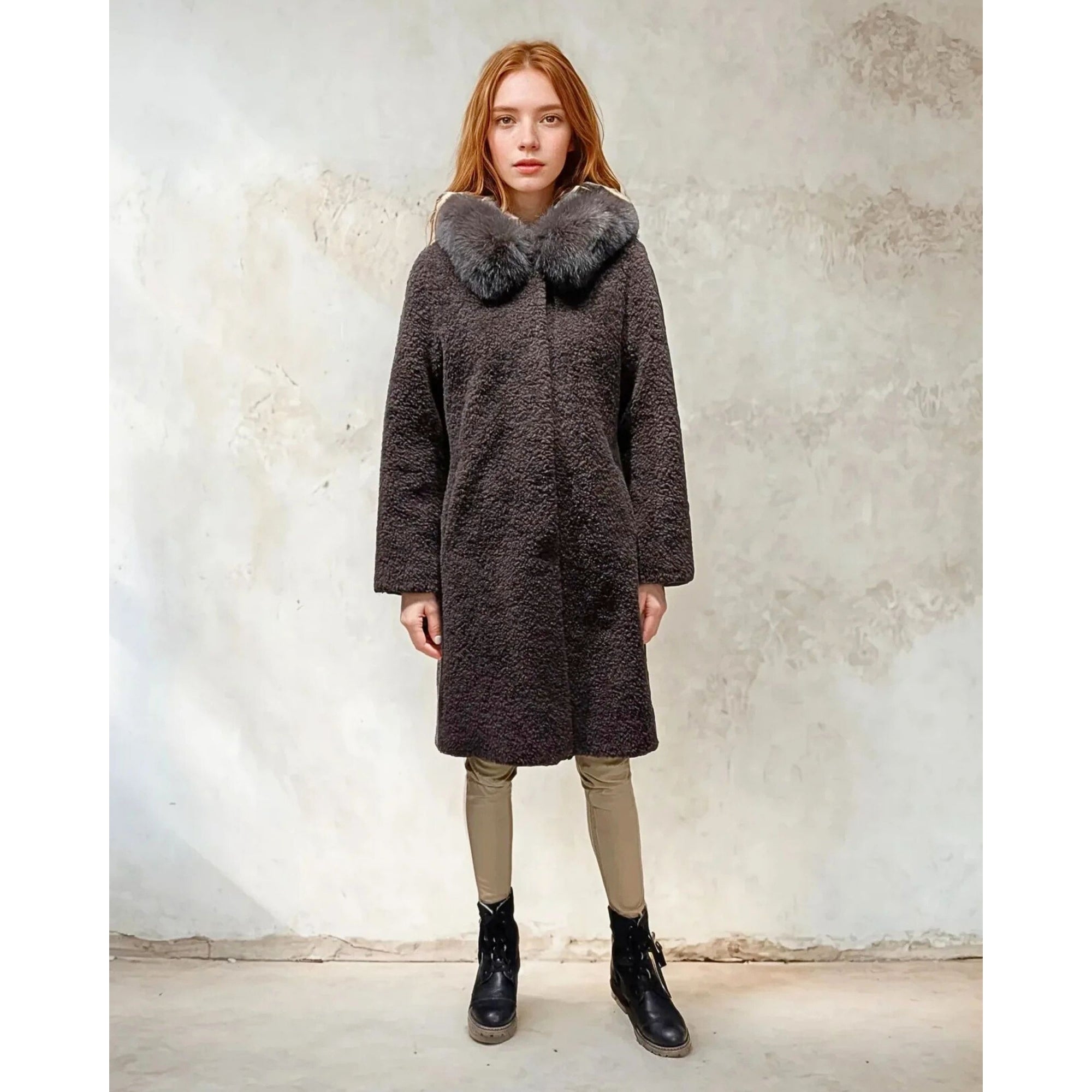 Levinsky Franciane Hooded Wool Cape Coat With Fur Trim Chestnut