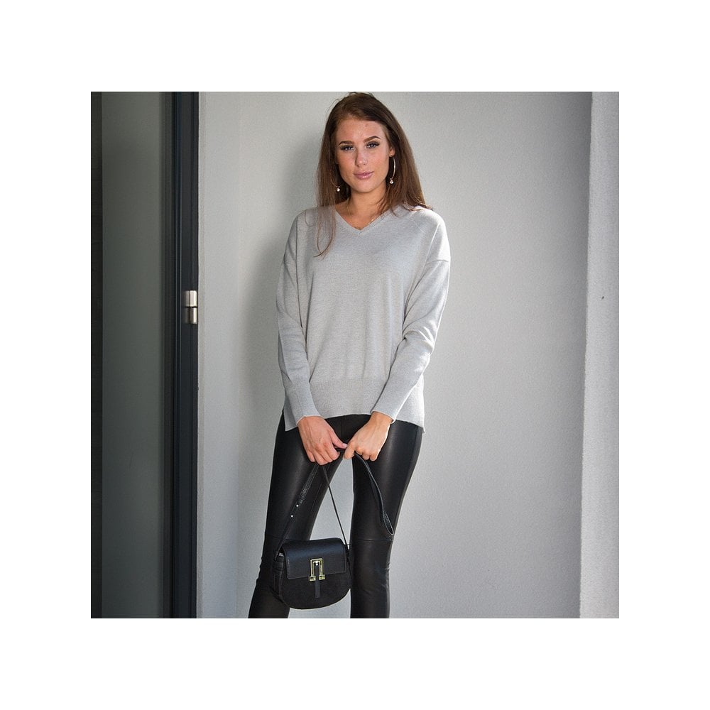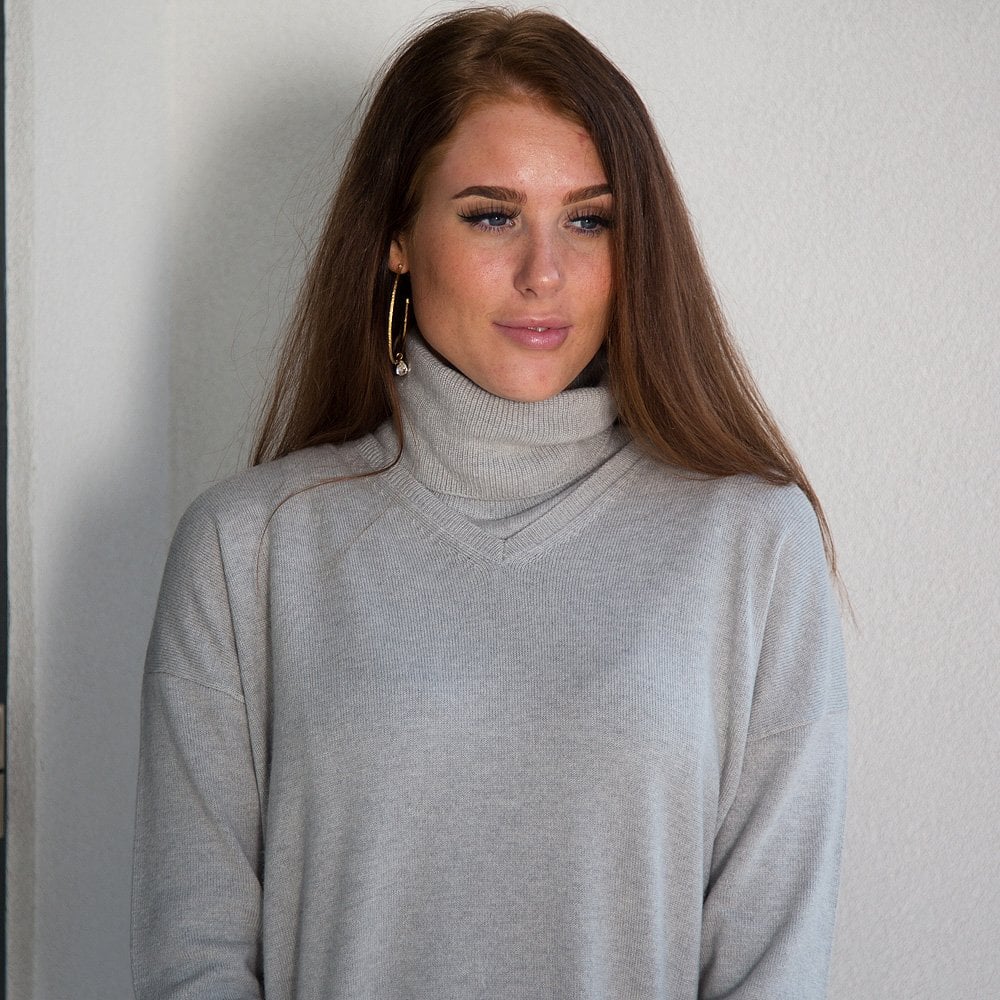 Riani Cashmere V Neck Jumper With Detachable Roll Neck Light Grey