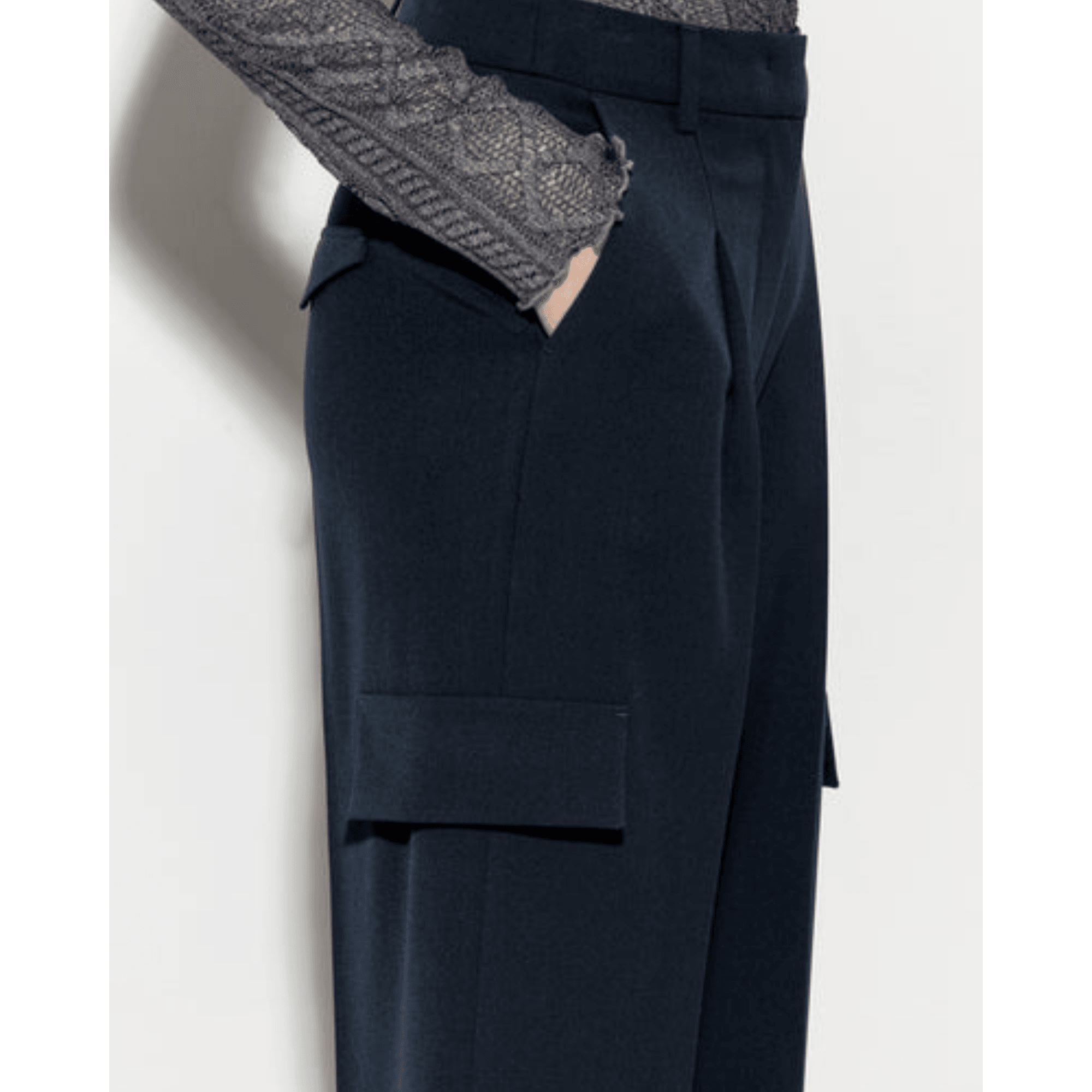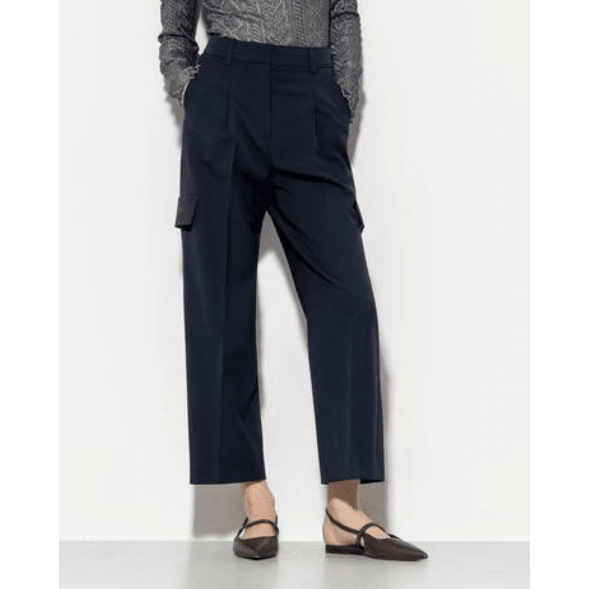 Luisa Cerano Wide Leg Cropped Cargo Trouser Navy 265